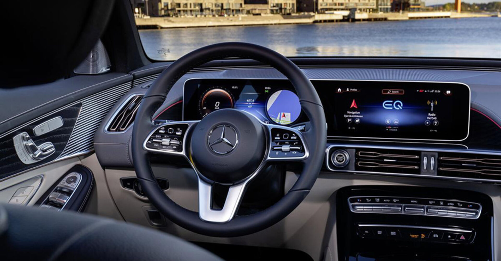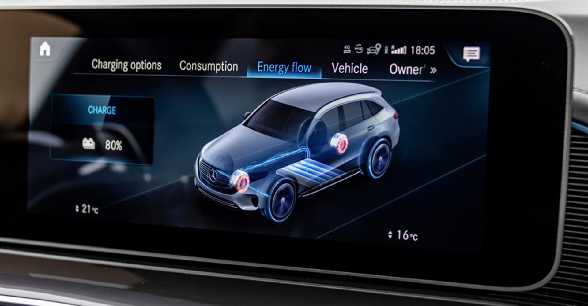 Man wählte dabei einen ganzheitlichen Ansatz, der alles zu einem verknüpft. So spielen Antrieb, Batteriemanagement, Lademanagement, Rekuperationsstrategien, digitale Dienste und das Infotainmentsystem MBUX intelligent zusammen. Bevor man bereits in den EQC gestiegen ist, kann man von zuhause aus ganz bequem sein Ziel und die gewünschte Abfahrtszeit festlegen. Bis man eingestiegen ist, ist der Innenraum exakt so temperiert, wie man es möchte. Die Route wird ebenso intelligent geplant. Ladestopps (Schnelladestationen werden bevorzugt) und Ankunftszeit werden dabei einkalkuliert. Programmiert wird alles per App.