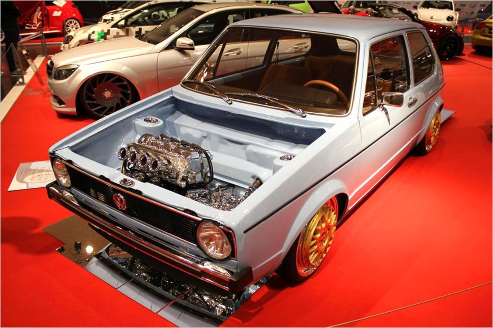 Ob dieser VW Golf 1 noch fährt? Bei dem Showcar wurde der ganze Motorblock verchromt. Auch die Anbauteile erhielten den glänzenden Überzug. Der Vierzylinder…