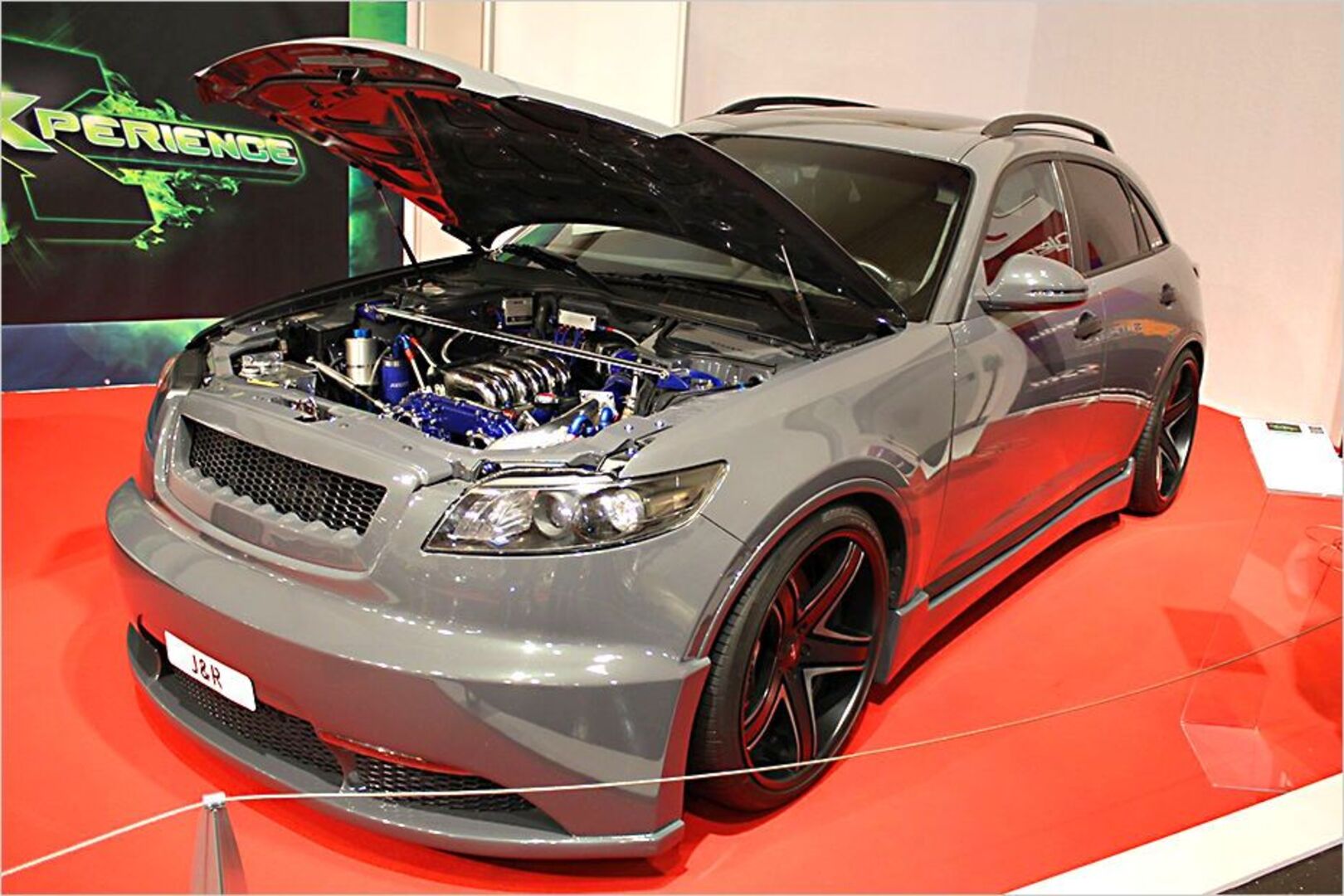 Was haben wir denn da? Einen Audi? Nein! Das war mal ein Infiniti FX 35. Die Frontschürze ist ein Eigenbau, die Lackierung stammt von Audi, das Tagfahrlicht…