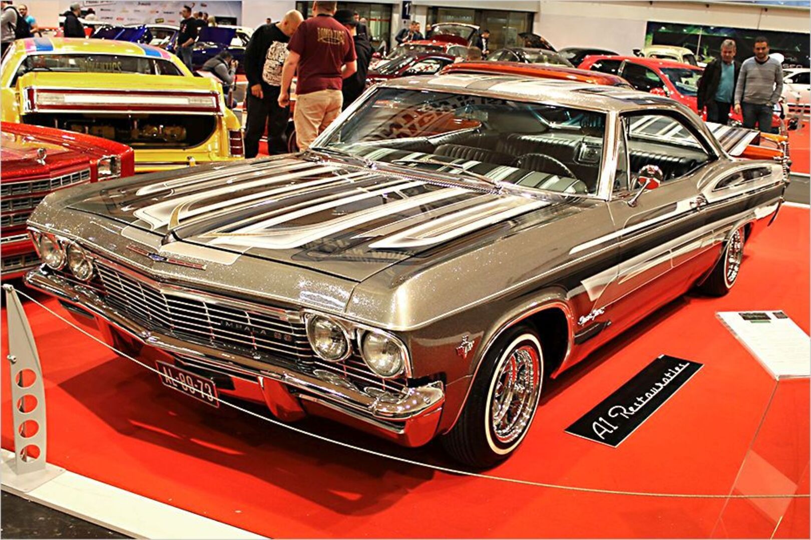 Hier haben wir einen Chevrolet Impala SS von 1965. Die aufwendige Lackierung des 250 PS starken Straßenkreuzers hat "Metallflakes" mit eingemischt. Darüber…