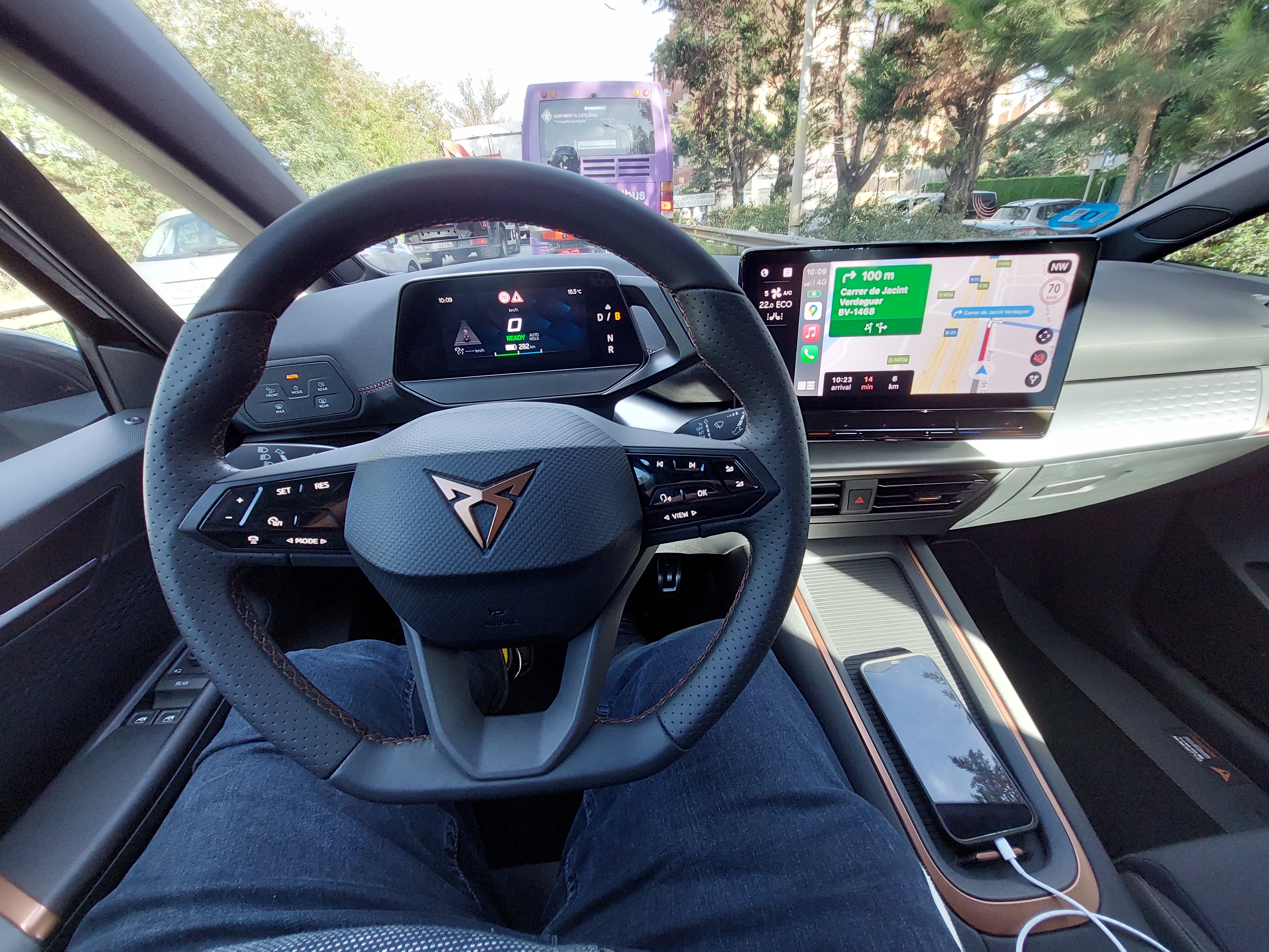 Bei der Technik sind die Ähnlichkeiten größer. Es gibt drei Batterieversionen (45 kWH, 58 kWh und 77 kWh) und drei Leistungsstärken (150, 204 und 231 E-PFerde). Da die stärkste Version namens e-boost erst Ende 2021/Anfang 2022 erscheint und die Einstiegsvariante (45 kWh/150 PS) erst ab Quartal 2/2022 auf den Markt kommt nahmen wir Platz im 204-PS starken Born mit der 58 kWh-Batterie. Die vom ID.3 geerbte nüchterne Tachoanzeige begrüßte uns bei rund 90 Prozent mit 300 Kilometer Reichweite (lt. Werk 423 Km WLTP), vorerst völlig ausreichend für einen Tag in Barcelona. Sehr positiv ist das doch andere Infotainment-System. Es wurde "cupraisiert" und ist übersichtlicher, sowie dynamischer als jenes im ID.3. Auch die Bedienung ging flott von der Hand, ohne nennenswerte Stotterer. Android Auto und Apple CarPlay sins natürlich mit von der Partie aber für Internet nicht zwingend erforderlich. Denn der Born ist von Haus aus per e-Sim vernetzt unterwegs und lässt sich per App auch aus der Ferne überwachen. Weniger gut gefallen haben uns die, ebenfalls aus dem ID.3 bekannten, Touch-Flächen für Klima und Lautstärke. Geschmacksache, ja, aber zum schnellen Umschalten doch eher hinderlich und nicht so intuitiv wie Knöpfe. Das fahrerzentrierte Cockpit glänzt mit hochwertiger Verarbeitung und viele, sehr sportlichen 3D-Oberflächen. Wie Cupra uns bei einem Termin mitteilt, legt man Wert auf nachhaltige und recyclebare Materialien.