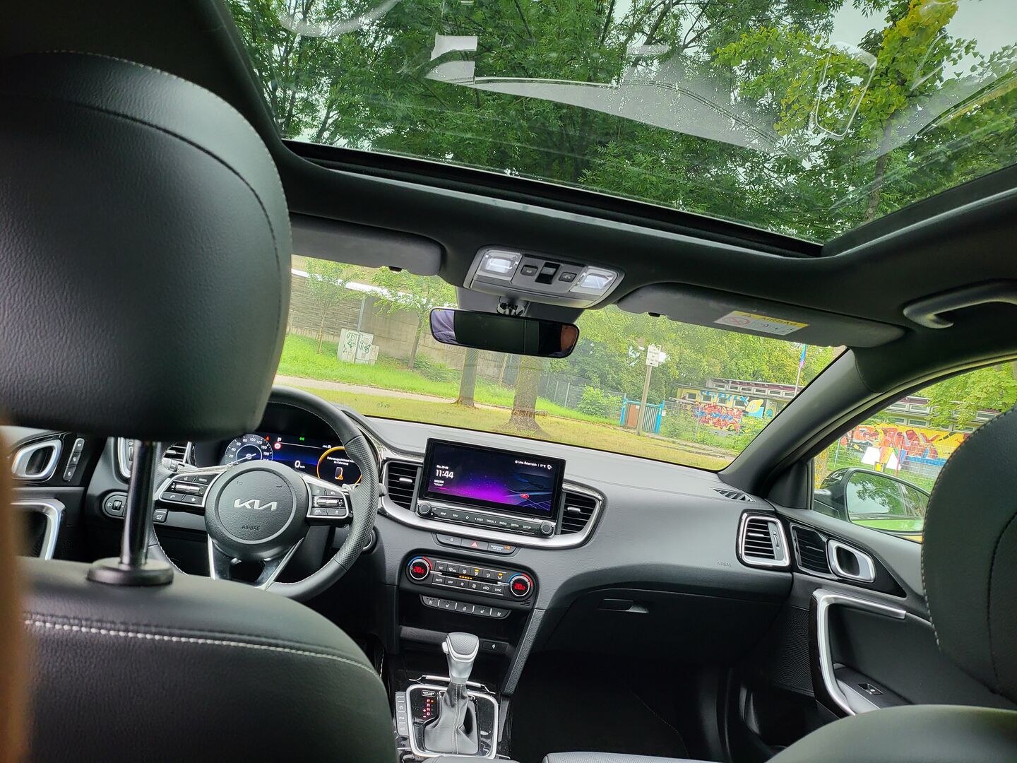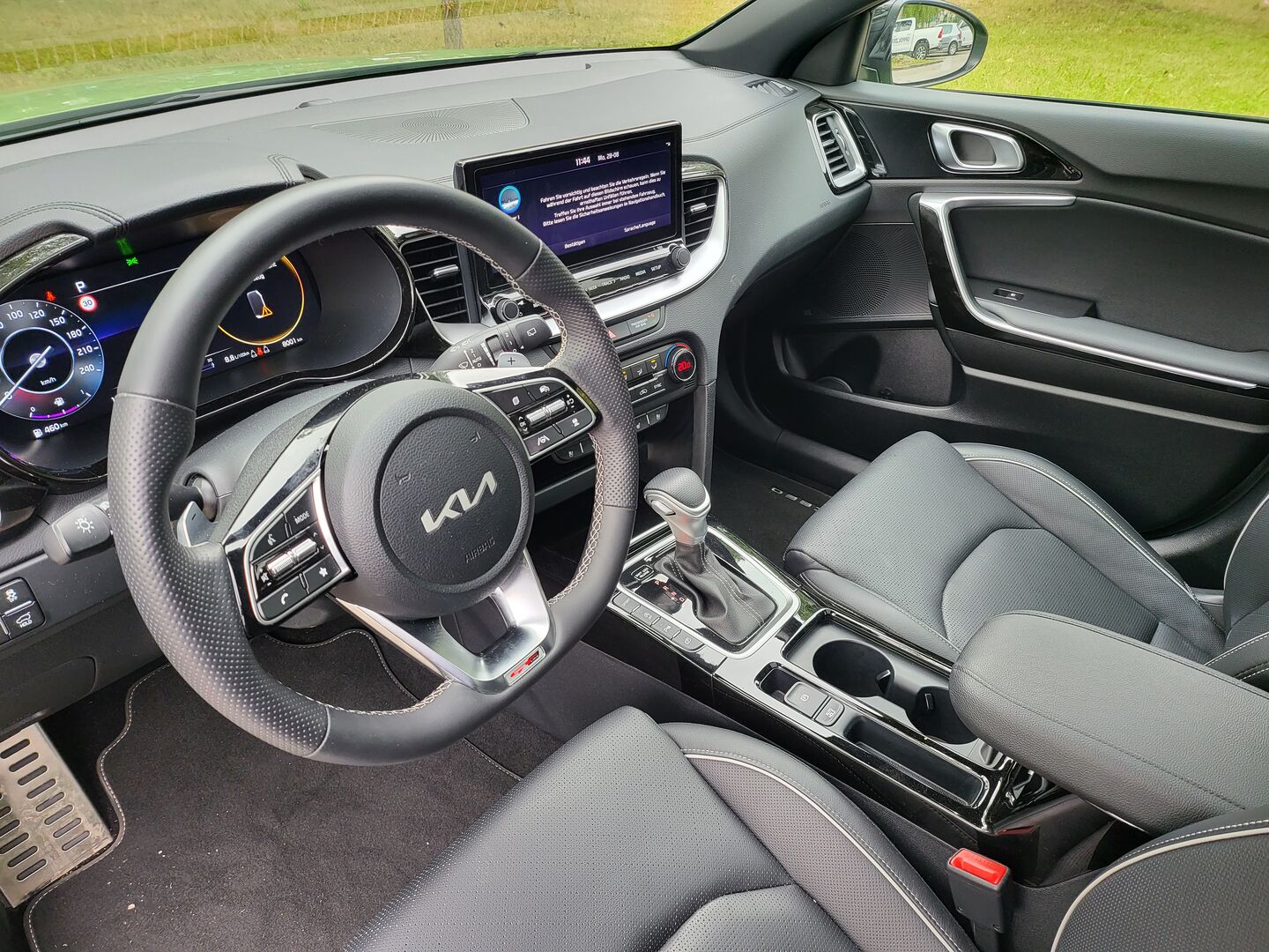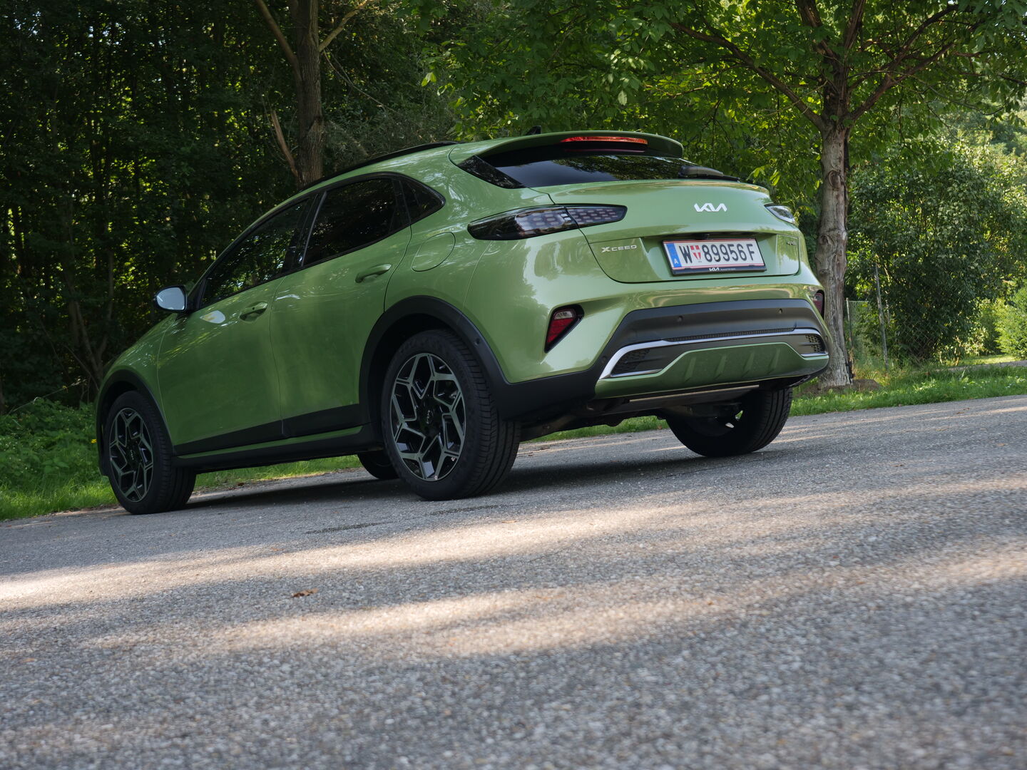 Im Innenraum gibt es verhältnismäßig viel weichen Kunststoff zu entdecken. Generell ist im Cockpit alles übersichtlich angeordnet. Suchspiele und endloses Herumfingern an im Display verstecken Klimafunktionen gibt es nicht – da kann man schwer Kritik anbringen. Der 12,3-Zoll Screen ist zudem logisch aufgebaut. Interessanterweise findet der Kopf größerer Zeitgenossen im XCeed gut Platz, ohne ebendiesen zu verrenken. Allerdings geht es hinten in Vollbelegung eher etwas eng zu. Für zwei Personen reicht der Platz aber allemal. In Sachen Außendesign hat sich mit dem Modelljahr 2023 verglichen mit dem Vorgänger auf den ersten Blick eher wenig getan. Wobei der Feinschliff trotzdem den XCeed eine Spur sportlicher aussehen lassen. So wirken die vorderen Lufteinschlüsse dynamischer und im Heckbereich fallen die Rückleuchten in Wabenstruktur ins Auge. An der Verarbeitung kann man übrigens ganz klar nix aussetzen. Das gilt für den Innenraum und als auch für das Blechkleid.
