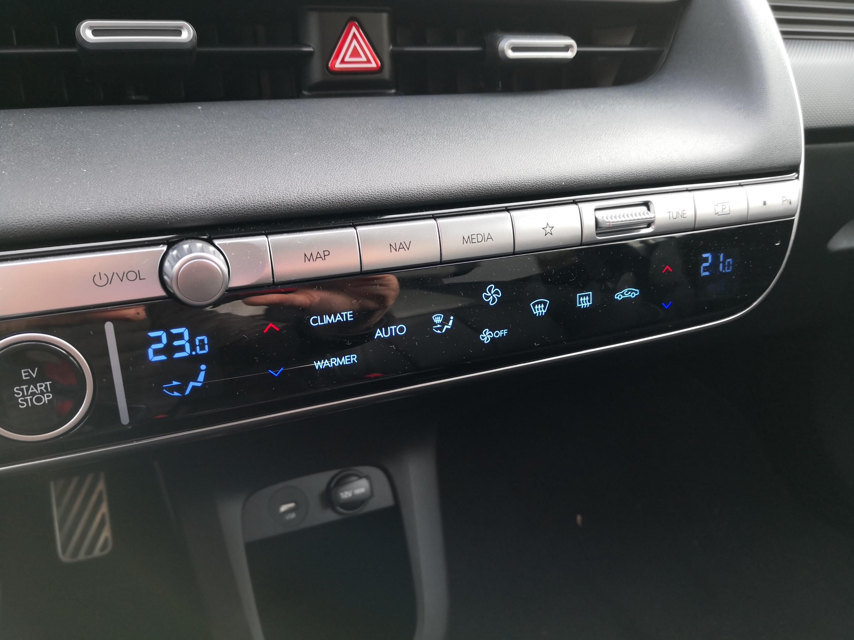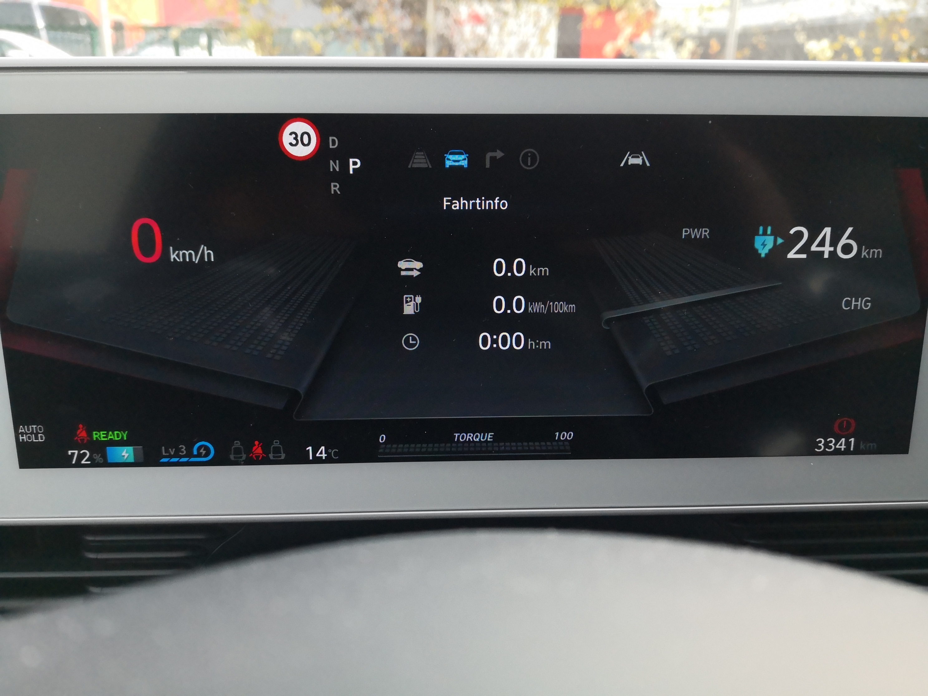 Zur Reichweite: Wir hatten den großen Akku mit 72,6 kWh verbaut (alternativ gibt es die 58-kW-Batterie). Laut WLTP sollen es 480 Kilometer sein. Diesen Wert erreichten wir wie bei allen E-Auto-Tests nicht. Im Schnitt haben wir 20 bis 22 kWh verbraucht. Das ergibt eine Reichweite bei niedrigen Temperaturen von gut 350 Kilometern. In der Stadt sind sicher viel höhere Reichweiten möglich. Was der Ioniq 5 wirklich gut kann, ist die Rekuperation. Bei einer Bergabfahrt über acht Kilometer schafften wir es, 15 Kilometer Reichweite zu gewinnen. Die Rekuperation kann übrigens mit den Schaltpaddles eingestellt werden. Also, wie stark das Auto rekuperiert, wenn der Fahrer vom Gas geht.