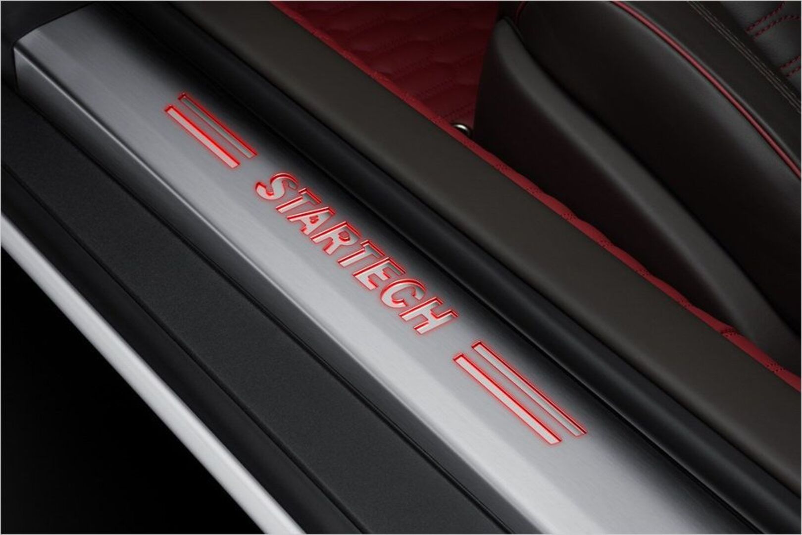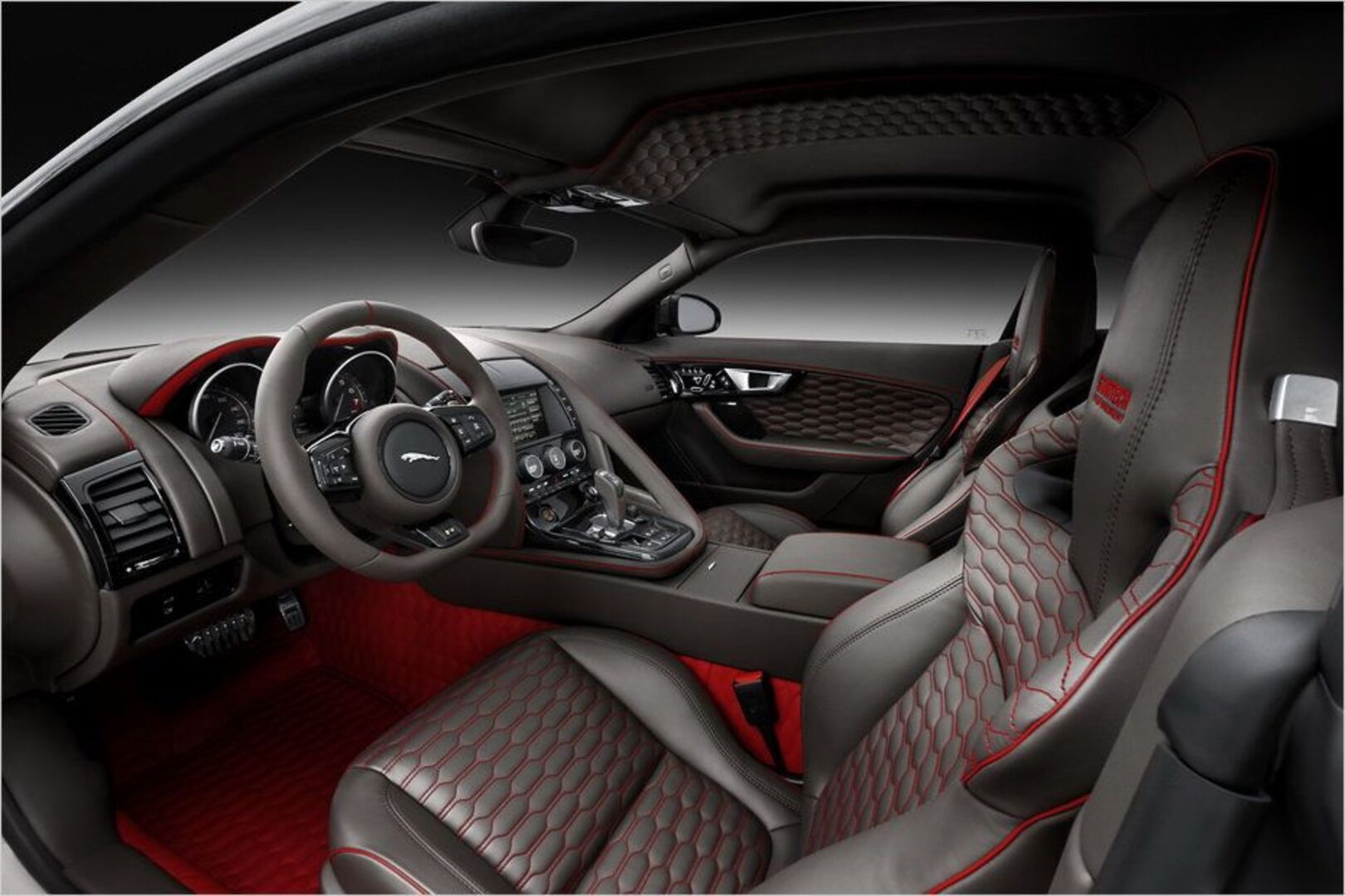 Der Startech-Jaguar kann mit verschiedenen Schmiederädern bestückt werden - zum Beispiel mit 21-Zöllern, die vorn mit 255er- und hinten mit 305er-Reifen bezogen sind. Auch beim Innenraum legt der Tuner Hand an: Hier ist unter anderem eine Nappa-Volllederausstattung zu haben. Beim Auto auf den Bildern wurde braunes mit rotem Leder kombiniert und per Rautensteppung verziert. Hinzu kommen glänzende Klavierholzeinlagen in der Mittelkonsole. Alternativ werden auch andere Hölzer oder Carbon mit verschiedenen Gewebestrukturen verbaut. Darüber können Einstiegsleisten mit beleuchtetem Startech-Logo und Fußmatten mit farblich passendem Lederkeder montiert werden. Auch an der Technik feilt der Tuner und legt den F-Type mit geänderten Federn um etwa 25 Millimeter tiefer.