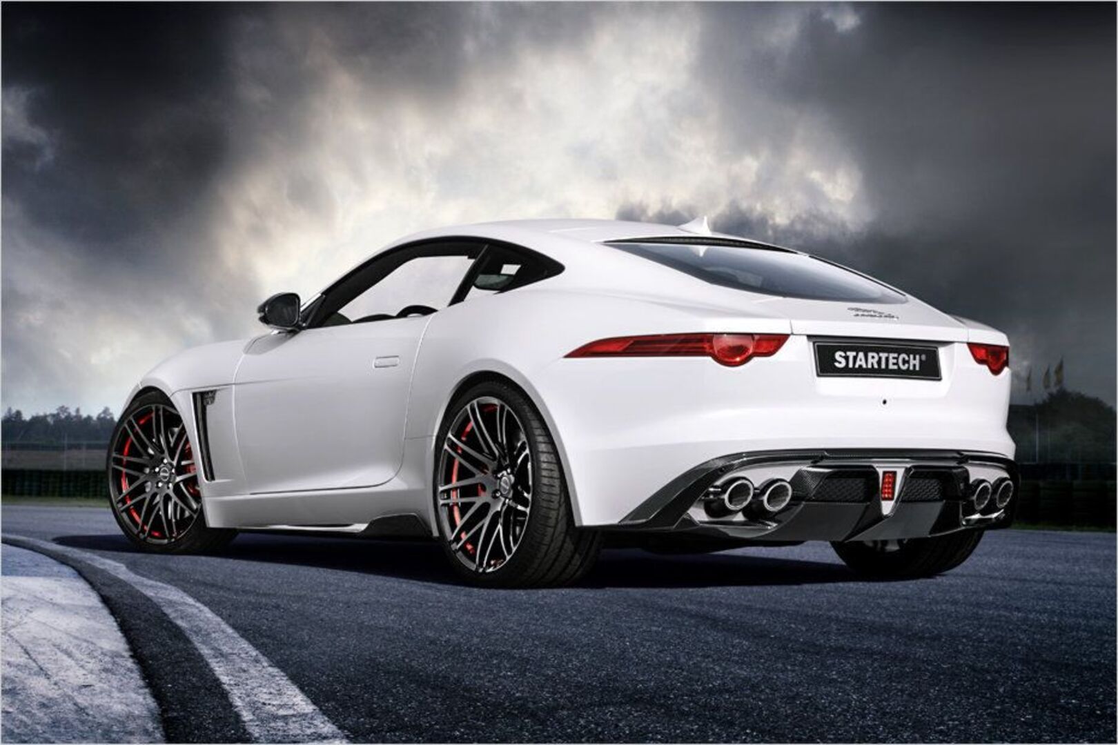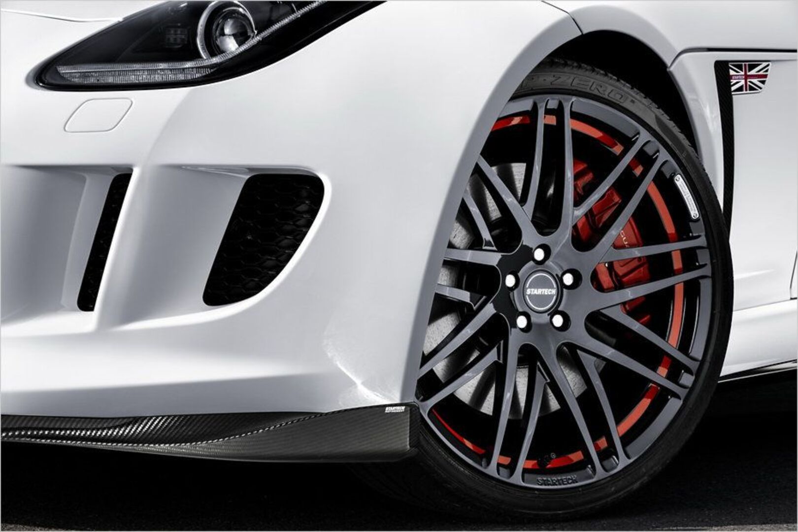 Der Jaguar F-Type ist schon von Haus aus ein rassiges Raubtier. Doch Tuner Startech bürstet der Katze noch mal übers Fell. Zum Umbau gehören neue Aerodynamik-Komponenten aus Sichtcarbon, die in einem speziellen Verfahren hergestellt und anschließend mit zehn Schichten Klarlack bedeckt werden. Das soll einen 3D-Look hervorrufen. An der Front wird das serienmäßige Unterteil der Schürze komplett ersetzt. Der neue Anbau ist tiefer nach unten gezogen, bildet eine ausgeprägte Spoilerlippe und läuft an den Seiten in Spoilerflaps aus. Das soll dem F-Type nicht nur Racing-Look verleihen, sondern auch den Auftrieb reduzieren.