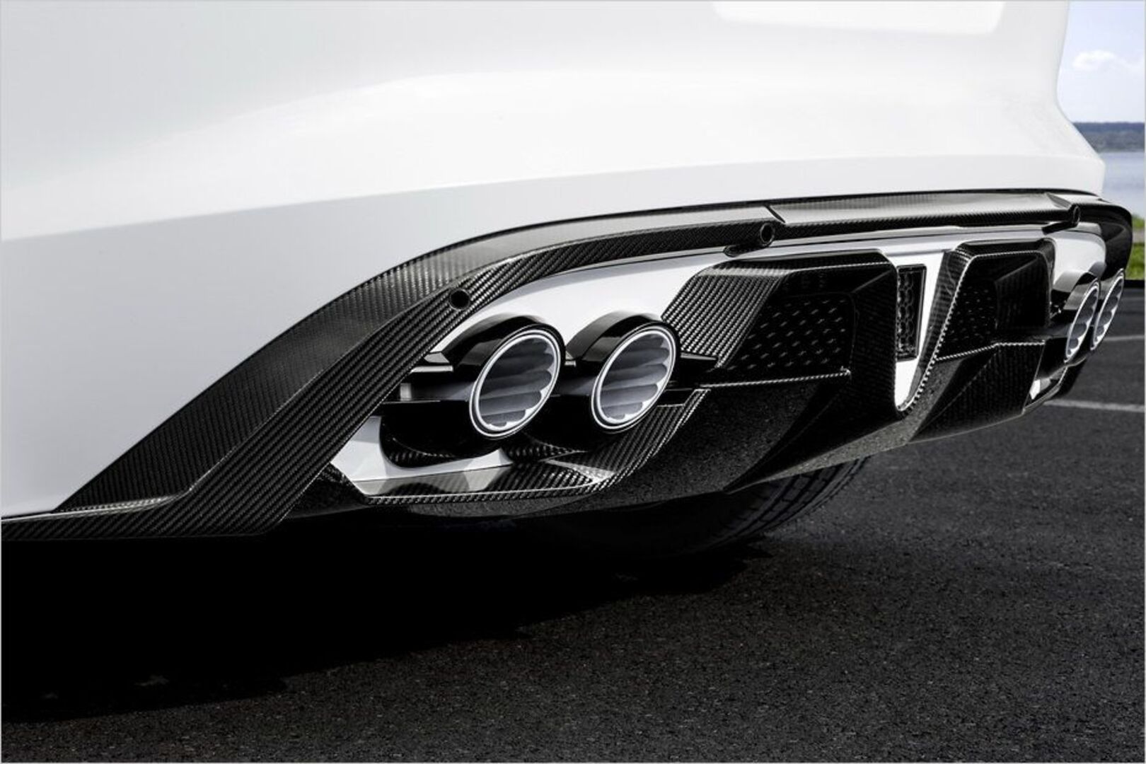 Doch der Tuner geht noch weiter: So werden die Kotflügel gegen Carbon-Pendants ausgetauscht, hinter den Vorderrädern findet sich nun eine senkrechte Sicht-Carbon-Lamelle, die einen Luftauslass andeutet. Auch an den Schwellern gibt es nun Einsätze aus Kohlenstoffverbund, sie sind wie hochgezogene Side-Flaps geformt. Am Heck wird der Schürzeneinsatz gegen einen Carbon-Diffusor getauscht, der vier Auspuffenden Platz bietet und in der Mitte eine LED-Nebelschlussleuchte in Formel-1-Optik trägt.