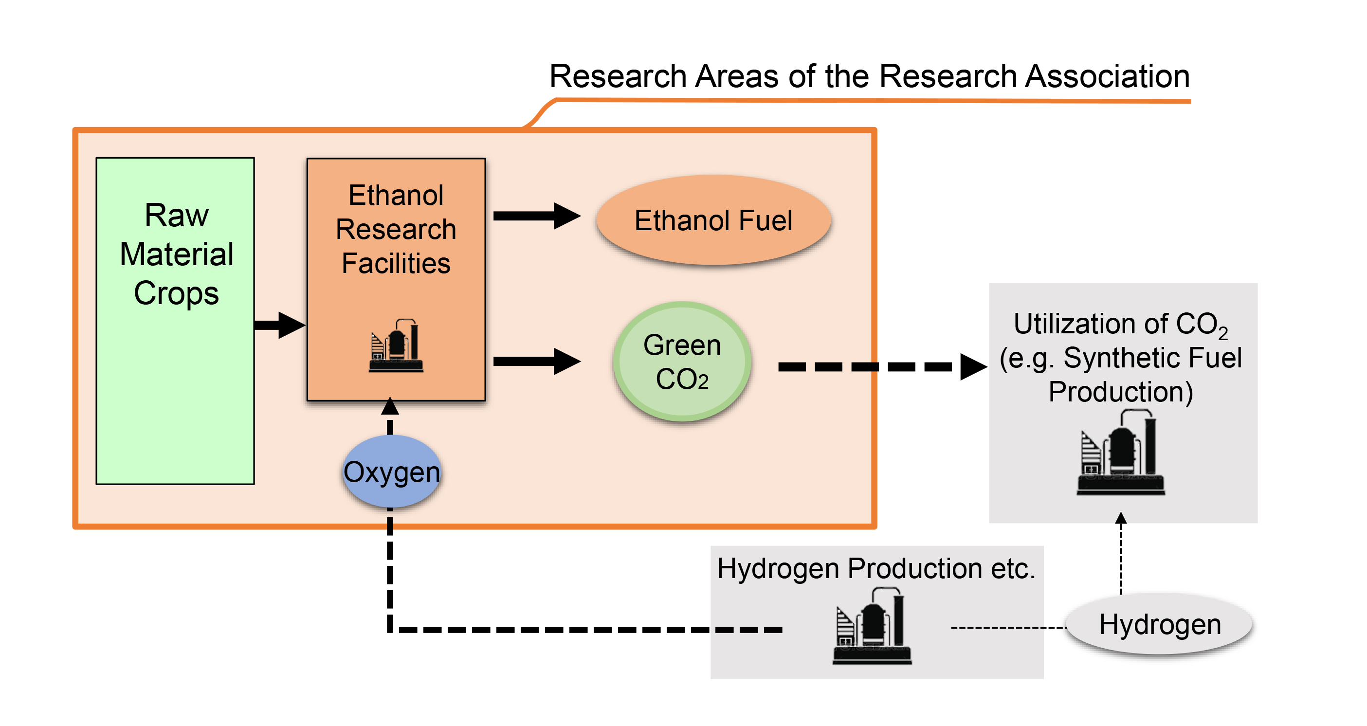 Der Forschungsverbund untersucht, wie die hohe Konzentration an Sauerstoff, was als Nebenprodukt bei der Produktion von Wasserstoff entsteht, sowie das CO2, welches bei der Herstellung von Bioethanol freigesetzt wird, genutzt werden können.