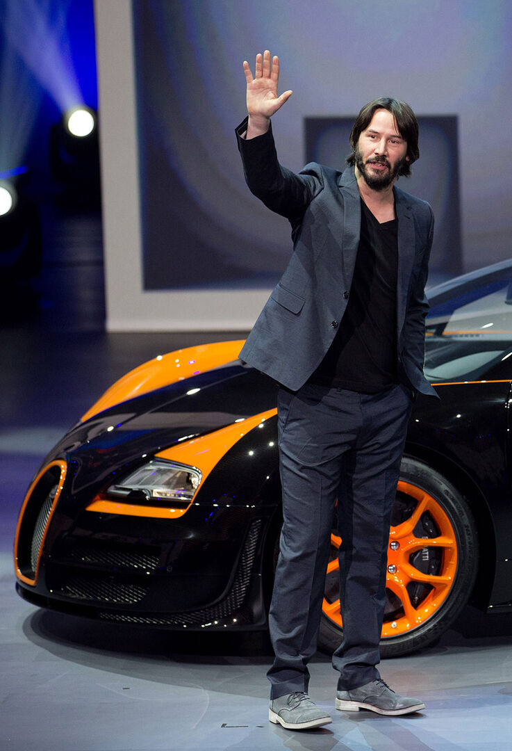 Je schneller und PS-stärker desto lieber: Keanu Reeves vor einem Bugatti der Extraklasse.