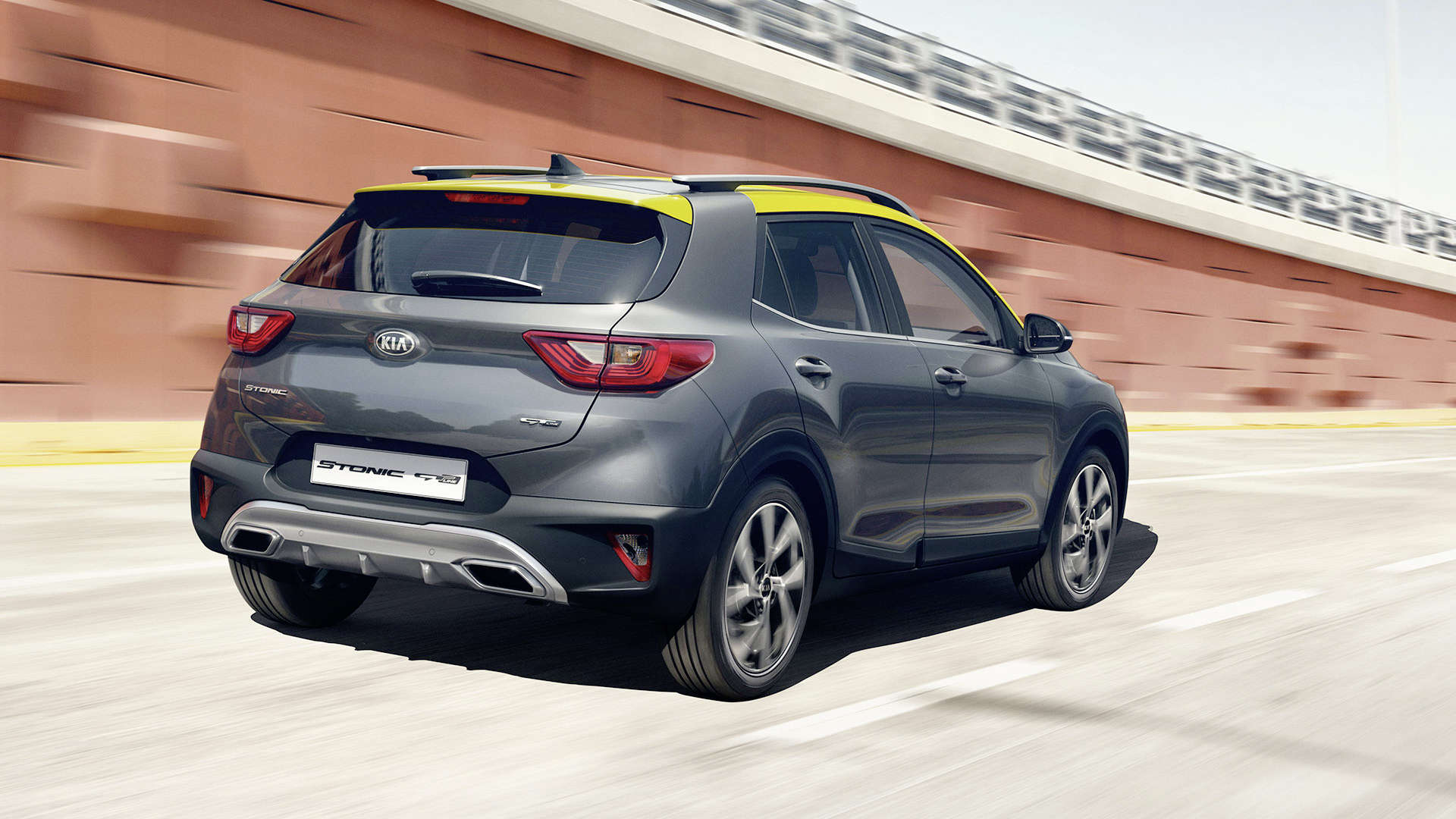 Der 4,14 Meter lange Kia Stonic ist in 22 Lackierungen erhältlich, darunter 15 Zweifarb-Kombinationen mit einem Dach in Kontrastfarbe. Für eine dynamische Heckansicht sorgt das neue Design des Stoßfängers mit Diffusoroptik und Doppelauspuffblenden und senkrechten Rückstrahlern.