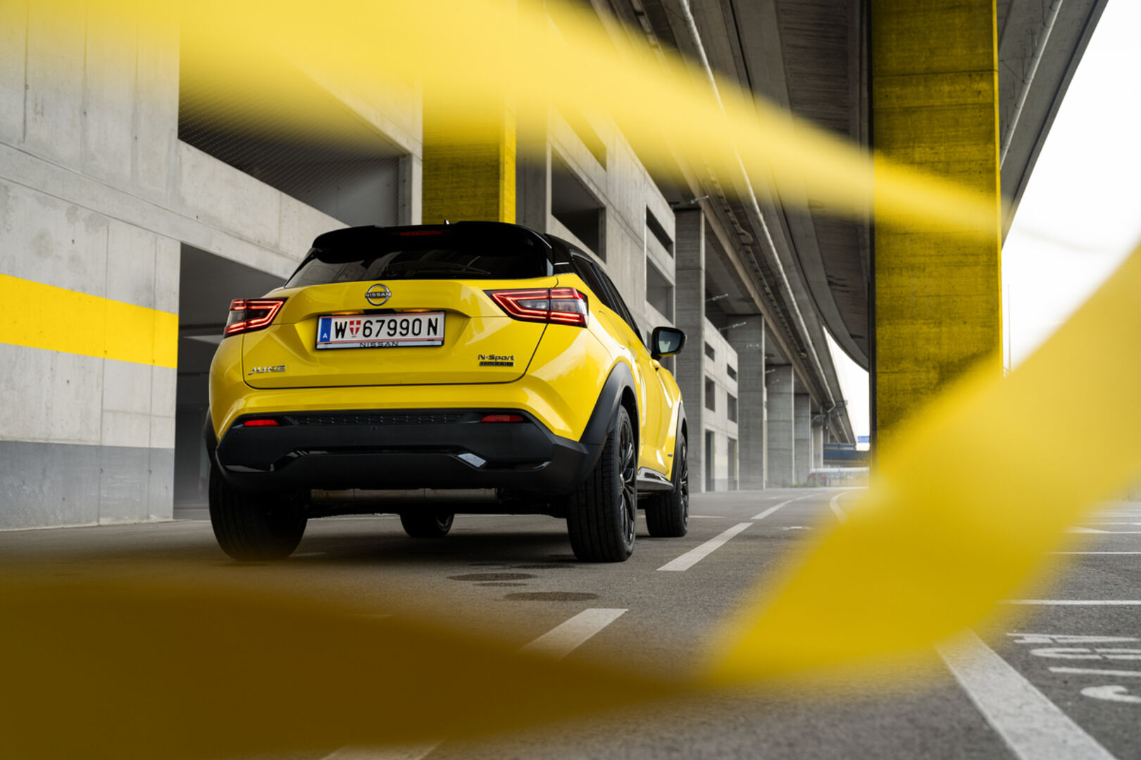 2010 wurde der Juke eingeführt. Im B-SUV-Segment war er so etwas wie ein Vorreiter und hat zum Start ziemlich polarisiert. Heute ist er immer noch polarisierend, aber viel gefälliger. Dass man trotzdem jung sein will, zeigt die knallgelbe Farbe des Testfahrzeugs. Auch im Innenraum gibt es gelbe Ziernähte und knallige Applikationen. Am Armaturenbrett gibt es gelbes Alcantara. Letzteres wurde so angebracht, dass es sich bei Sonnenschein nicht in der Windschutzscheibe spiegelt. Und das trotzt kräftiger Farbe. Zwei 12,3-Zoll-Monitore gibt es nun im Cockpit. Beide Screens sind logisch zu bedienen. Die Rückfahrkamera löst mit 1,3 Megapixel auf und ist tatsächlich ziemlich scharf. Auch die Spracherkennung wurde verbessert. Grundsätzlich ist im Cockpit alles sehr sportlich gestaltet. Sicherheitstechnisch ist alles Wichtige an Bord. Neu ist der Driver Assist Custom Mode. Damit lassen sich die einzelnen Assistenten auf die Vorlieben des Fahrers abstimmen. Bei Fahrtbeginn kann man dann sein abgespeichertes "Fahrprofil" abrufen.