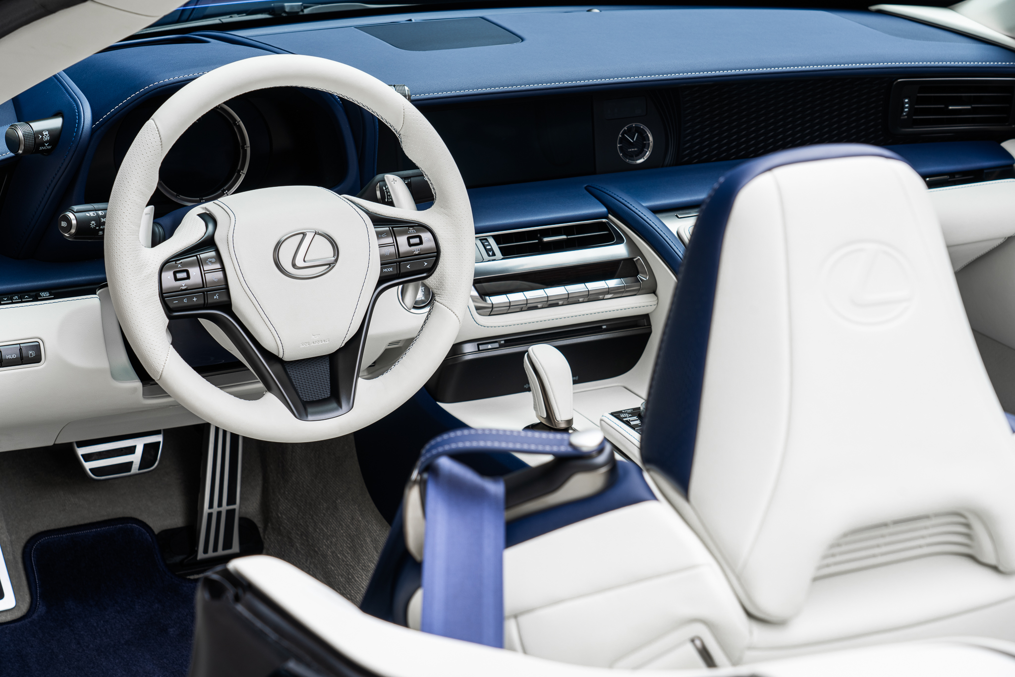 Die guten Neuigkeiten für Fans des gepflegten Offenfahrens sind bereits in Österreich angekommen. Lexus stellte dem LC Coupé eine Variante mit Stoffverdeck zur Seite, die sowohl von außen als auch von innen ordentlich Eindruck macht. Damit dieser auch in Bewegung positiv bleibt, sorgen technische Helferlein für mehr Fahrkomfort unter freiem Himmel: Eine „Freiluft-Steuerung“ passt die Klimaanlage ans offene Fahren an, die ausgefeilte Aerodynamik, das Windschott hinter den Rücksitzen und ein optionaler Windschutz sorgen dafür, dass das Offenfahren auch bei höheren Geschwindigkeiten angenehm bleibt. Der charakteristische Klang des V8 wird bei geöffnetem Verdeck via Soundgenerator über die Instrumententafel in den Innenraum übertragen.