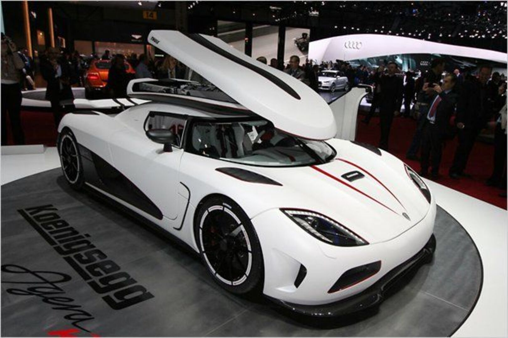 Der 4,29 Meter lange und zwei Meter breite Agera R ist die Weiterentwicklung des mit 910 PS bereits gut motorisierten normalen Agera. Im Fall der R-Version wird der V8-Biturbo-Benziner mit fünf Liter Hubraum auf gewaltige 1.115 PS gepusht. Das maximale Drehmoment von 1.200 Newtonmeter wird bei 4.100 Touren erreicht und steht in einem 3.300 Umdrehungen andauernden Bereich zur Verfügung. In 2,9 Sekunden geht es von null auf 100 km/h, nach 7,5 Sekunden sind 200 Sachen erreicht und nach 12,7 Sekunden steht die Zahl 300 auf dem Tacho. Pro Jahr fertigt Koenigsegg 15 Fahrzeuge, jedes einzelne entsteht in über 3.500 Arbeitsstunden.