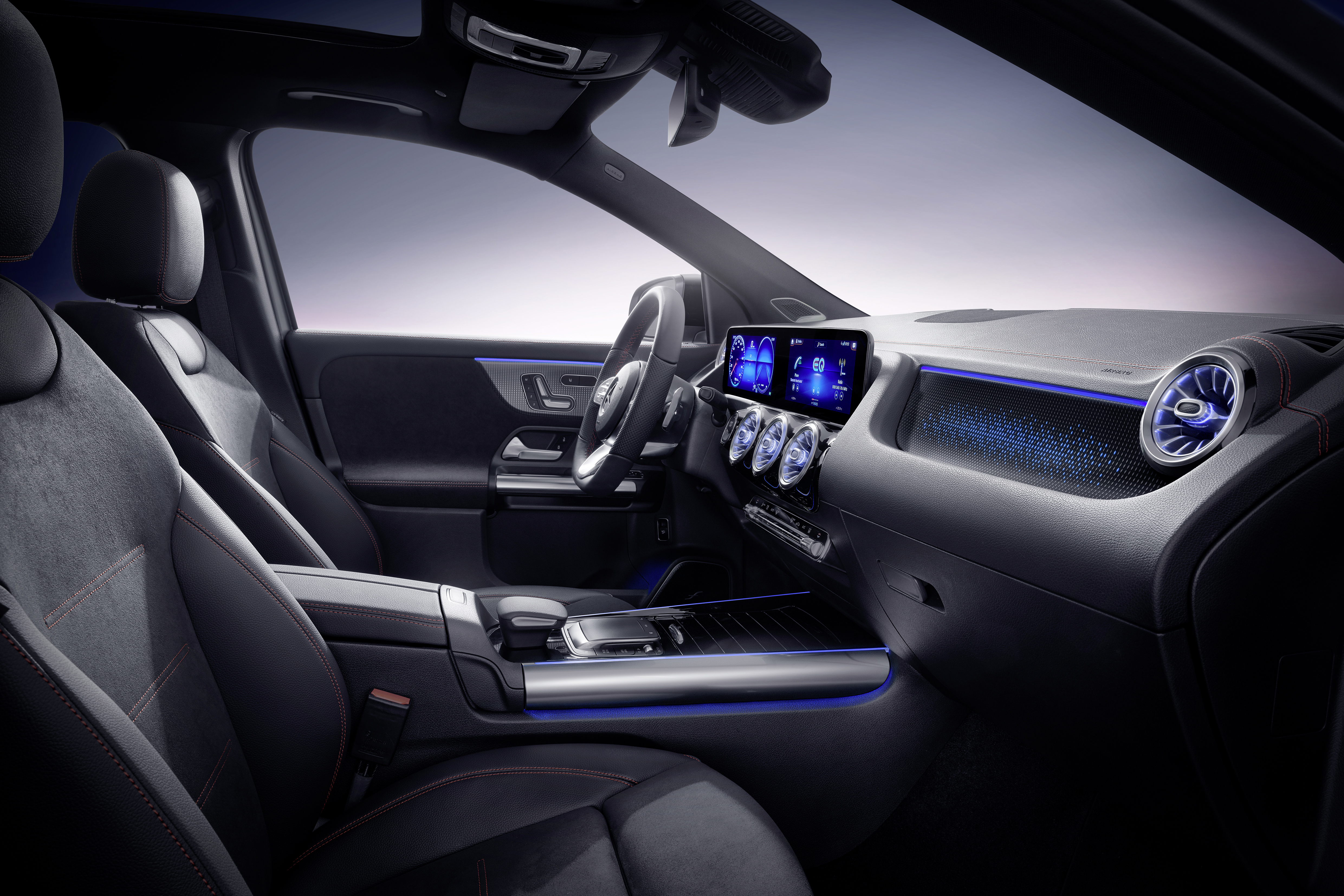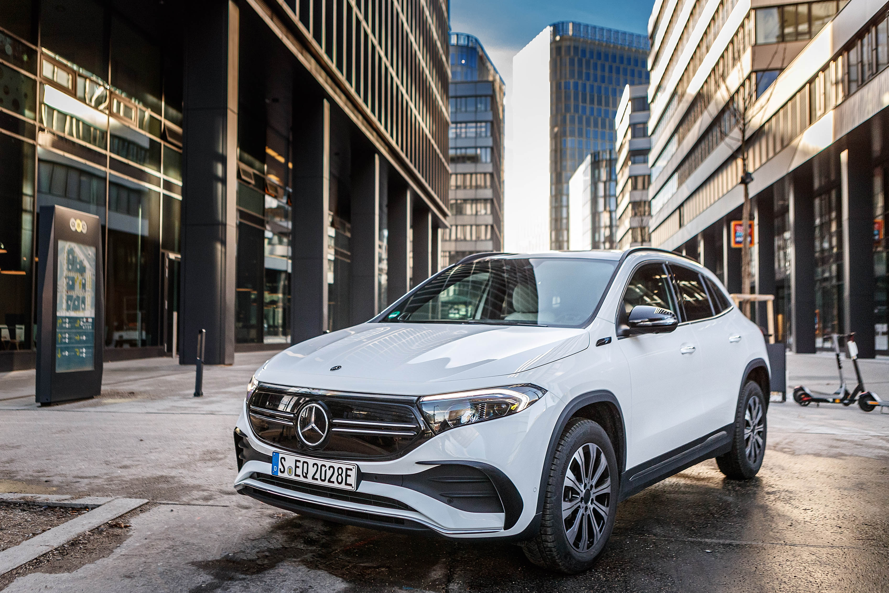 EQA heißt der neue Einstieg in die vollelektrische Fahrzeugwelt von Mercedes-EQ. Die doppelstöckige Lithium-Ionen-Batterie sitzt als strukturelles Element im Unterboden des Fahrzeugs und hat einen Energieinhalt von 66,5 Kilowattstunden (kWh). Der Verbrauch beträgt 19,1 kWh. Der Mercedes EQA startet als EQA 250 mit 190 PS und einer Reichweite nach WLTP von bis zu 426 Kilometern. Der EQA besitzt den für Mercedes-EQ typischen Black-Panel-Grill mit Zentralstern. Weiteres prägnantes Designmerkmal ist das Leuchtenband vorne und hinten. Zum Serienumfang zählen unter anderem LED-Scheinwerfer mit adaptivem Fernlicht-Assistent, elektrische Heckklappe, 18er-Alus, Ambientebeleuchtung mit 64 Farben, Doppel-Cupholder, Komfortsitze, Rückfahrkamera, ein Leder-Multifunktions-Sportlenkrad sowie das Infotainment-System MBUX. Los geht‘s bei 48.590 Euro.