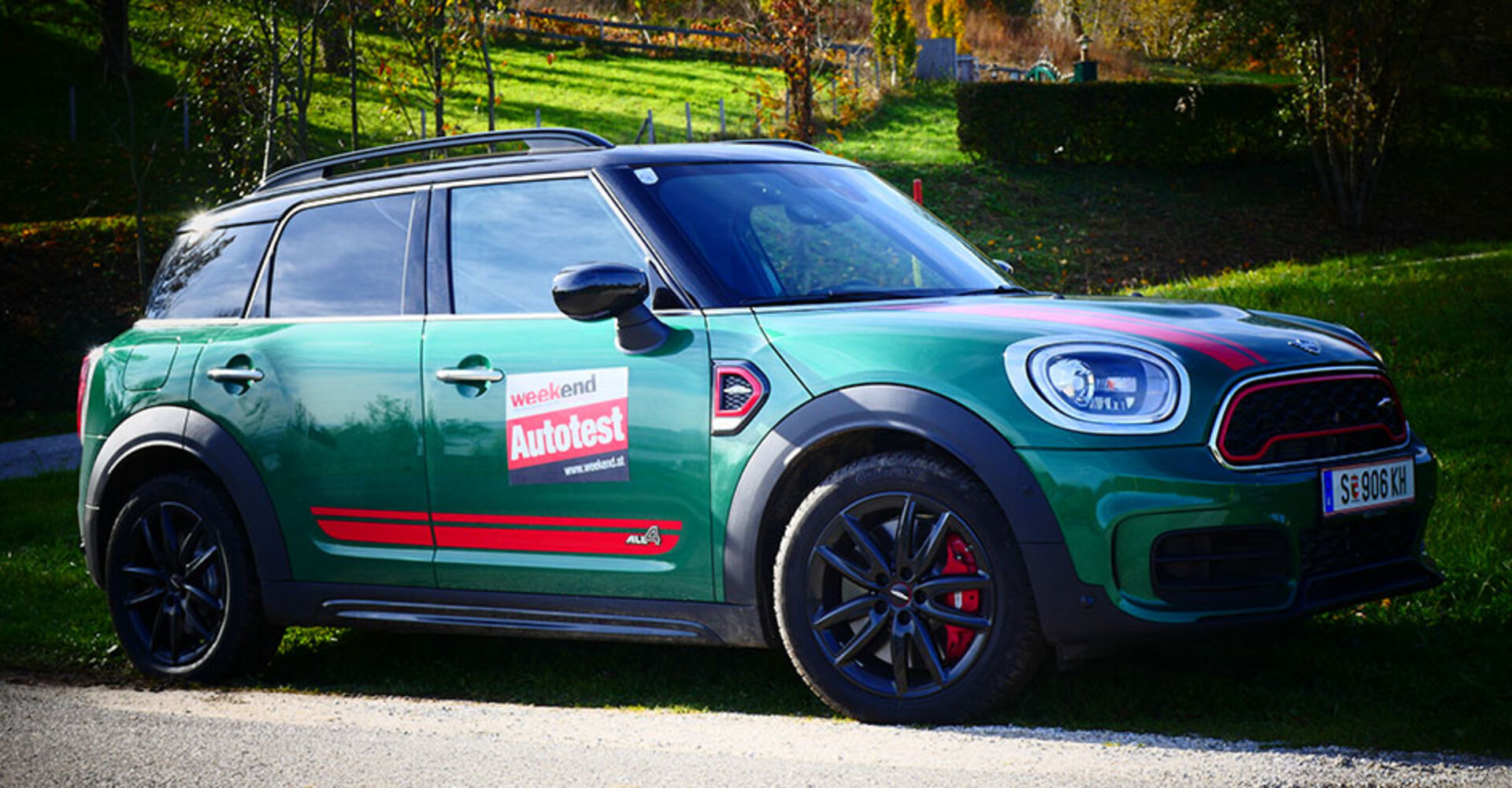 Die Karosserie ist steif, das Fahrwerk im Sportmodus ziemlich straff, und die 306 PS als Draufgabe machen aus dem Countryman schon ein scharfes Gefährt. Keine Frage, der "Works" nimmt jede Kurve mit links. Trotz des erhöhten Schwerpunkts kommt das Mini-typische Gokartfeeling auf. Er fährt sich zwar anders als ein "normaler" Mini, aber eben doch extrem sportlich und ohne Aufschaukeln. Der Hunderter ist schon nach 5 Sekunden erreicht! Und dann hätten wir noch den Allradantrieb ALL4, der die Kraft je nach Anforderung brav verteilt. Geschaltet wird automatisch mit einem neuen 8-Gang-Steptronic-Sportgetriebe einschließlich mechanischer Differenzialsperre. Das Fahrstabilitätssystem DSC greift derart perfekt im Grenzbereich ein, dass man dies als Fahrer kaum mitbekommt. Das erklärt auch den kaum zu überbietenden Fahrspaß. Etwas durstig ist das Mini-SUV. Laut Werk sind es 7 Liter. Im Test lagen wir bei 8,5. Starker Motor, Allrad, Karosserieform senken den Verbrauch nicht unbedingt.