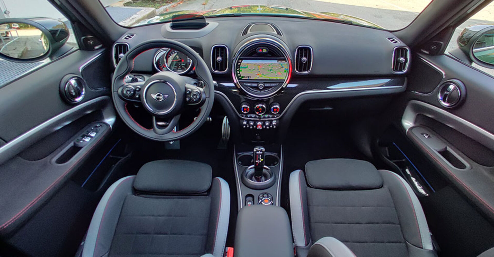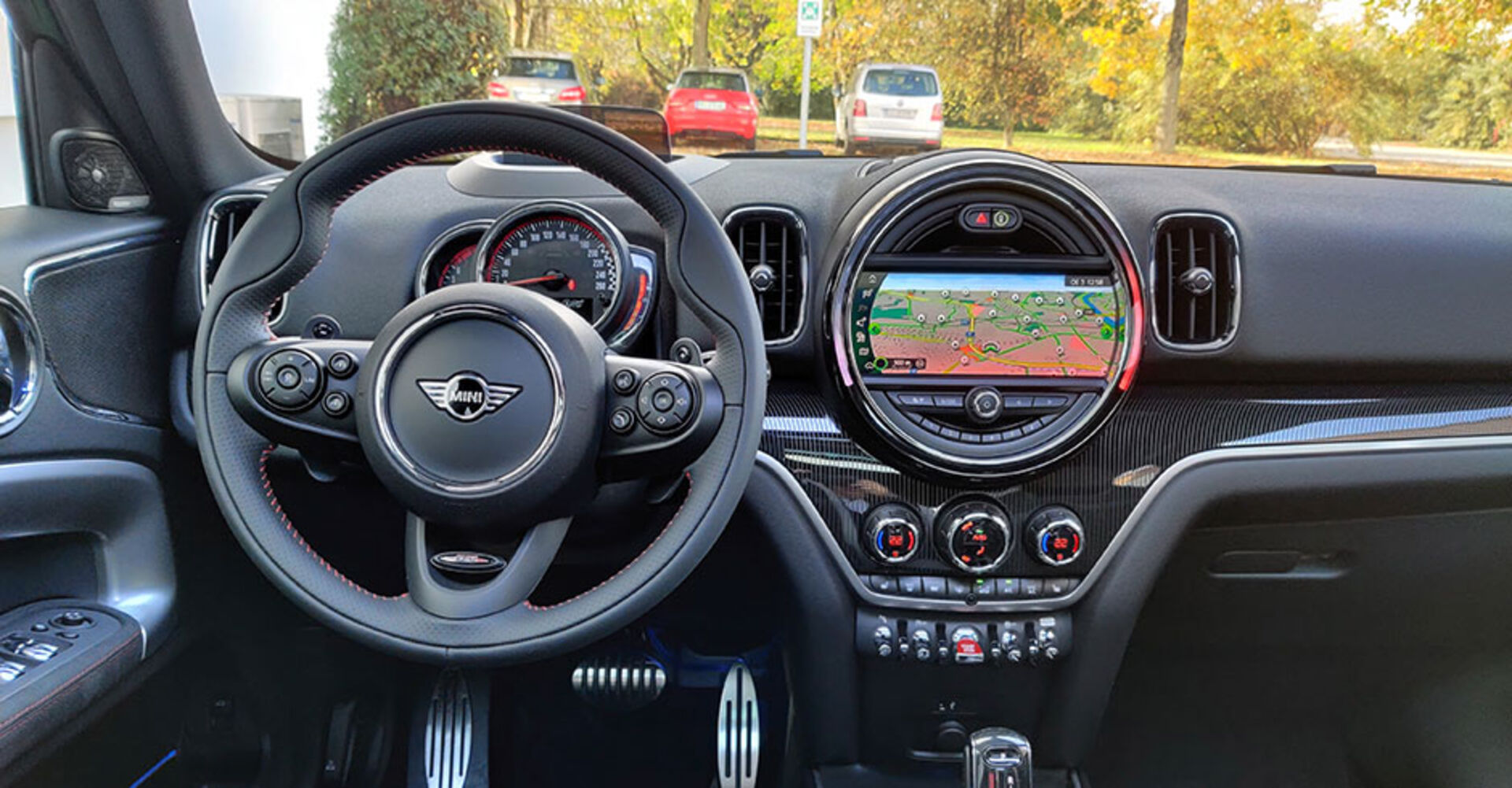 Im Cockpit ist alles rund bis kreisförmig. Der typische Mini-Look mit den Kippschaltern im Bereich der Mittelkonsole und dem eben runden 6,5-Zoll-Farbdisplay ist im ganzen Auto zu finden. Etwas Kritik müssen wir in Sachen Navi anbringen. Irgendwie ist der Farbmix ziemlich unübersichtlich. Dafür gibt es im Innenraum echt viel Platz. Auf 4,2 Metern Länge ist kaum mehr unterzubringen. Und: Die Sicht nach hinten ist sehr gut. In der heutigen Zeit mit den vielen Coupéformen eine Wohltat. Der getestete Countryman in Vollausstattung kostet 65.000 Euro. Wer vernünftiger sein will und trotzdem Allrad braucht, bekommt den Cooper ALL4 mit 136 PS zum halben Preis!