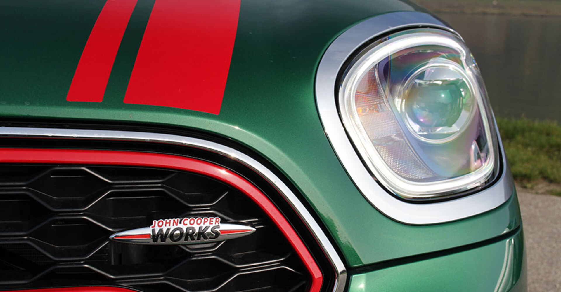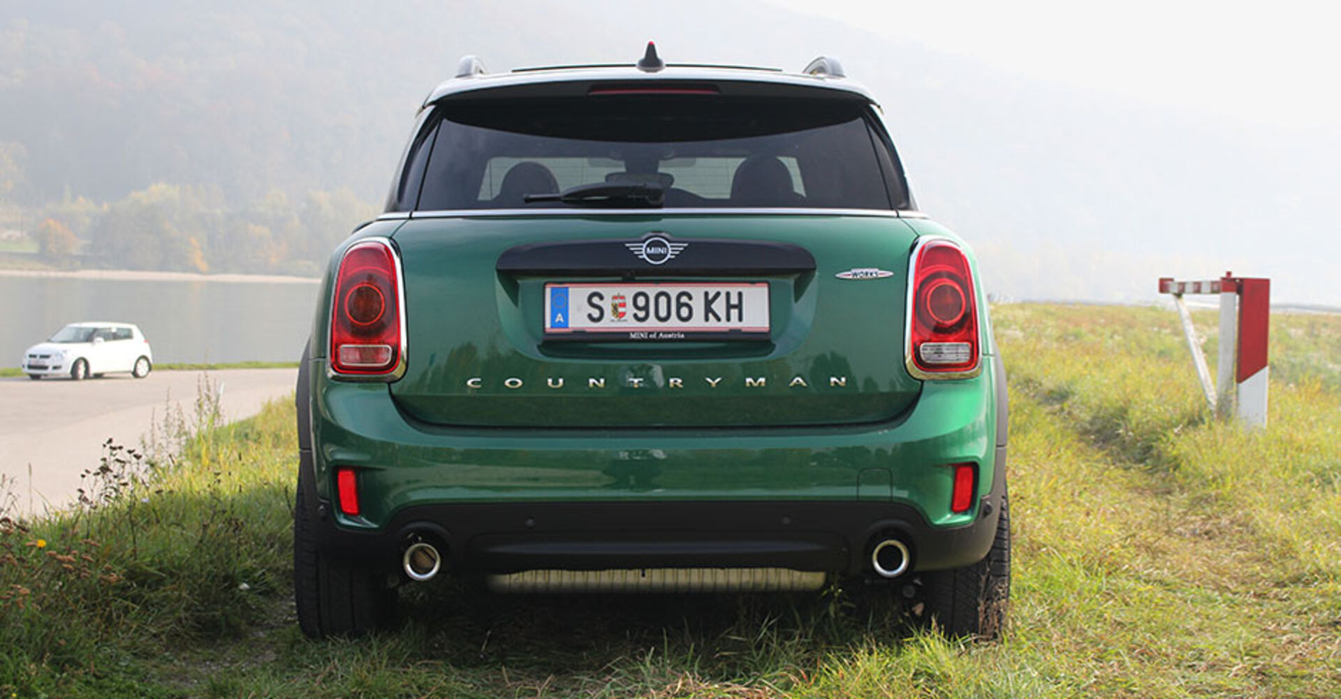 Dezent sind bei diesem Countryman maximal die Türgriffe – der Rest wirkt optisch eher verhaltensauffällig. Rote "Rennstreifen" treffen auf John Cooper Works-Schriftzüge, Doppelendrohre, eine zum Motordome ausgebeulte Motorhaube und rote Bremssättel. Zum Drüberstreuen ist die Stummelantenne am Heck mit einem rot blinkenden LED-Licht versehen. Diese Airbus-artige Leuchte hilft, den John Cooper Works Countryman in der Dunkelheit wiederzufinden. Tagsüber ist das ob seiner quietschgrünen Farbe ohnehin kein Problem. Hält aber die Kriegsbemalung auch fahrtechnisch, was sie vorgibt?