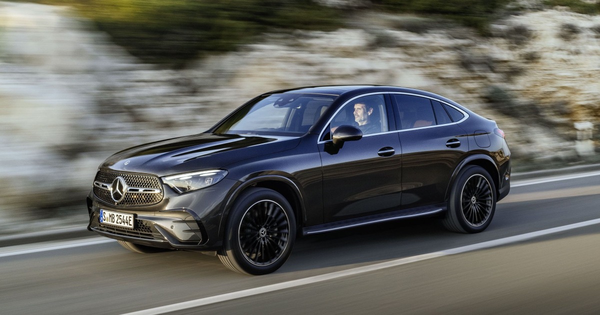 Ebenfalls neu ist das als Mildhybrid und als Plug-in-Hybrid erhältliche GLC Coupé. Das ab Juli 2023 in vier Mildhybrid- sowie drei Plug-in-Varianten (jeweils mit 2-Liter-Motoren) gebaute Modell soll optisch Eleganz und Dynamik vermitteln. Vor dem Fahrer befindet sich ein 12,3 Zoll großer LCD-Bildschirm, das Zentraldisplay ist 11,9 Zoll groß und leicht zum Fahrer geneigt. Der Kofferraum kann 545 bis 1.490 Liter (bei den Mildhybriden) bzw. 390 bis 1.335 Liter (bei den Plug-in-Hybrid-Modellen) an Gepäck aufnehmen.