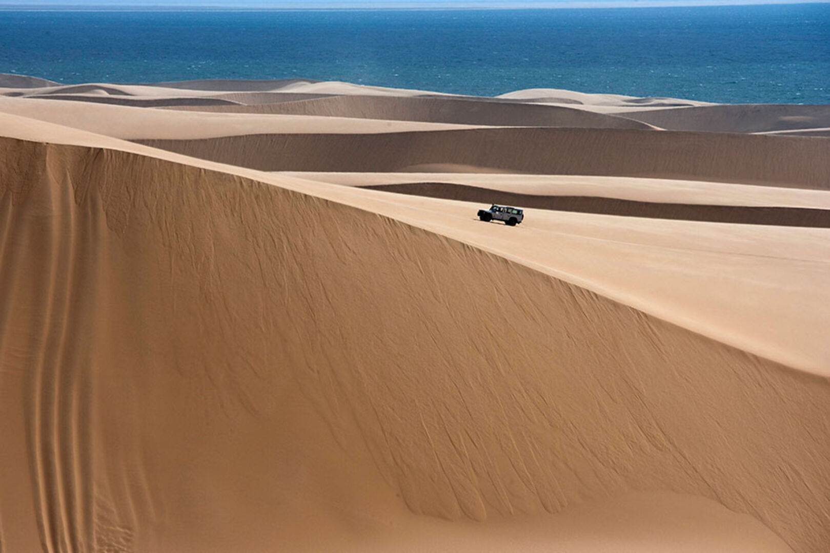 "Wüstenmeer" im besten Sinne: Fahrt nahe Walvis Bay in Namibia.