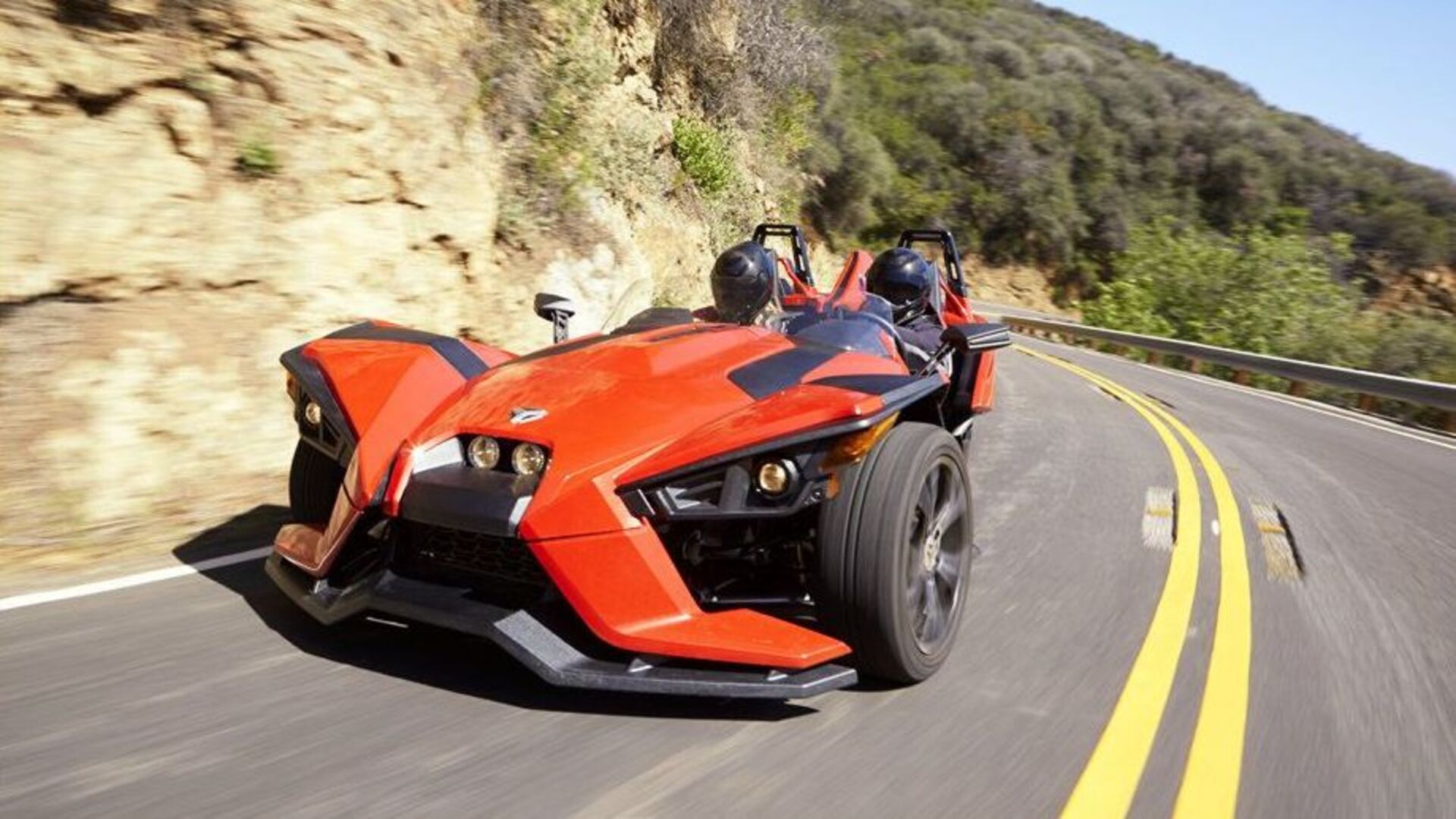 Angetrieben wird der Polaris Slingshot von einem 2,4-Liter-Ecotec-Vierzylinder. Er leistet 173 PS bei 6.200 U/min und 225 Newtonmeter bei 4.700 U/min. Geschaltet wird über ein manuelles Fünfgang-Getriebe und das Gewicht liegt bei lediglich 790 Kilogramm. Das Dreirad verfügt über einen Gitterrohrrahmen aus Stahl und wird über einen Carbon-verstärkten Treibriemen angetrieben. Wie beim Motorrad sitzt der fette 20-Zoll-Hinterreifen an einer Schwinge. Vorne drehen sich zwei 18-Zoll-Räder.