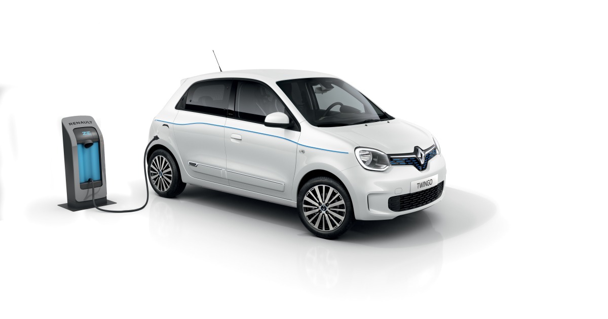 Der kleinste im Renault-Bunde, der Renault Twingo, ist nun auch als E-Fahrzeug erhältlich; erkennbar unter anderem an blauen Zierelementen an den Radnabenabdeckungen. Hinzu kommen blaue Stripings an den Fahrzeugflanken. Anstelle der Benzinaggregate seiner Schwestermodelle sorgt im Heck des Twingo Electric ein ursprünglich aus dem Renault Zoe stammender Elektromotor mit 82 PS für den Antrieb. Der crashsicher unter dem Fahrer- und Beifahrerplatz eingebaute Lithium-Ionen-Akku mit 21,4 Kilowattstunden Kapazität ermöglicht im Stadtverkehr nach WLTP-Testzyklus eine Reichweite von bis zu 270 Kilometern.