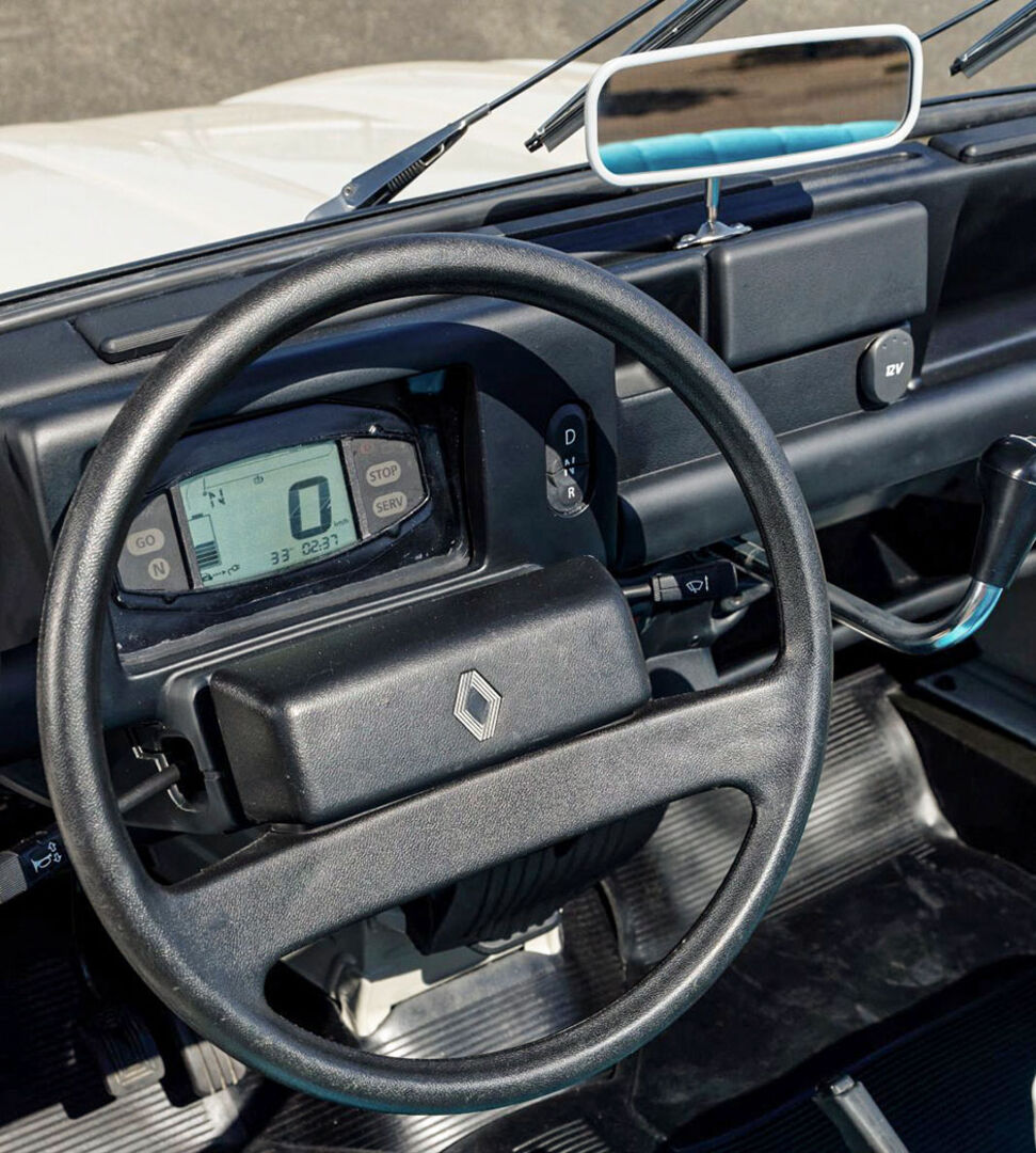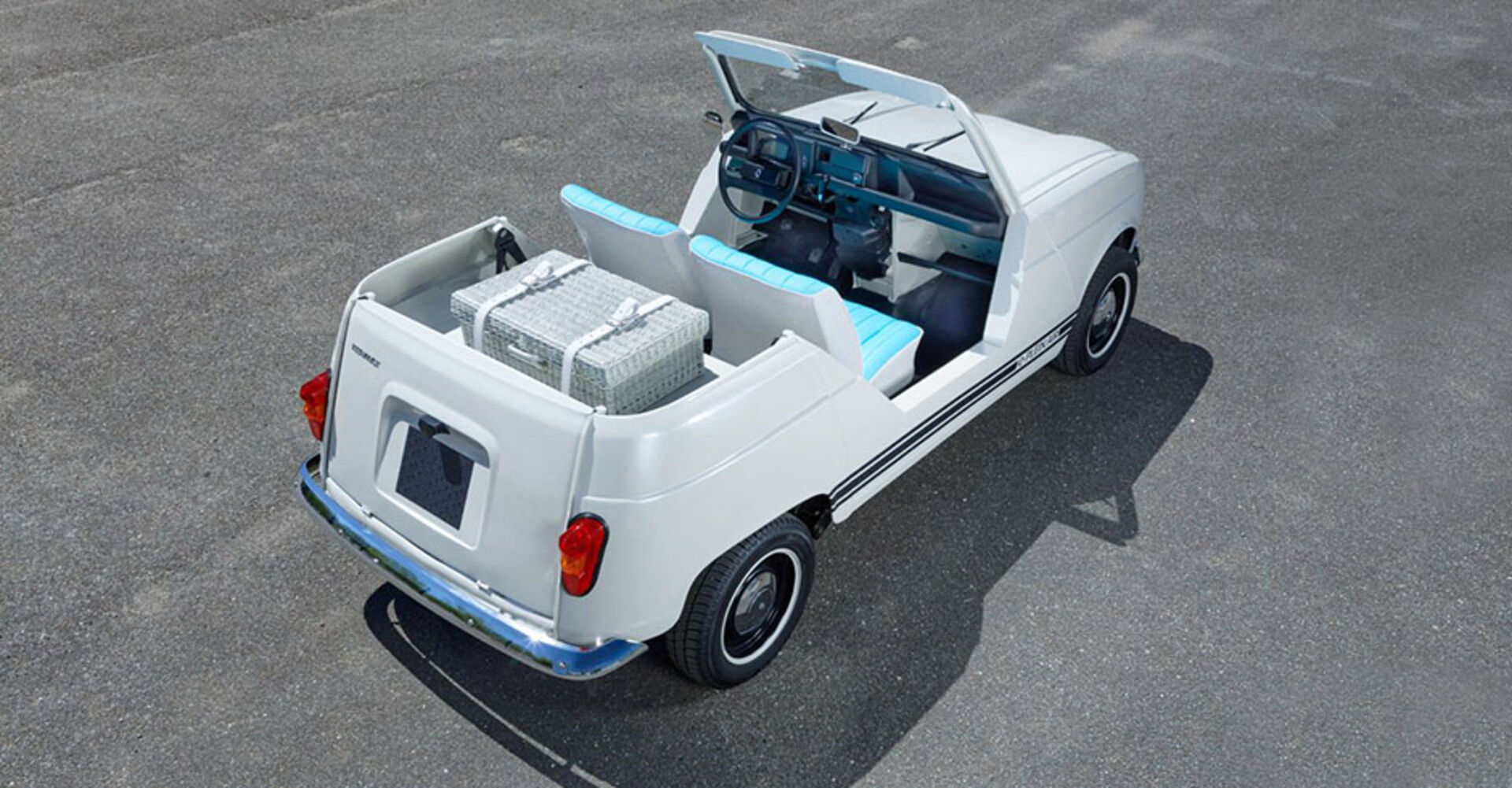 Statt des 845-Kubikzentimeter-Benziners des Originals übernimmt der Elektromotor des Renault Twizy den Antrieb. Die Rückbank des Originalmodells fiel der Batterie zum Opfer. Dafür gibt es dort einen stylischen Picknick-Korb. Leider ein Einzelstück.