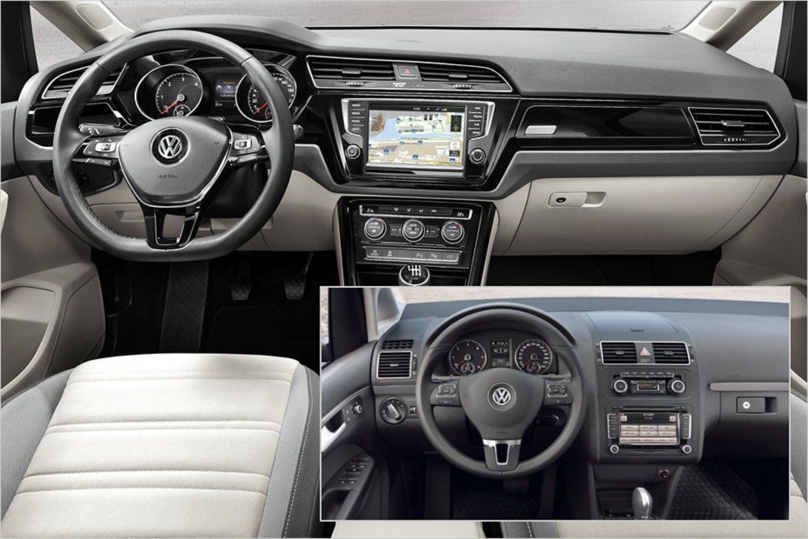Beim Styling ist VW seiner defensiven Linie treu geblieben und hat den Look des Wagens mit markanten Linien modernisiert, aber nicht revolutioniert. Der neue Touran trägt das aktuelle Familiengesicht der Marke und lässt sich auf den ersten Blick mit dem etwas kürzeren Sportsvan verwechseln. Im Vergleich zum Vorgänger wurde der Kompaktvan um 13 Zentimeter gestreckt (jetzt 4,53 Meter), davon kommen immerhin elf Zentimeter dem Radstand zugute (jetzt 2,79 Meter).