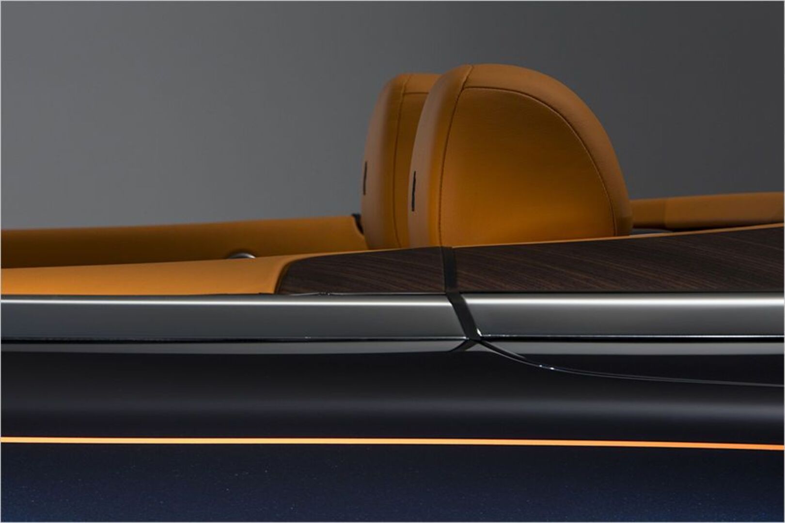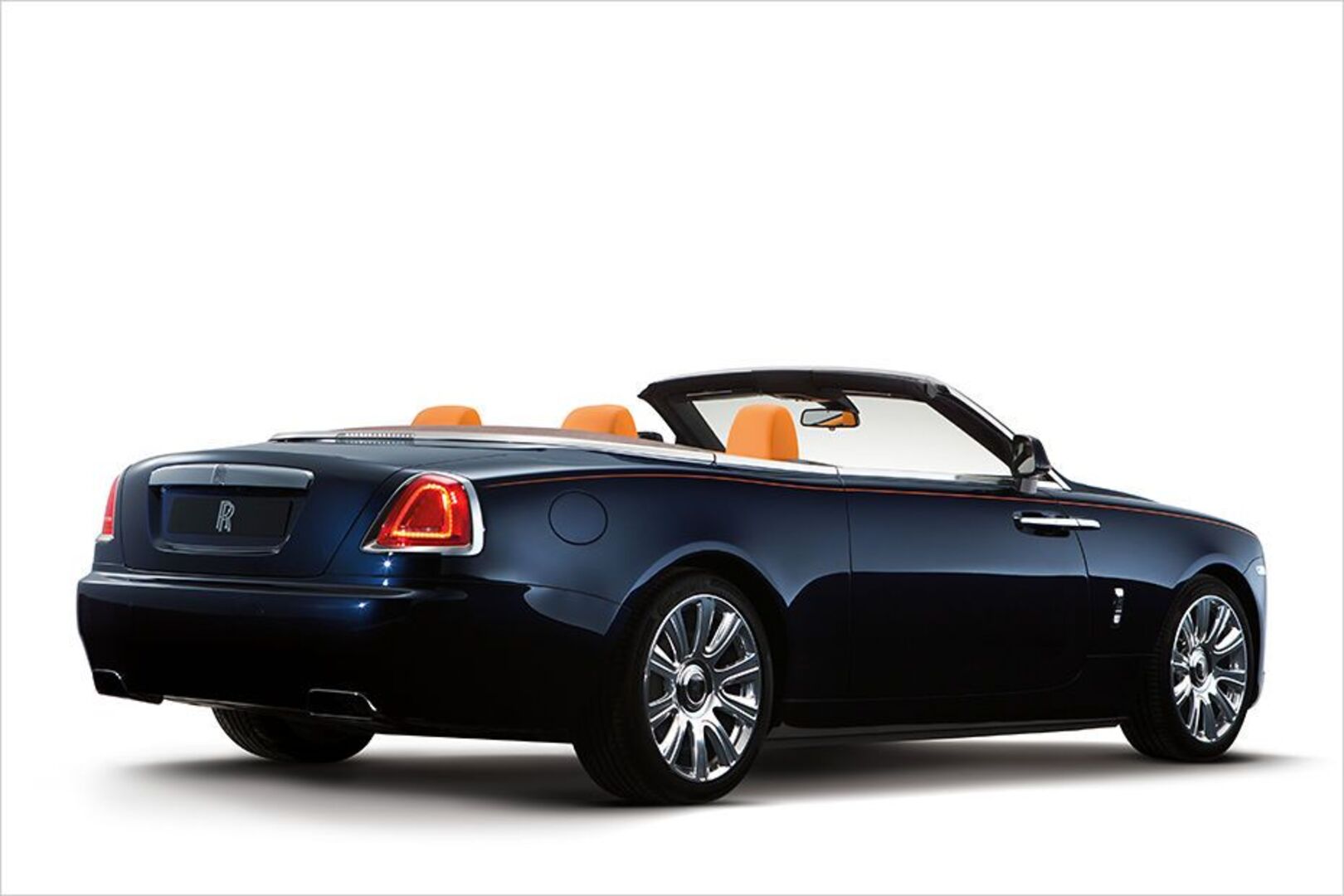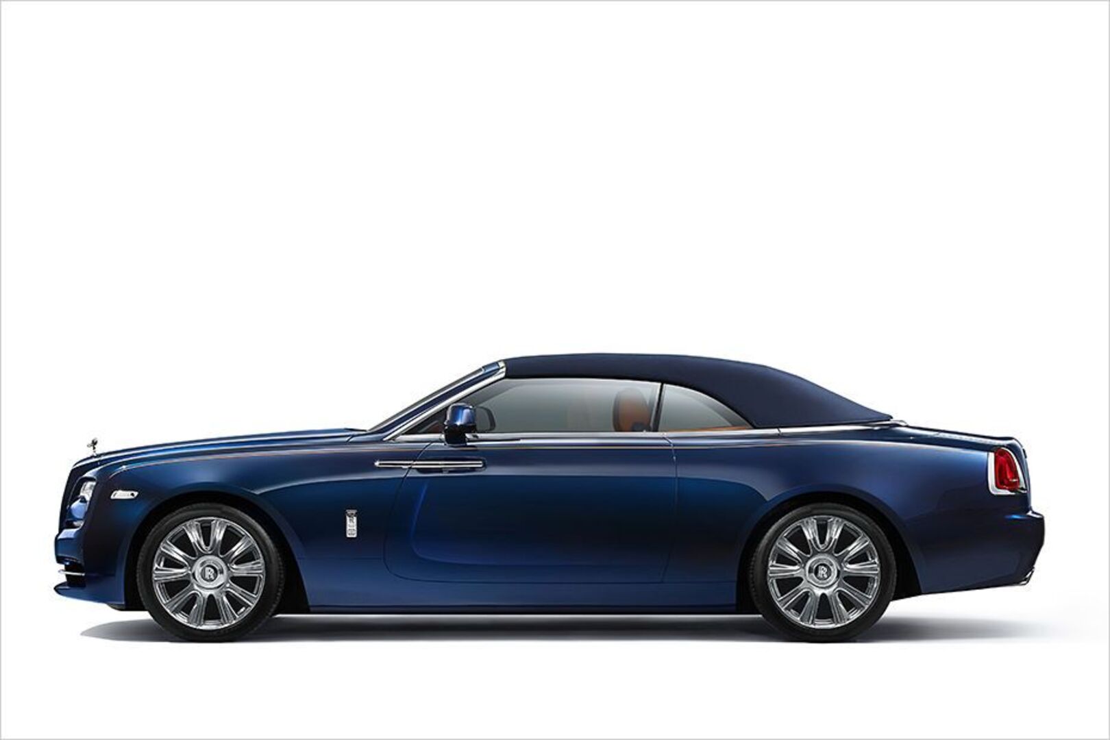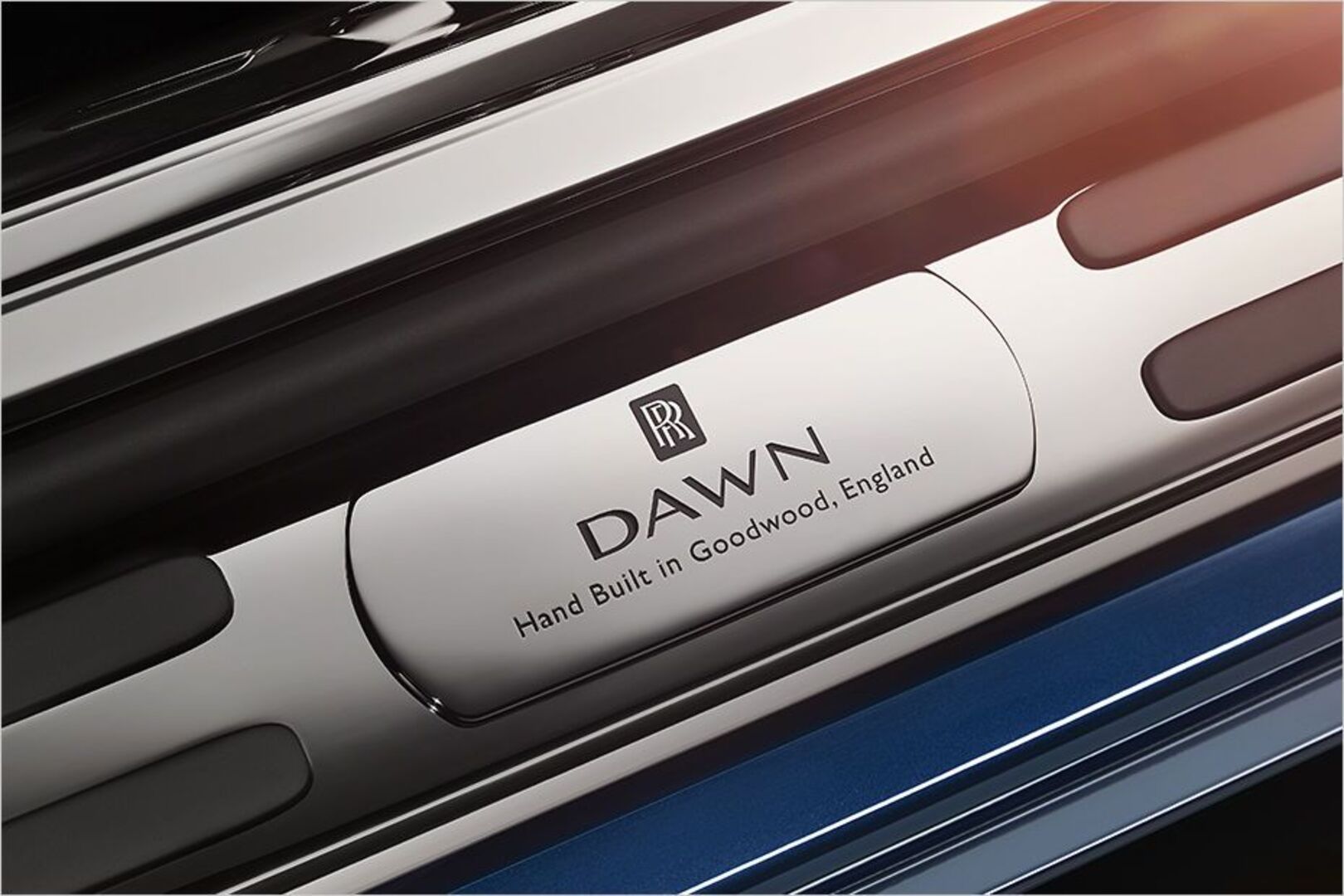 Über der Schulterlinie sitzt das harmonisch integrierte Soft-Top, das ohne konkave Flächen oder harte Kanten auskommt. Es verbindet die steile Windschutzscheibe mit dem Heck samt der hochgesetzten Bremsleuchte und dem im offenen Zustand sichtbaren "Deck" - der Abdeckung hinter der Rücksitzbank. Diese legt sich hufeisenförmig um die Rücksitze und ist vom Kunden individuell und nach eigenen (Holz)-Wünschen konfigurierbar. Ein Rolls-Royce-typisches Erkennungsmerkmal sind die "Coach"-Türen, die sich gegenläufig öffnen. Sie gewähren ein stilvolles Ein- und Aussteigen und verleihen dem Dawn außerdem eine höhere Stabilität. Das Textilverdeck - eines der größten für Cabrios - wird von einem eigens entworfenen Mechanismus betrieben: dem "Silent Ballet". Es öffnet in 22 Sekunden und bis zu einer Geschwindigkeit von 50 km/h. Im geschlossenen Zustand soll es im Inneren des Dawn genauso leise sein wie im Coupé mit festem Dach, was dem Dawn den Titel als leisestes Cabrio der Welt einbringen dürfte. Zusammen mit den kleinen Seitenscheiben im Fond entsteht bei geschlossenem Dach eine intime Privatsphäre im Innenraum.