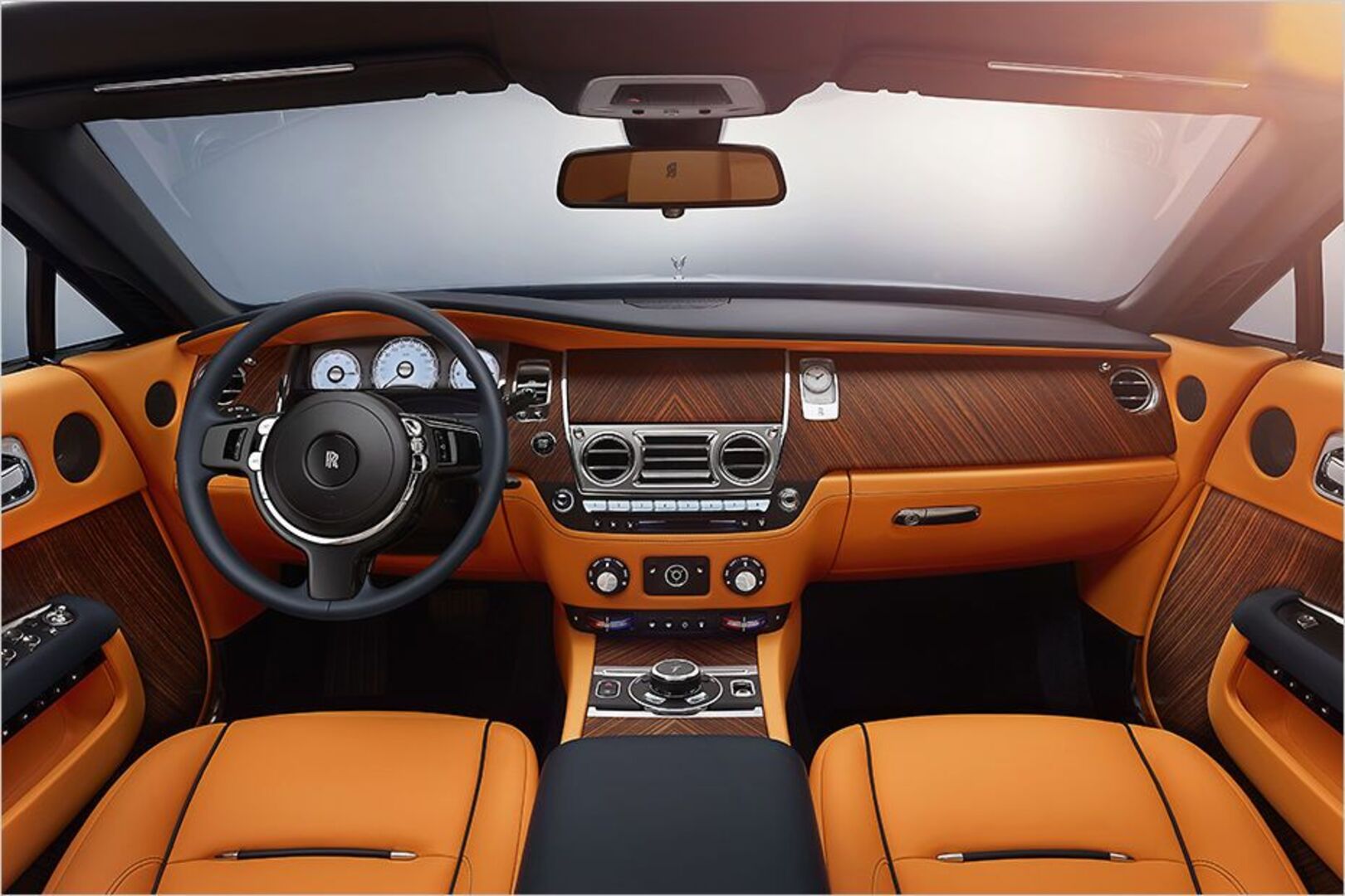 Der Dawn ist momentan der einzige moderne offene Viersitzer. Hintergrund ist, dass Rolls-Royce der Meinung war, die üblichen 2+2-Sitzer wären nur ein schlechter Kompromiss für alle Beteiligten. Daher findet man im Dawn vier separate Sitze, die in der Mitte von einer durchgängigen Konsole getrennt werden. Die Zeituhr im Instrumententräger wurde neu gestaltet und trägt jetzt unter anderem auch den Namen des Fahrzeugs. Für Musikfreunde gibt es das Rolls-Royce-Bespoke-Audio-System: Laut Rolls-Royce das umfassendste Hifi-System aller Zeiten mit 16 Lautsprechern. Zwei Basslautsprecher wurden im Kofferraum verbaut und sieben Hochtöner im Innenraum verteilt. Ein hochsensibles Mikrofon misst die Umgebungslautstärke und passt die Musik entsprechend an. Der neue, 10,25-Zoll-große HD-Bildschirm des Navis wird über den "Spirit of Ecstasy"-Controller gesteuert. Er unterstützt Fingereingaben wie bei einem Smartphone und erkennt neben lateinischen und arabischen Zeichen auch Mandarin. Eine automatische Geschwindigkeitsregelung macht das Fahren in der Stadt - genauso wie die neue Software für das Kamerasystem in der Front - angenehmer. Das Highlight im Assistenz-Systeme-Katalog dürfte das Head-up-Display mit Wärmebild sein, das den Fahrer auch bei Dunkelheit vor Menschen oder Tieren auf der Fahrbahn warnt.