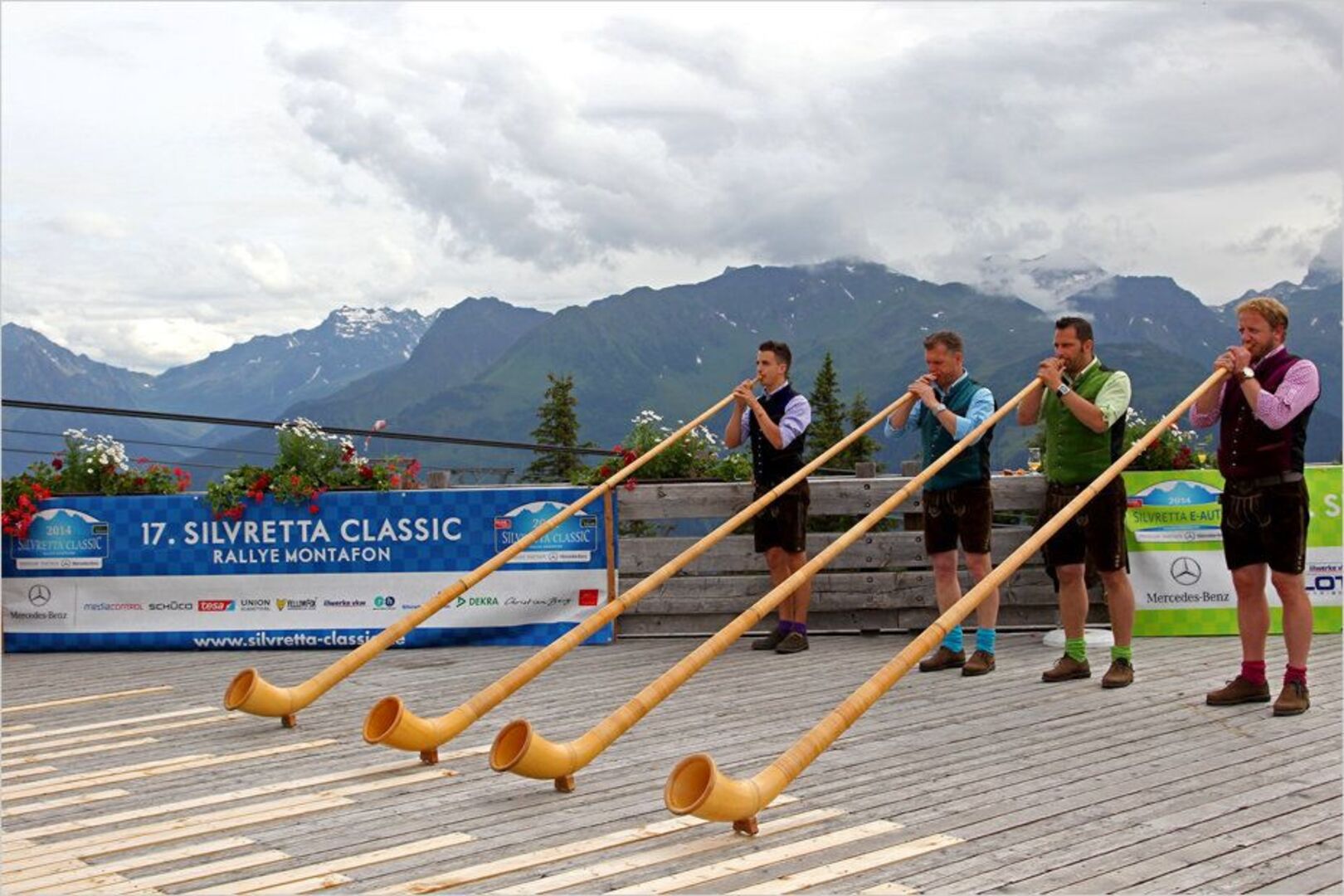 Stilgerechter Empfang: Im österreichischen Montafon, dem Start- und Zielpunkt der Silvretta Classic, gehören Alphornbläser einfach dazu.