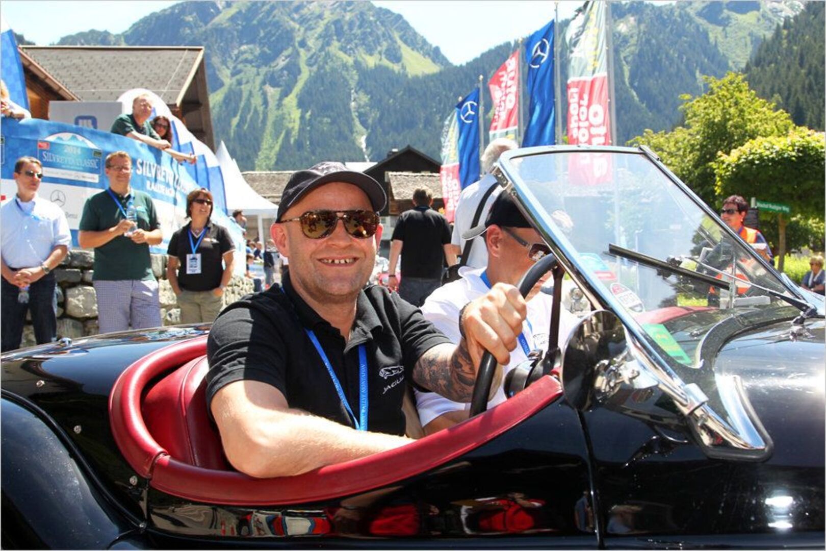 Prominenz ist bei vielen Oldtimer-Rallyes keine Seltenheit: Schauspieler Jürgen Vogel pilotierte bei der Silvretta Classic 2014 einen Jaguar XK 120 OTS.