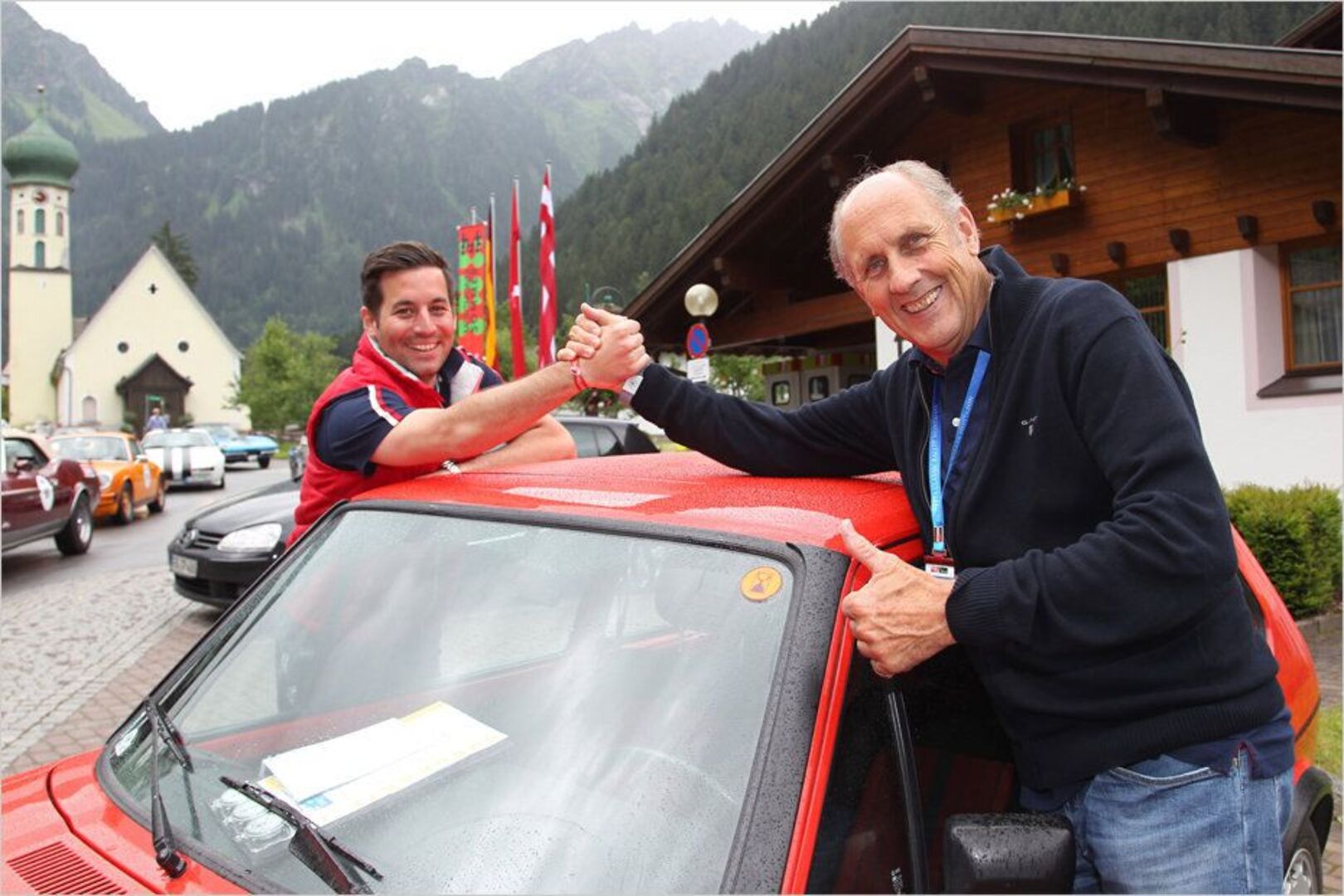 Ein starkes Team: Rennlegende Hans-Joachim "Strietzel" Stuck ging in seinem eigenen VW Golf GTI mit Beifahrer Andreas Schleef (links) auf die Reise. Leider…