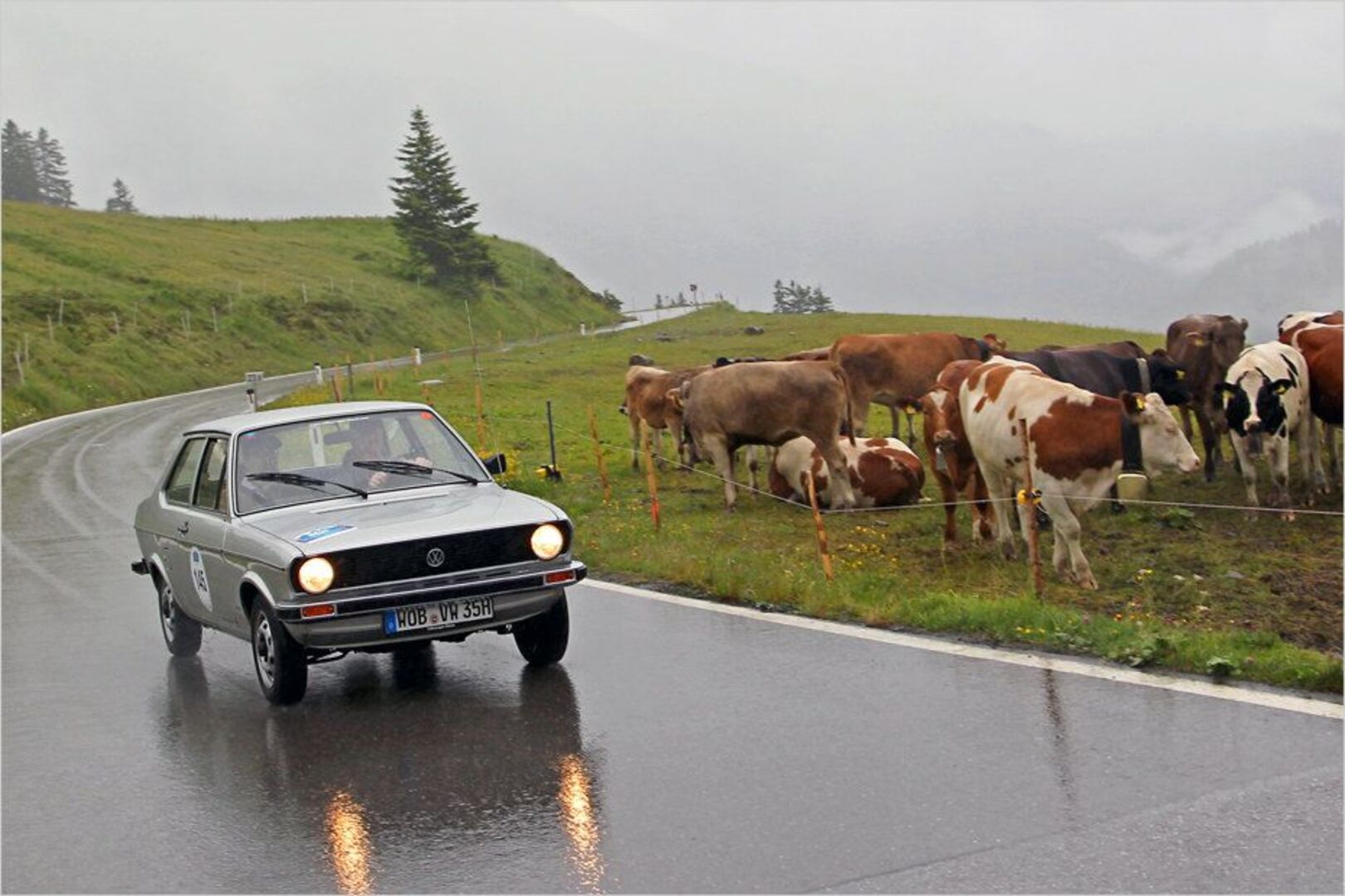 Man sieht es dem zweckmäßigen VW Derby nicht an, aber gerade in den Bergen macht der 3,83 Meter kurze Wagen viel Spaß. Kein Wunder, treffen hier 50 PS auf nur…