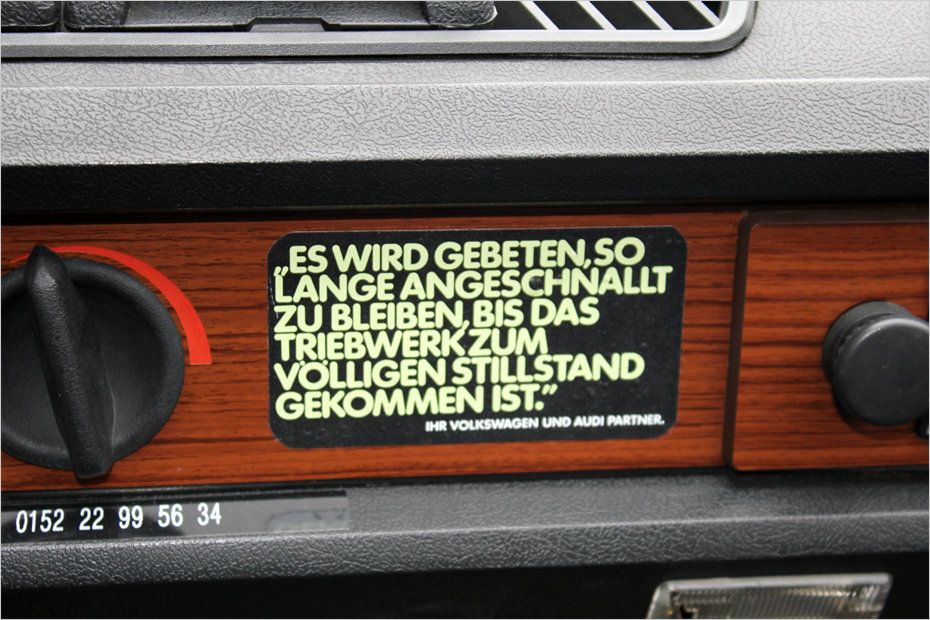 Ordnung muss sein, dachten sich die VW/Audi-Händler und brachten diesen Aufkleber in ihren Autos an. Sicherheit geht schließlich vor.