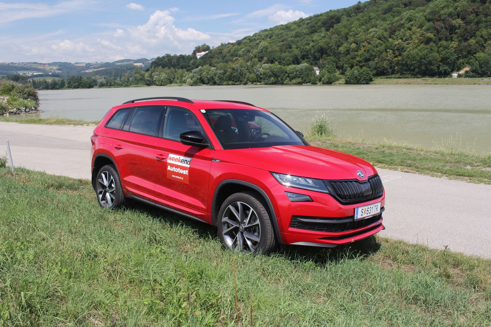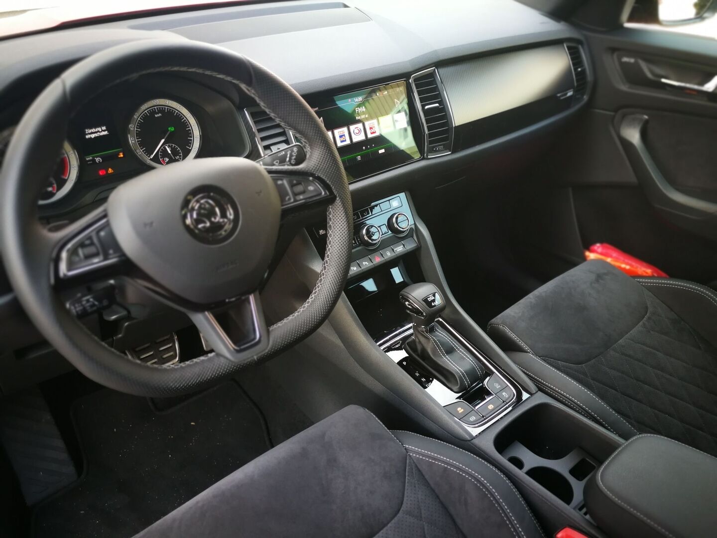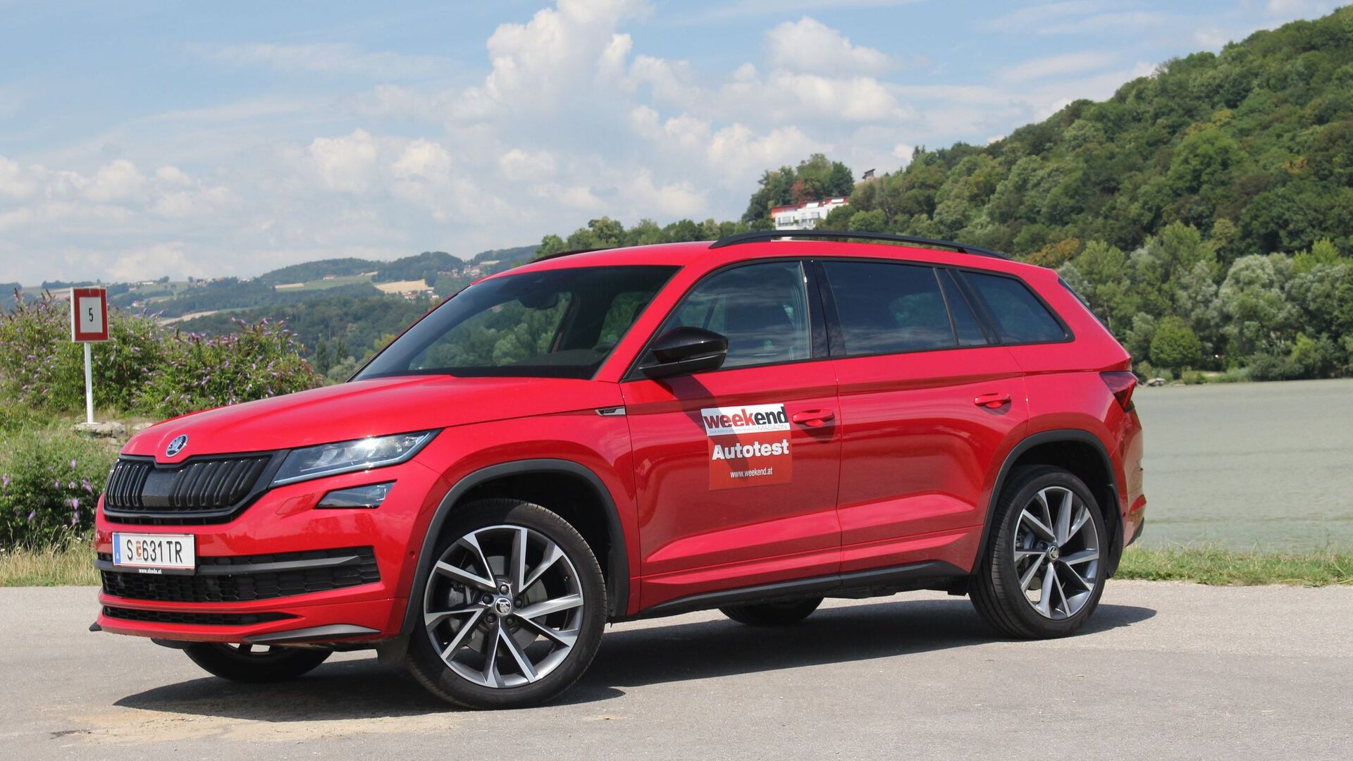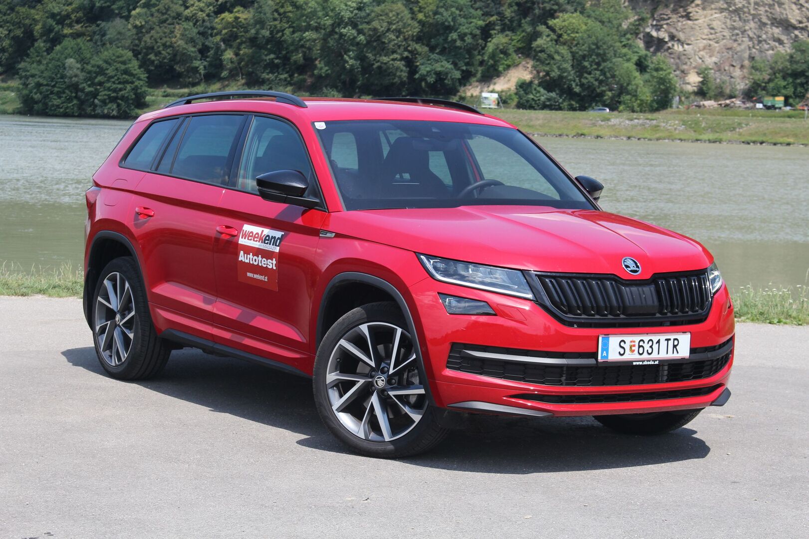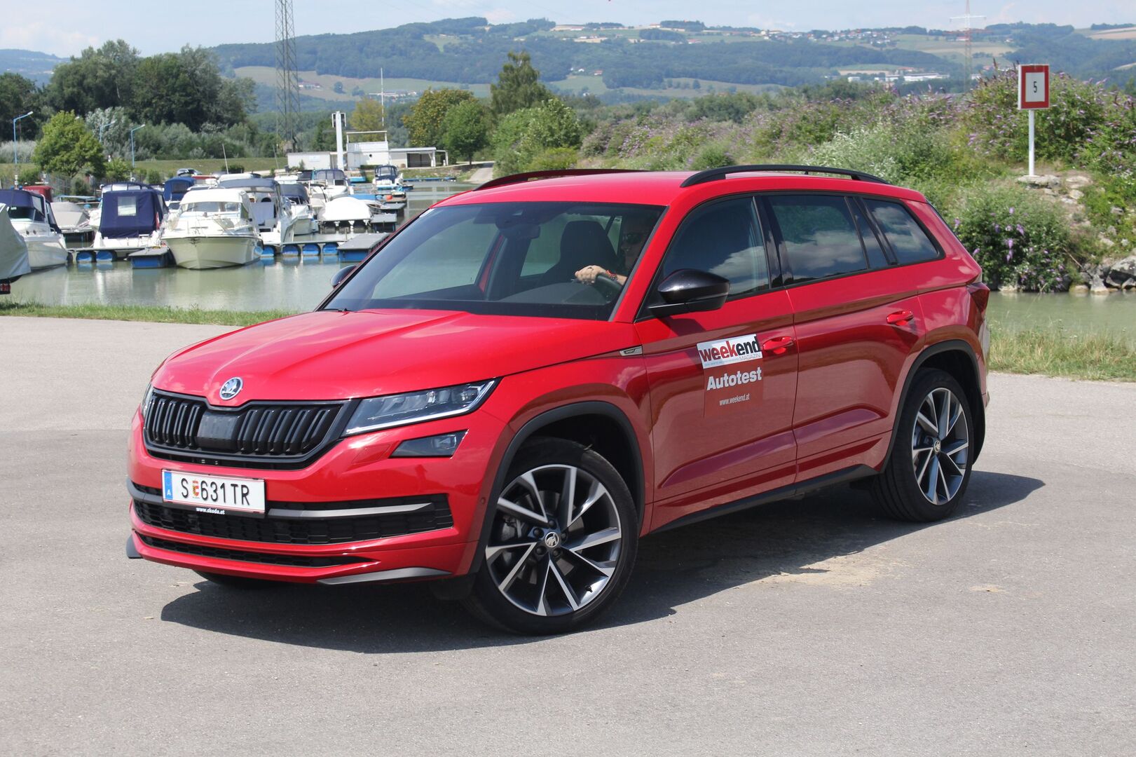 Das DSG-7-Gang-Getriebe schaltet natürlich butterweich. Im normalen Alltagsbetrieb „zieht“ es zwar schneller als Lucky Luke es tut, allerdings nicht beim Kick-down oder beim Kavalierstart an der Ampel. Da passiert eine Sekunde gar nichts. In bestimmten Situationen ist das doch störend. Im Sport-Modus funktioniert dies etwas besser. Im Gegenzug ist der getestete 190-PS-Diesel aber ein superflotter Motor, der im Test nur sieben Liter verbrauchte! Auch das Fahrwerk kann sich sehen lassen. Der Sportline-Fahrer kann aus acht Motor-Varianten mit 150 bis 190 PS wählen. Zum Preis: Das vollausgestattete Sportline kostete EUR 57.031,–. Der „normale“ Kodiaq mit 150-PS-Diesel startet derzeit bei EUR 34.530,–.