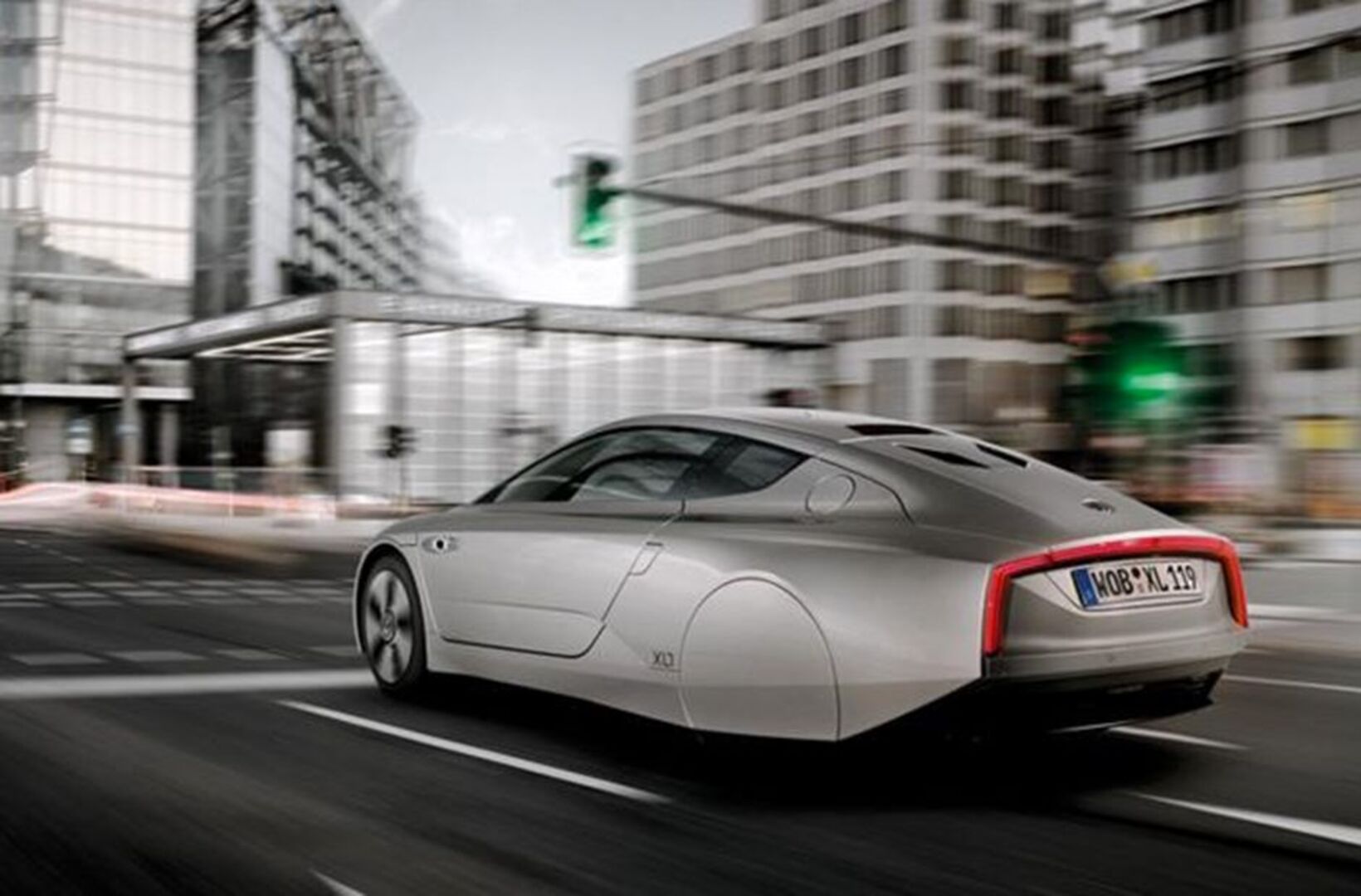 Mit einem Normverbrauch von 0,9 Liter je 100 Kilometer ist der XL1 das sparsamste Serienautomobil der Welt - Elektroautos natürlich ausgenommen. Für den Antrieb sorgen ein 800-Kubik-Diesel mit 48 PS sowie ein 27 PS oder 20 Kilowatt starker Elektromotor. Der Zweisitzer schafft bis zu 50 Kilometer rein elektrisch, die Gesamtreichweite beträgt das Zehnfache. Beim Energiesparen hilft dem Minimobil das geringe Gewicht von unter 800 Kilo und die perfekte Aerodynamik mit einem Cw-Wert von 0,189. So reichen laut VW 8,4 PS, um mit einer konstanten Geschwindigkeit von 100 km/h über die Ebene zu gleiten. Im Elektrobetrieb begnügt sich der Volkswagen mit weniger als 0,1 Kilowattstunde für mehr als einen Kilometer Fahrstrecke.