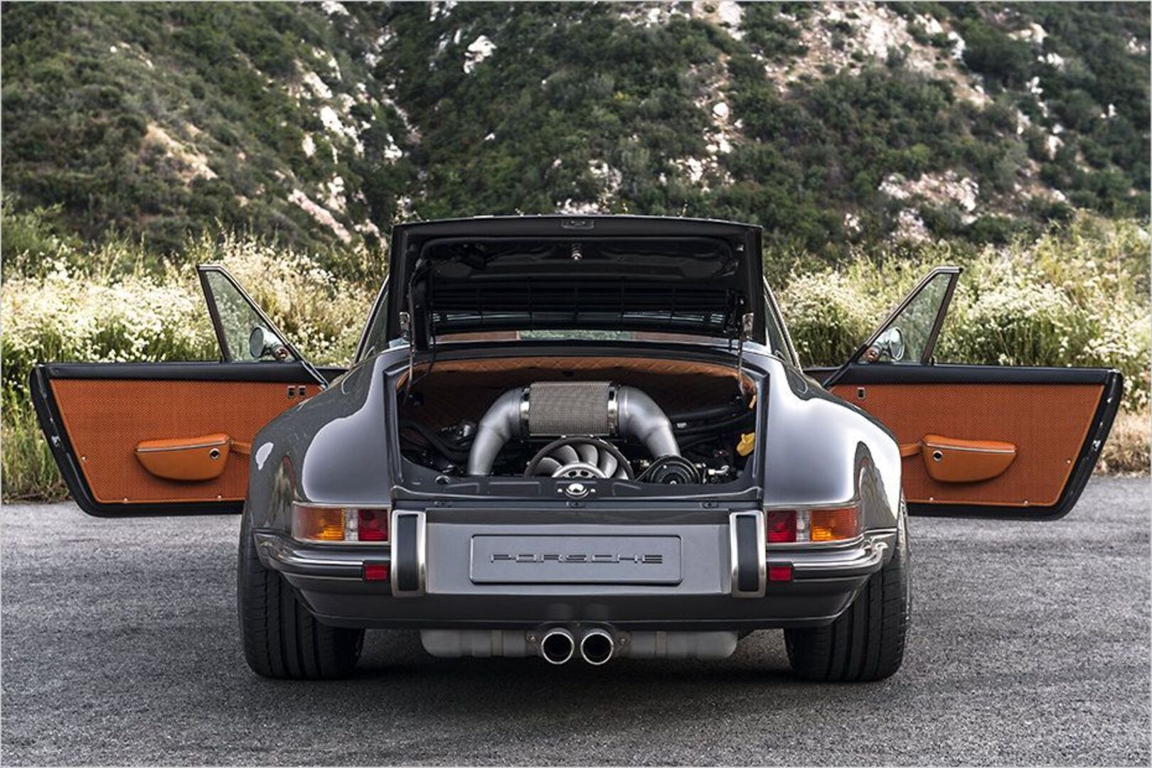 Beim Herzstück, dem Sechszylinder-Boxermotor, handelt es sich um die serienmäßige 3,6-Liter-Maschine des 964. Dadurch stimmen Motor- und Chassis-Nummern weiterhin überein. Das Aggregat wurde aufgearbeitet und der Hubraum auf vier Liter erweitert. 395 PS und 427 Newtonmeter maximales Drehmoment liegen jetzt an. Leistung und Kraft werden über eine Sechsgang-Schaltung aus einem Porsche 993 an die Hinterräder übertragen. Das Fahrwerk arbeitet jetzt mit Öhlins-Dämpfern.