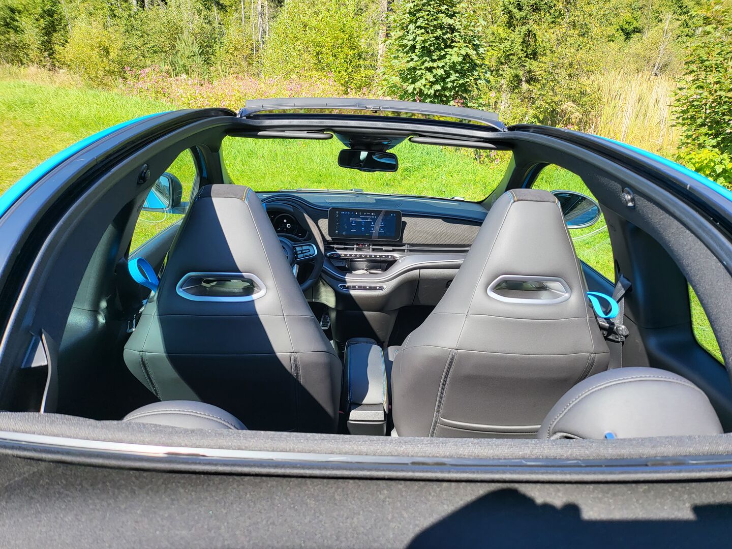 Ja,, der Abarth 500e ist schon ein Stück schwerer als ein Verbrenner, aber in den Kurven verhält sich der Italiener überraschend sportlich. Vielleicht nicht so brutal wie ein Verbrenner-Abarth, aber dafür fährt sich das Bürschchen im Alltag komfortabler. Fahrspaß bietet der elektrische Abarth aber ganz klar. Auch die Lenkung ist sehr gut gelungen. Ausgerüstet ist der Abarth 500e mit 155 elektrischen Pferden. In 7 Sekunden steht die Tachonadel auf 100 km/h. Damit das Tanken etwas schneller geht hat der kleine Flitzer ein 85-kW-Schnellladesystem verbaut. So sind 80 Prozent Reichweite in 35 Minuten erreicht. Beim Verbrauch gibt Fiat 18 kWh/100 Kilometer an. Der Startpreis liegt bei 43.000,- Euro. Fazit des Kurztest: Die giftige Knutschkugel ist ein Fahrspaß-Flitzer. Kein Monster auf der Straße – eher ein giftiger kleiner Zwerg.