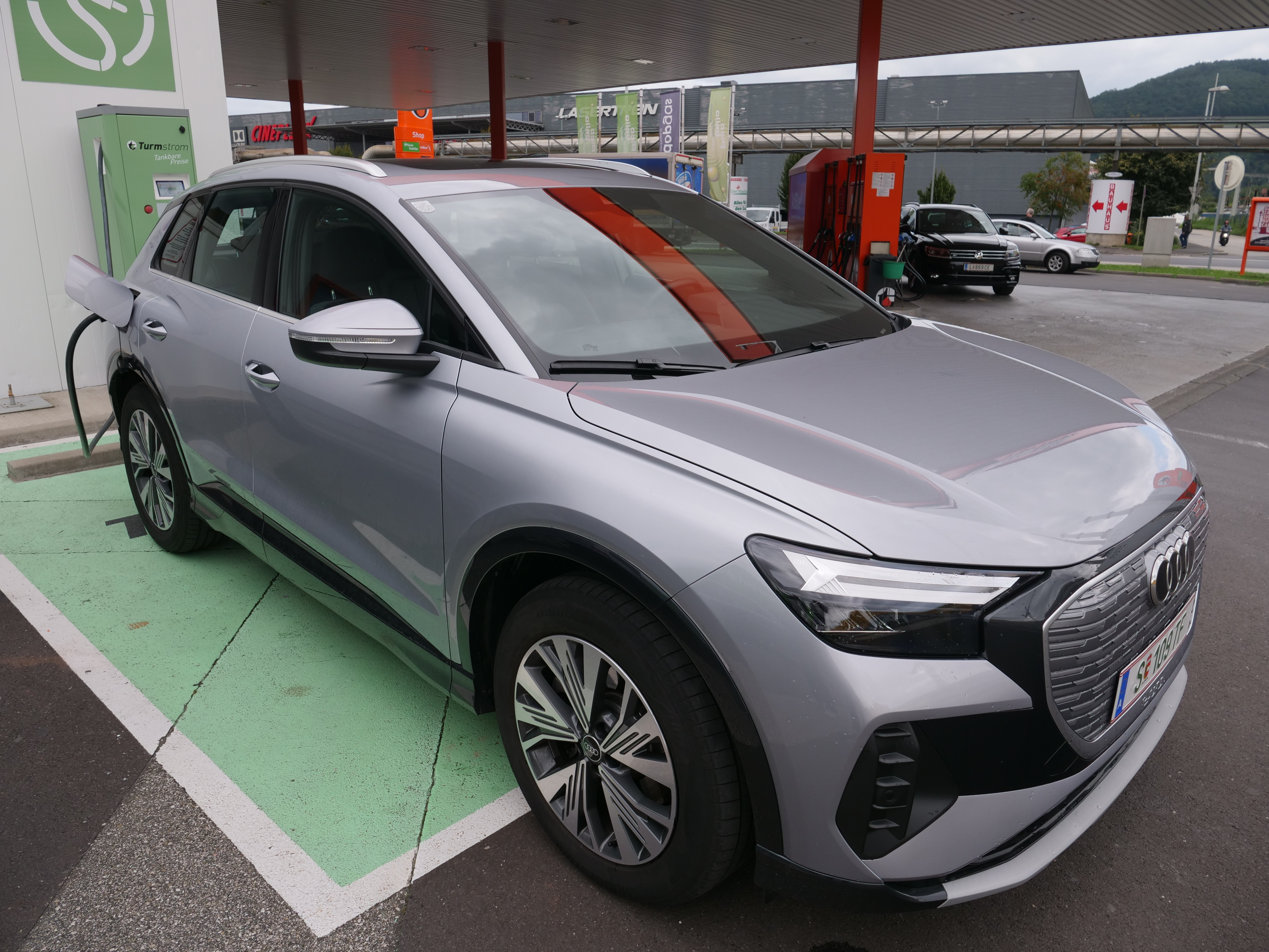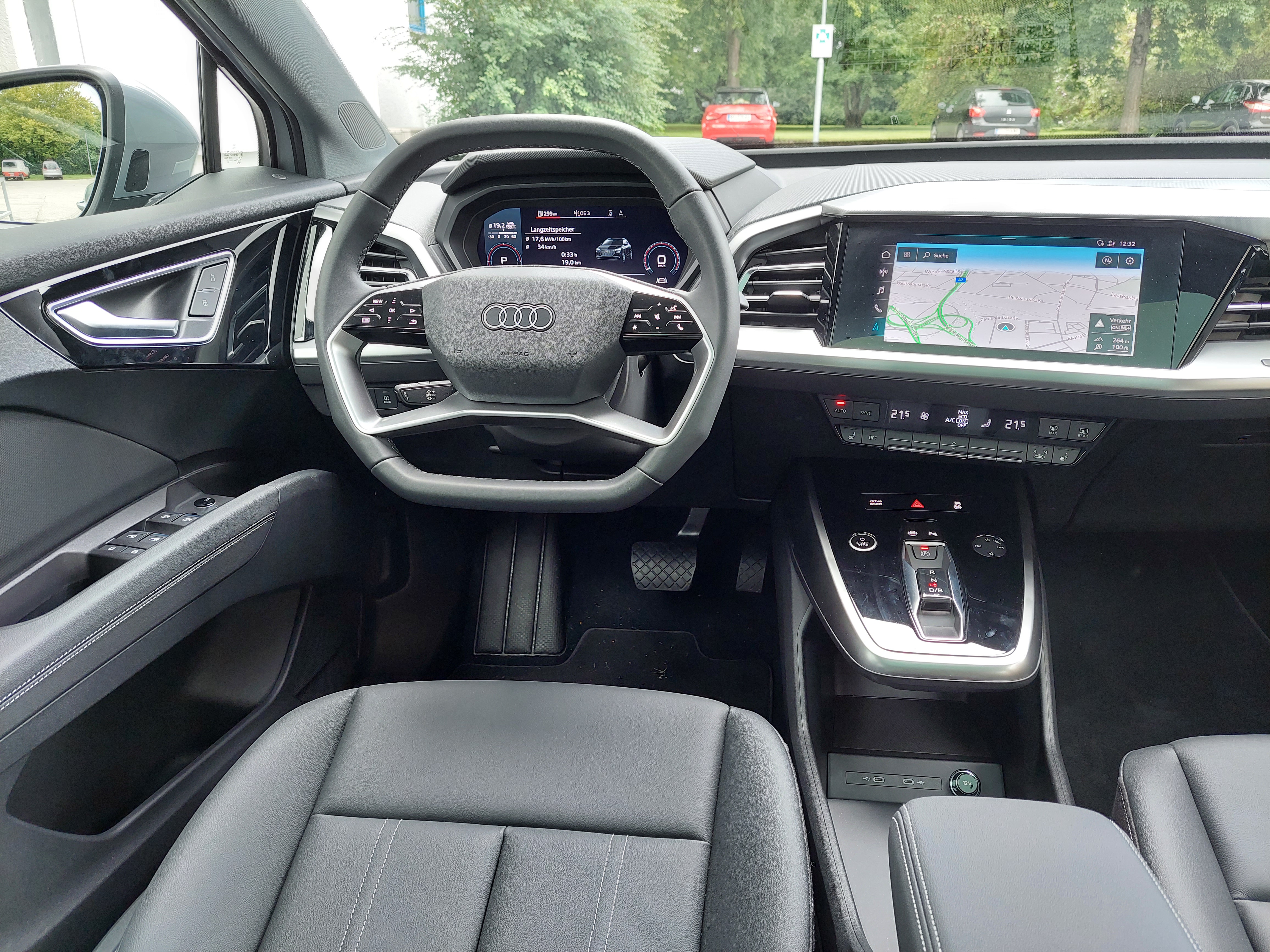 Im Alltag. Auffällig die besonders hochwertigen und gelungenen Sitze im Deutschen sowie ein Head-up-Display, das den Navipfeil virtuell dort auf der Straße einblendet, wo man abbiegt. Also z. B. zehn Meter davor! Auch das Fahrwerk ist nicht zuletzt durch den tiefen Schwerpunkt (Akkus im Boden mit 500 Kilo Gewicht) sehr gut. Der Q4 e-tron lässt sich unglaublich flott um die Kurven scheuchen. Überhaupt schenkt uns der E-Audi ein ausgewogenes Fahrgefühl, weil eben direkte Lenkung und Bremse gut zusammenpassen. Gut, wie schon bei den Konzernbrüdern, funktioniert das Rekuperieren. Wer bremst, gewinnt, lautet die Devise. So gewinnt man Kilometer um Kilometer Reichweite. Die Verarbeitung ist ganz klar hochwertig, aber es gibt doch etwas viel harter Kunststoff im Innenraum zu entdecken. Den Q4 e-tron gibt es übrigens auch als quattro und alternativ mit 299 bzw. 170 PS (mit 55-kWh-Batterie). Der Startpreis liegt bei 43.500 Euro (55 kWh), das Testauto hatte einen Endpreis von 62.000 Euro (ab 49.500 Euro). Detail am Rande: Auf Wunsch sitzt man auf Pet-Flaschen. Es gibt Sitzbezüge, die aus wiederaufbereitetem Polyester hergestellt sind. Sehr brav!