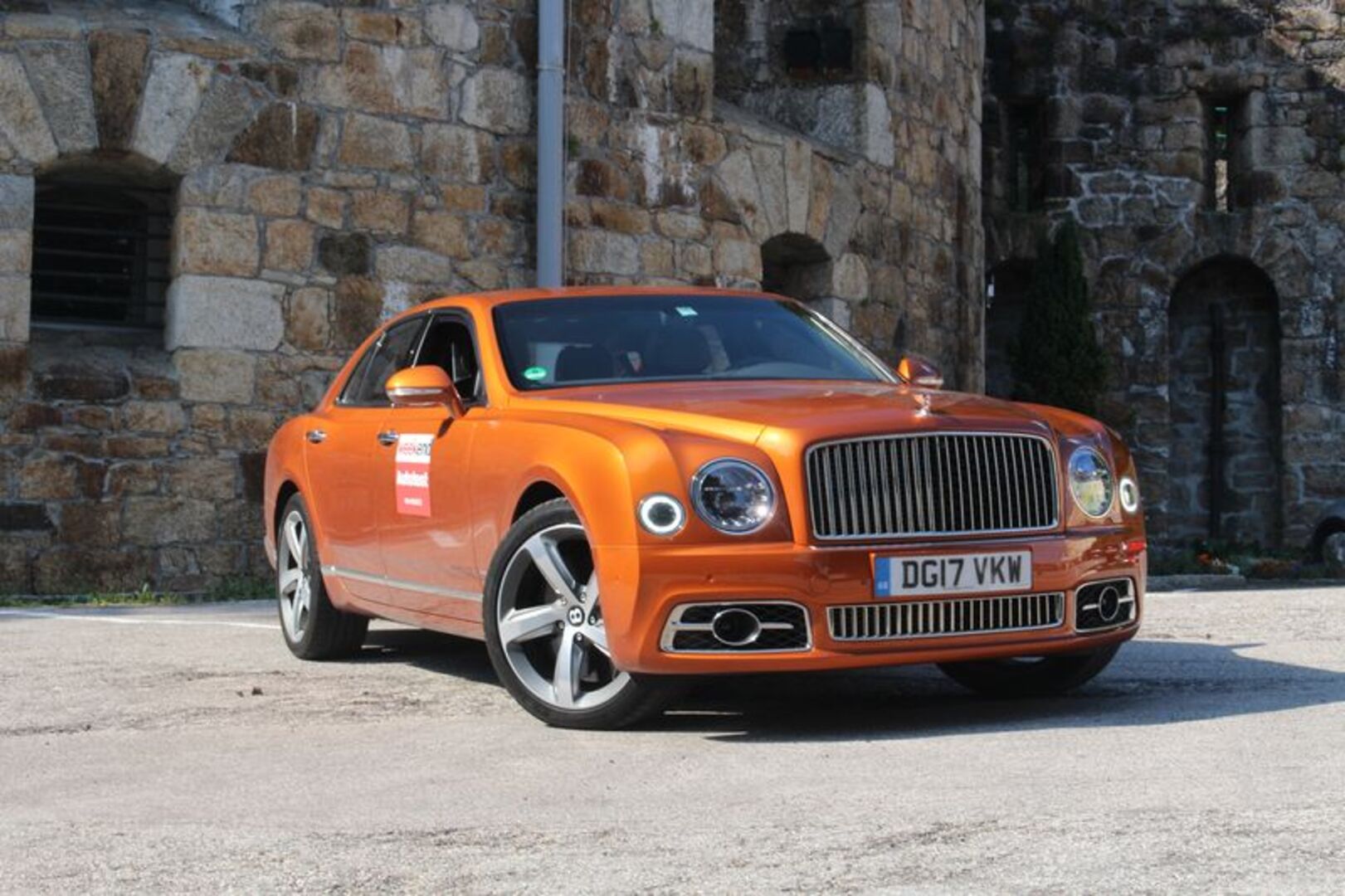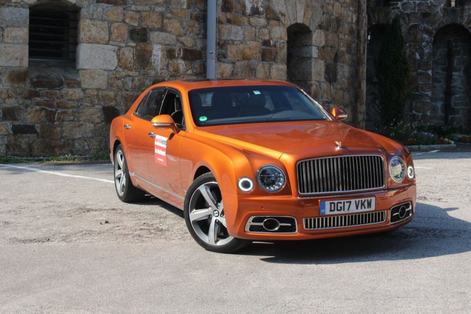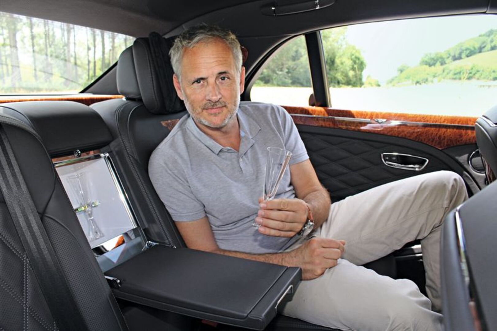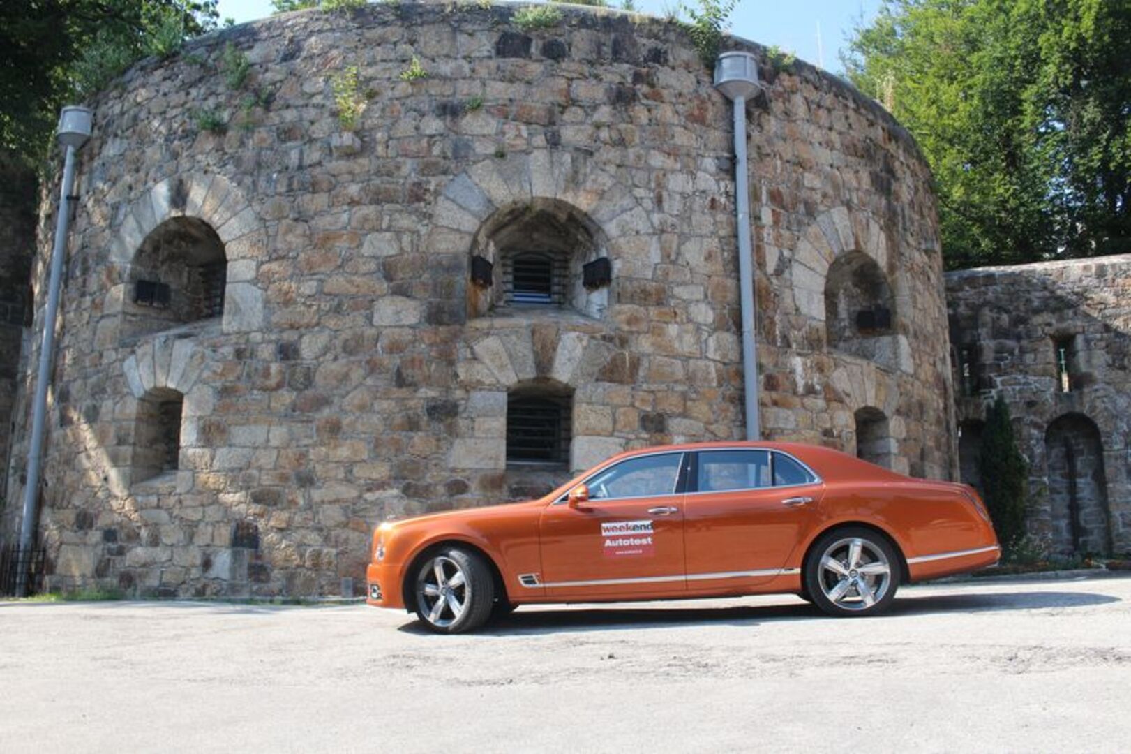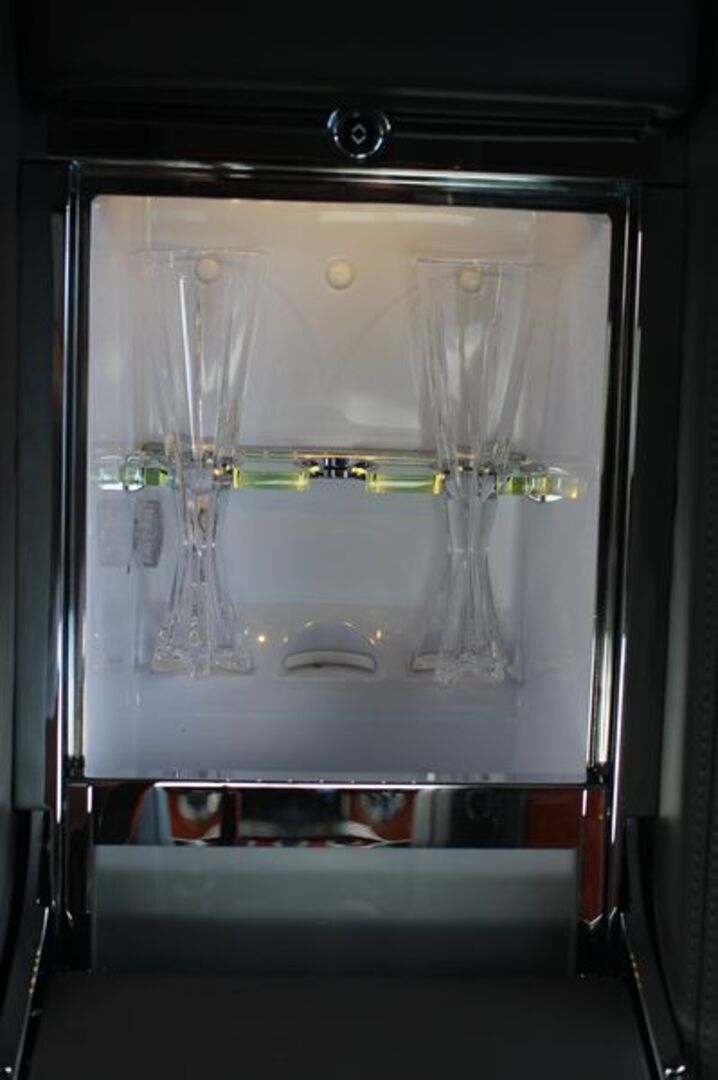Nachdem es Schlossführungen gibt, muss es auch Bentley-Führungen geben, denn da warten einige Nettigkeiten im 5,6 Meter langen Nobelhobel verbaut. So haben die Briten in der Mittelarmlehne einen Schampuskühlschrank mit Kristallgläseren integriert, der sich elektrisch öffnen lässt. Dann hätten wir noch Massagesitze (überall), einen edlen Bentley-Schirm im Kofferraum oder im Ledersitz versenkbare Multimediascreens. Feines Steppleder an allen Ecken und Enden rundet das Paket ab. Die Konkurrenz? Rolls Royce.