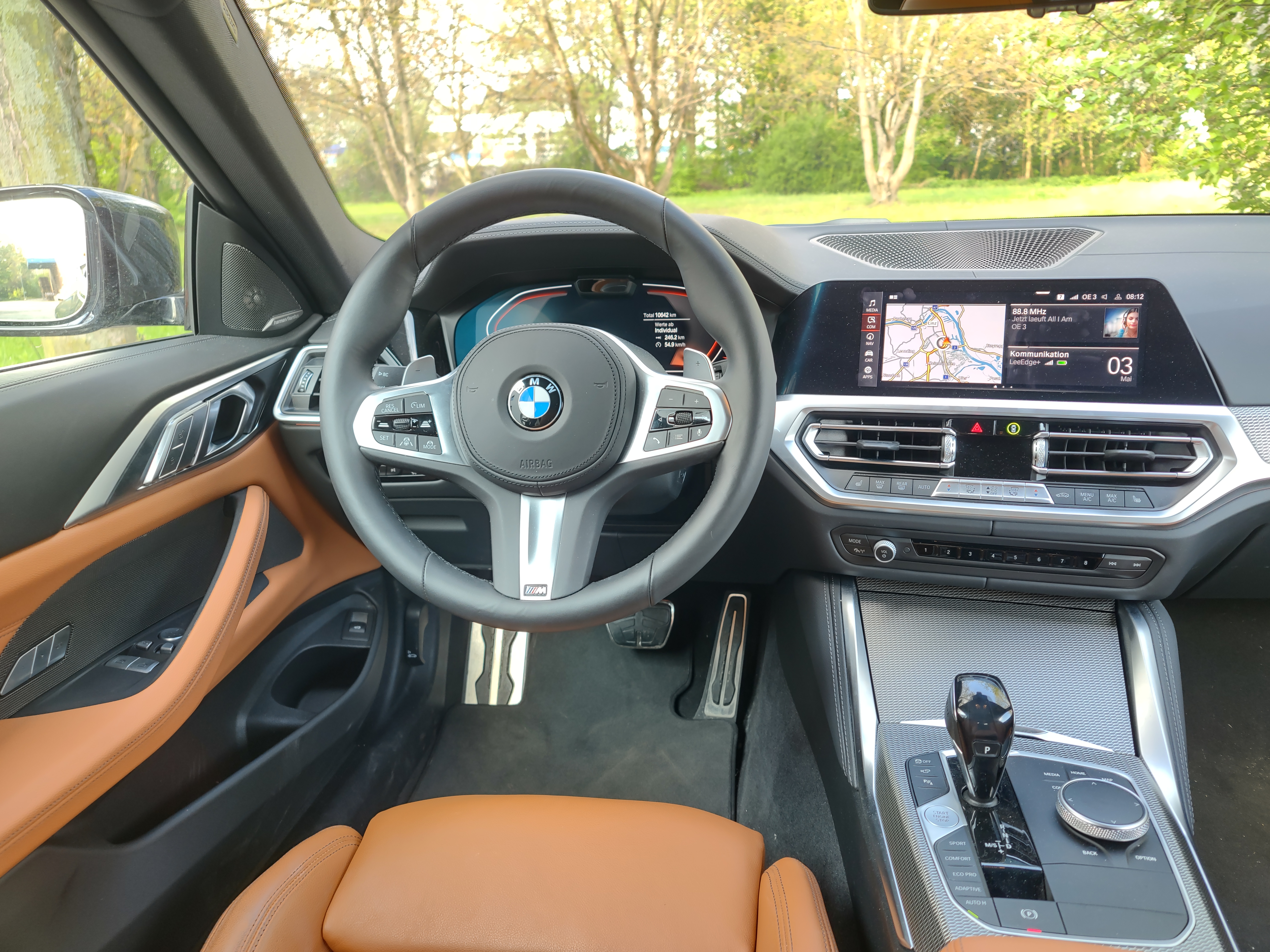 Das Cockpit ist wie ein sportliches Wohnzimmer. BMW-Fans und Besitzer der Marke werden sich sofort auskennen, mit Änderungen gehen die Münchner sehr sorgsam um. Eine Wohltat sind die Knöpfe, denn derer gibt es noch einige. Lautstärke, Stationstasten und andere physische Knöpfe helfen bei der Bedienung und sind eine gelungene Antithese zum Touch-Wahn anderer Hersteller. Wer jedoch möchte, kann das Infotainmentsystem auch "betatschen". Android Auto und Apple CarPlay sind mit von der Partie und BMW ist einer der ersten Hersteller, der ab sofort auch Android Auto Wireless ermöglicht. Apple CarPlay ging ja bisher schon ohne Kabel, ab Android 11 kann diese praktische Funktion auch das Android-Smartphone. Über Gestühl und Materialwahl brauchen wir nicht viele Worte verlieren. Gewohnte Top-Qualität von BMW. Punkt. Für eine gelungene Soundkulisse sorgt in unserem Testauto ein Premium-Soundsystem von Harman/Kardon.