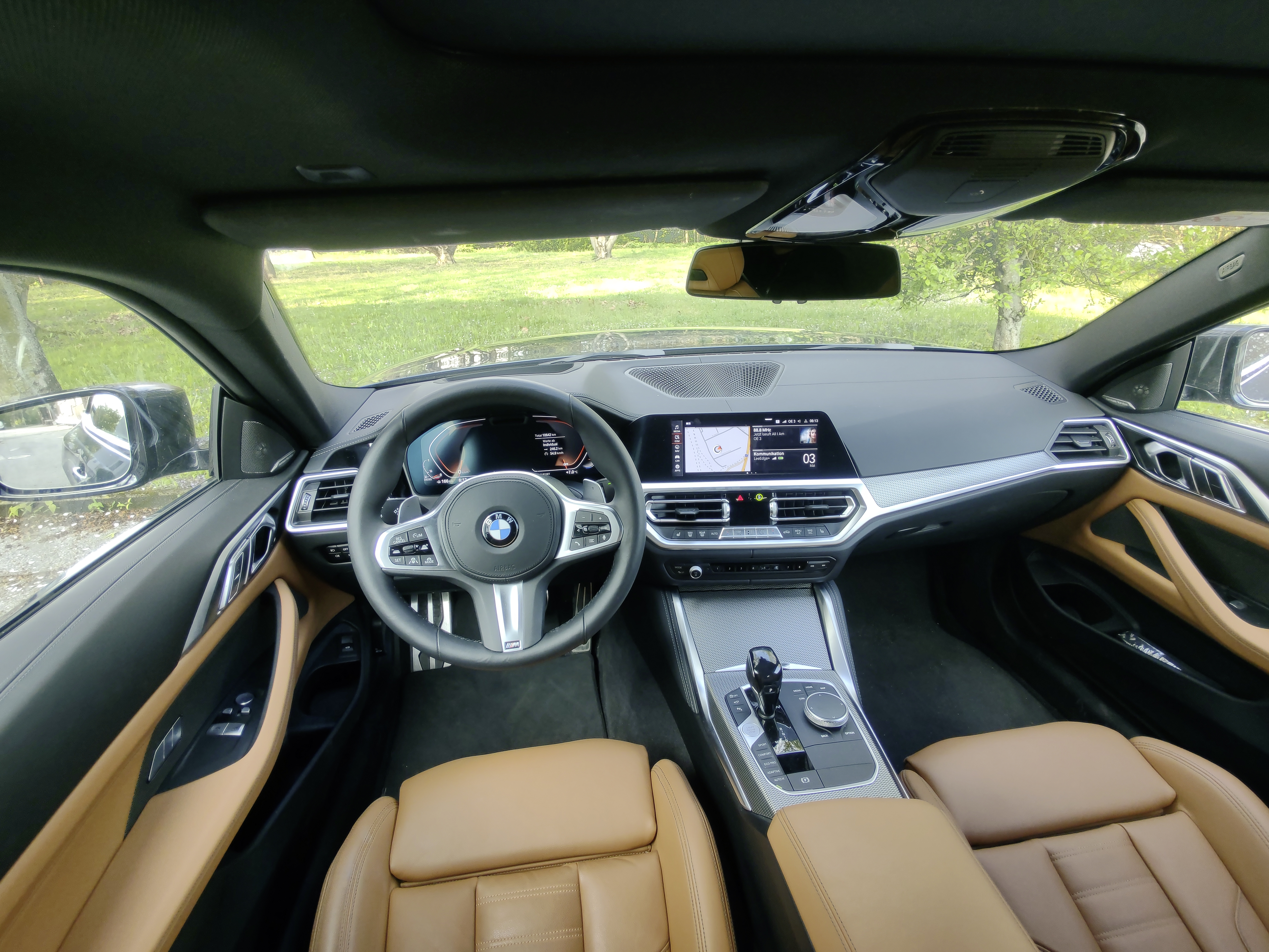 Fahrwerk und Cockpit sind BMW-typisch mehr als gelungen, das 4er-Coupé ist ein Kurvenfresser aber auch ein gemütlicher Cruiser. Die Fahrwerksabstimmung ändert sich, je nach Fahrmodus. 7,1 Sekunden von 0 auf 100 Sachen sind es im Sportmodus mit Sportschaltung (8-Gang-Automatik). Für perfekten Grip sorgt der xDrive Allradantrieb. Sehr gelungen ist die Geräuschkulisse im Inneren. Des öfteren wurde ich von Mitfahrern gefragt, ob das ein E-Auto ist! Den 2-Liter Diesel hört man im Innenraum de facto gar nicht, nur bei schnelleren Sprints meldet er sich ein wenig durch. Perfekt gedämmt haben hier die Münchner Ingenieure.