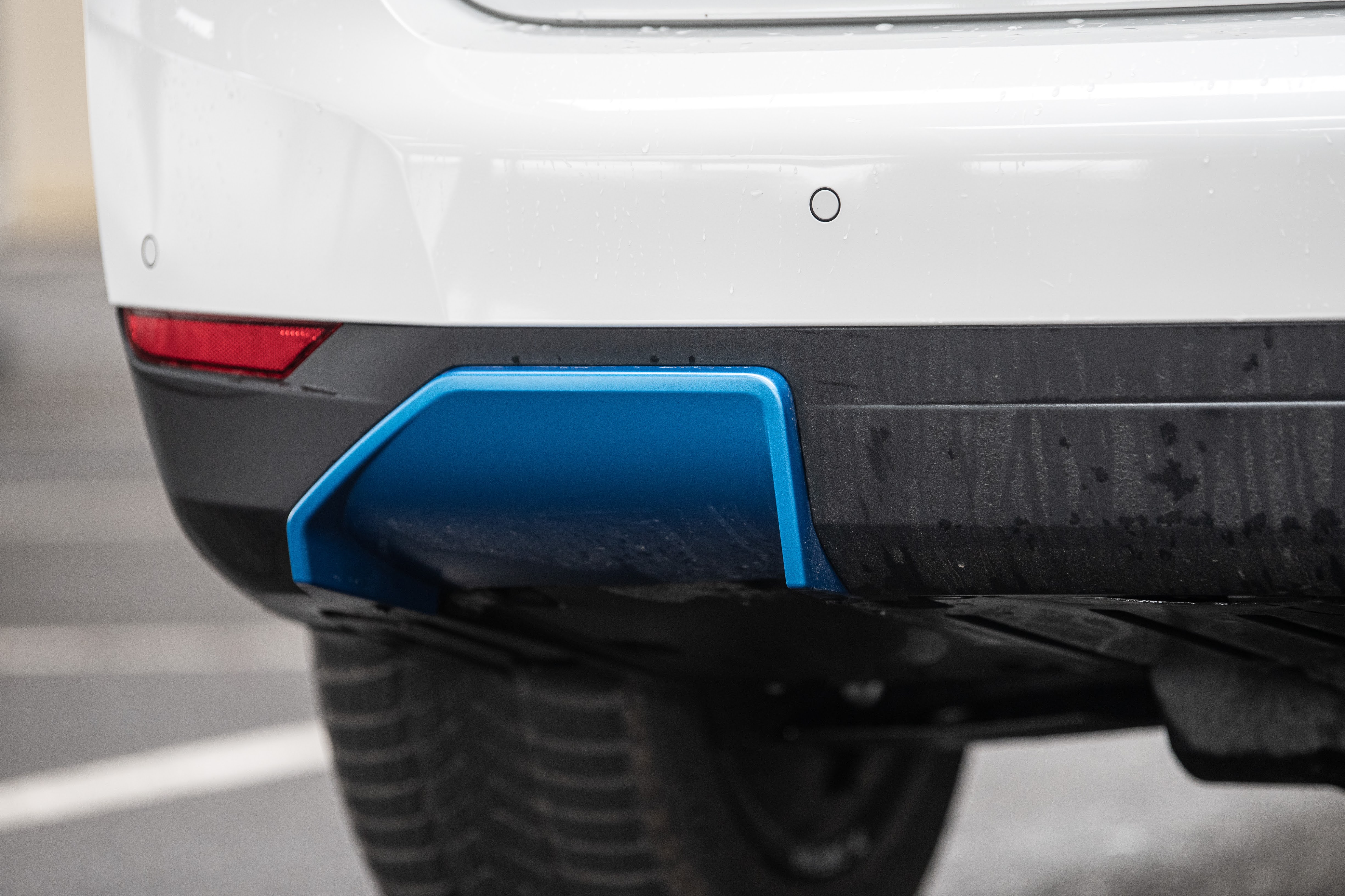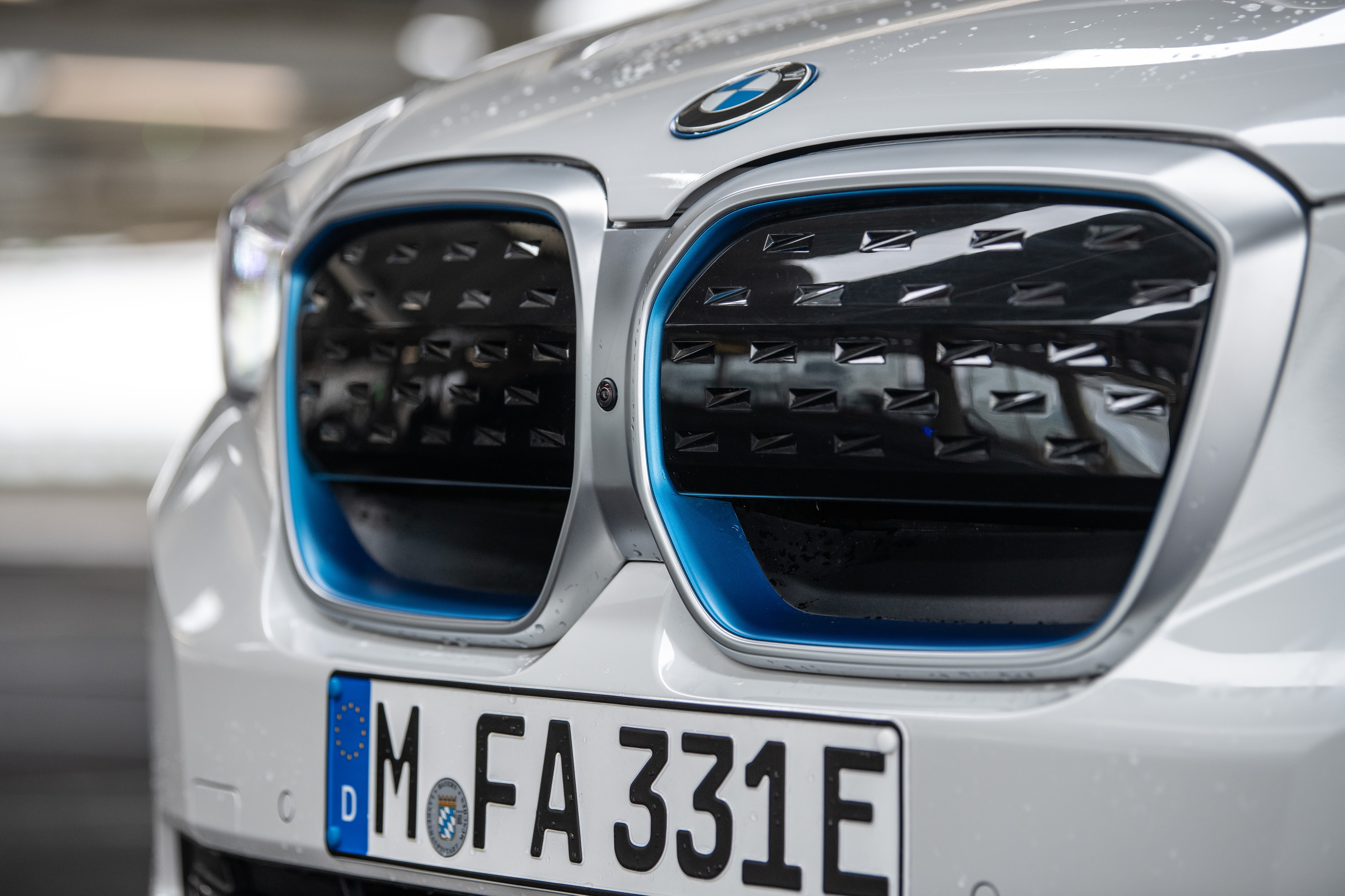 Man muss schon zweimal hinschauen, um zu erkennen, dass hier ein E-Auto vorfährt. Erkennbar ist ein iX3 von innen und außen durch die blauen Farbpatzer. Blau passt halt schon gut zu Bayern. Blau im Bereich der Frontnieren, blau dort wo eigentlich der Auspuff sitzen sollte, blau an den Seitenschweller, blauer Automatikhebel, blauer Startknopf und natürlich das blau-weiße Logo. Ein bisschen steckt auch Österreich im iX3. Erstmals sind E-Motor, Getriebe und Elektronik in einem Gehäuse zusammengefasst, das aus Steyr kommt. Aber das wichtigste zuerst! Welche Reichweite hat das Blauweiße SUV?