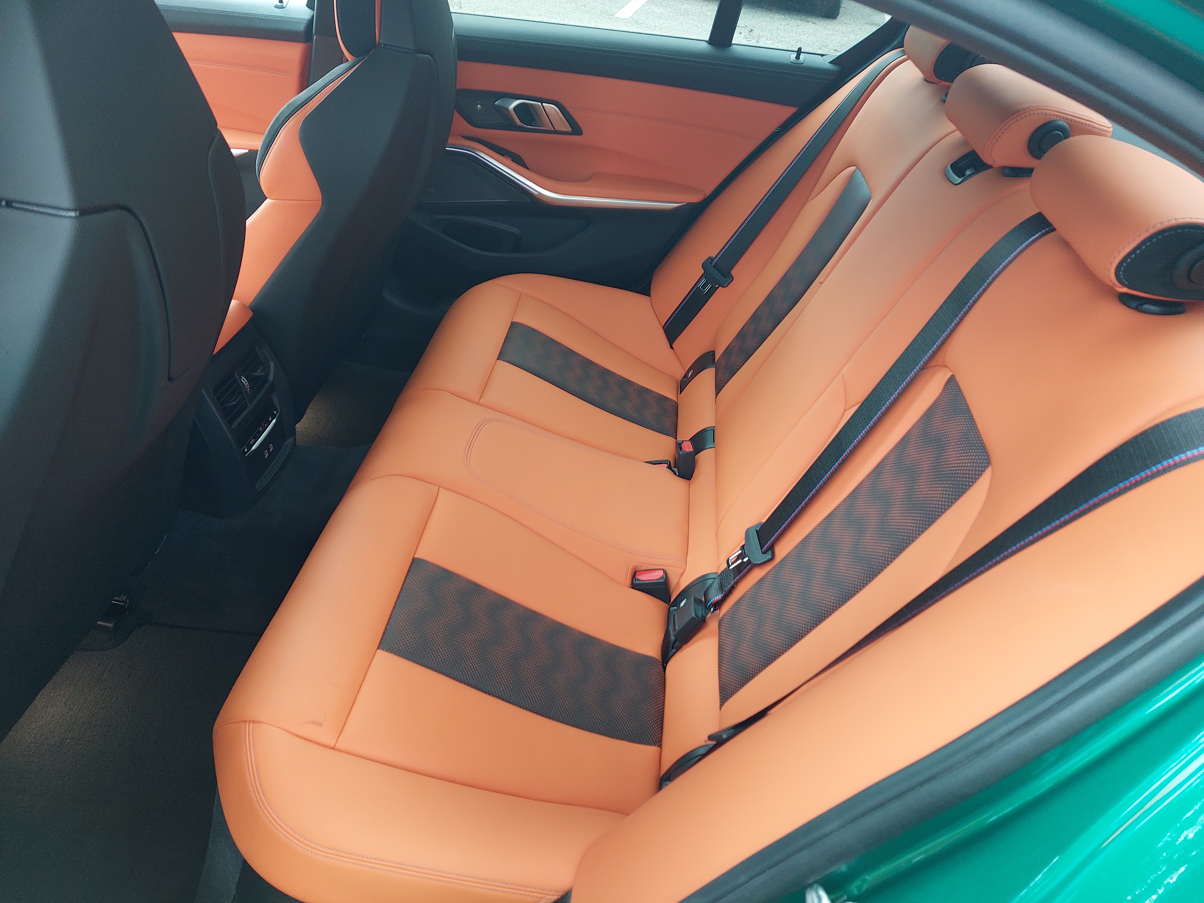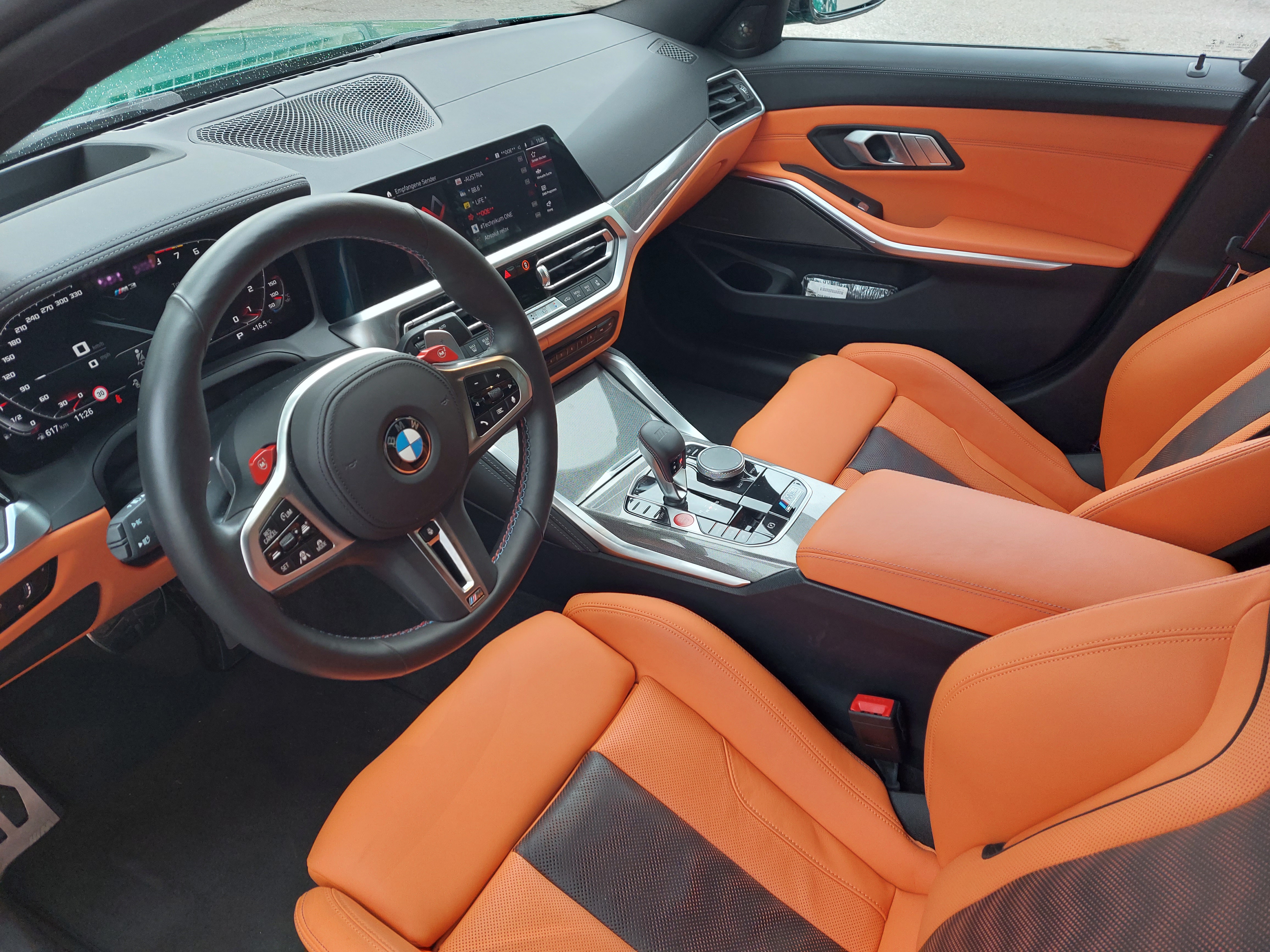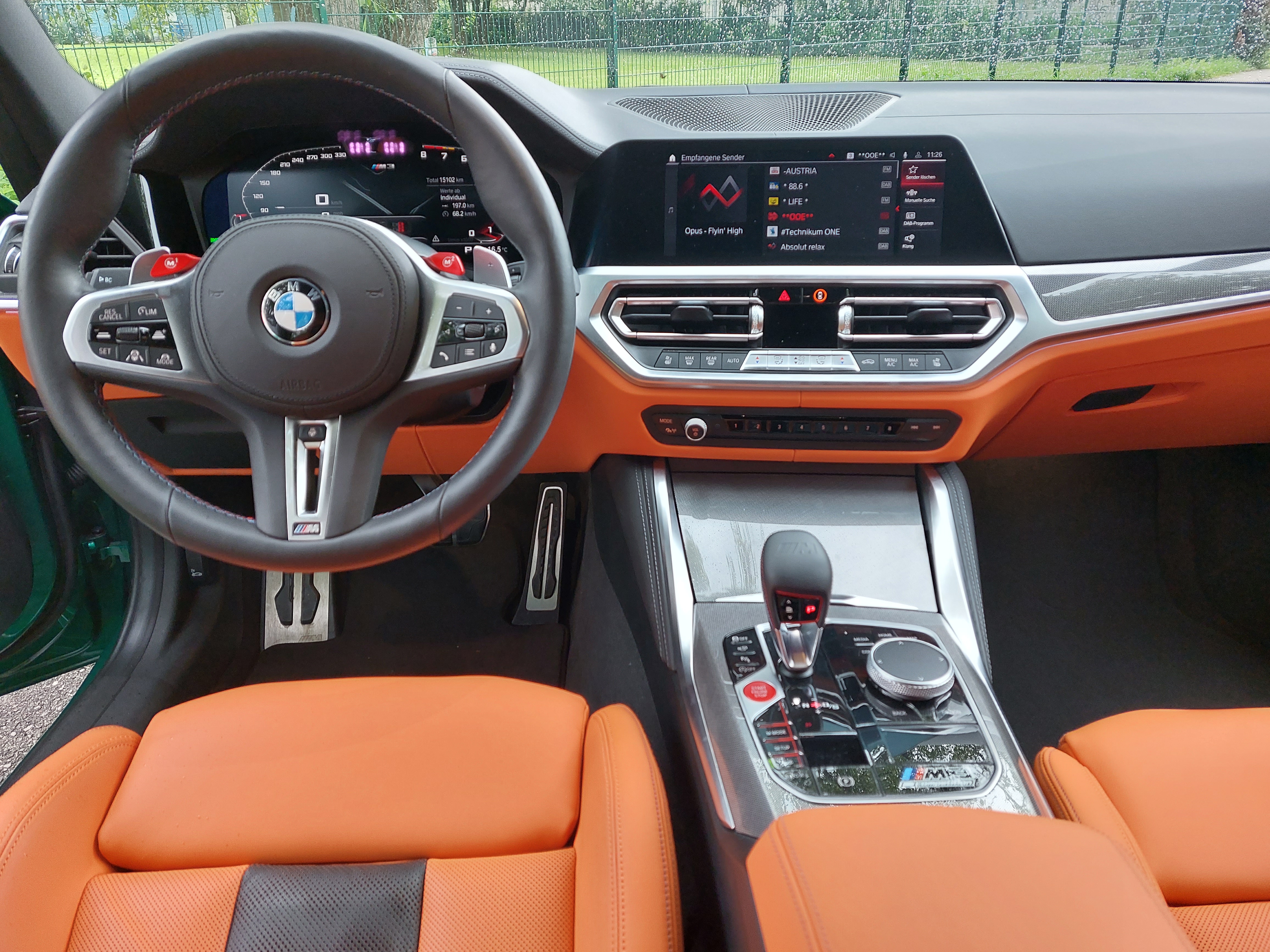 Auch die Bedienung und das Infotainment sind eine perfekte Mischung aus Touch und Knopf. Wichtige Elemente sind mit haptischen Knöpfen schnell erreicht, wer mag kann am Infotainmentscreen auch touchen. Und wer lieber ein Drehrad bedient hat neben dem Schalthebel die Möglichkeit dazu, denn auch diese Art der Bedienung bietet BMW nach wie vor an. Da können sich andere, touchwütige Germanen eine Scheibe abschneiden. Das vernetzte Infotainmentsystem ist gut bedienbar, aber manchmal etwas verschachtelt. An der Bediengeschwindigkeit gibt es nichts auszusetzen. Platz ist im M3 Competition auch viel vorhanden. Die zweite Reihe sitzt angenehm und in den Kofferraum passen 405 Liter, oder sechs Kisten mit feinstem bayerischen Weißbier.