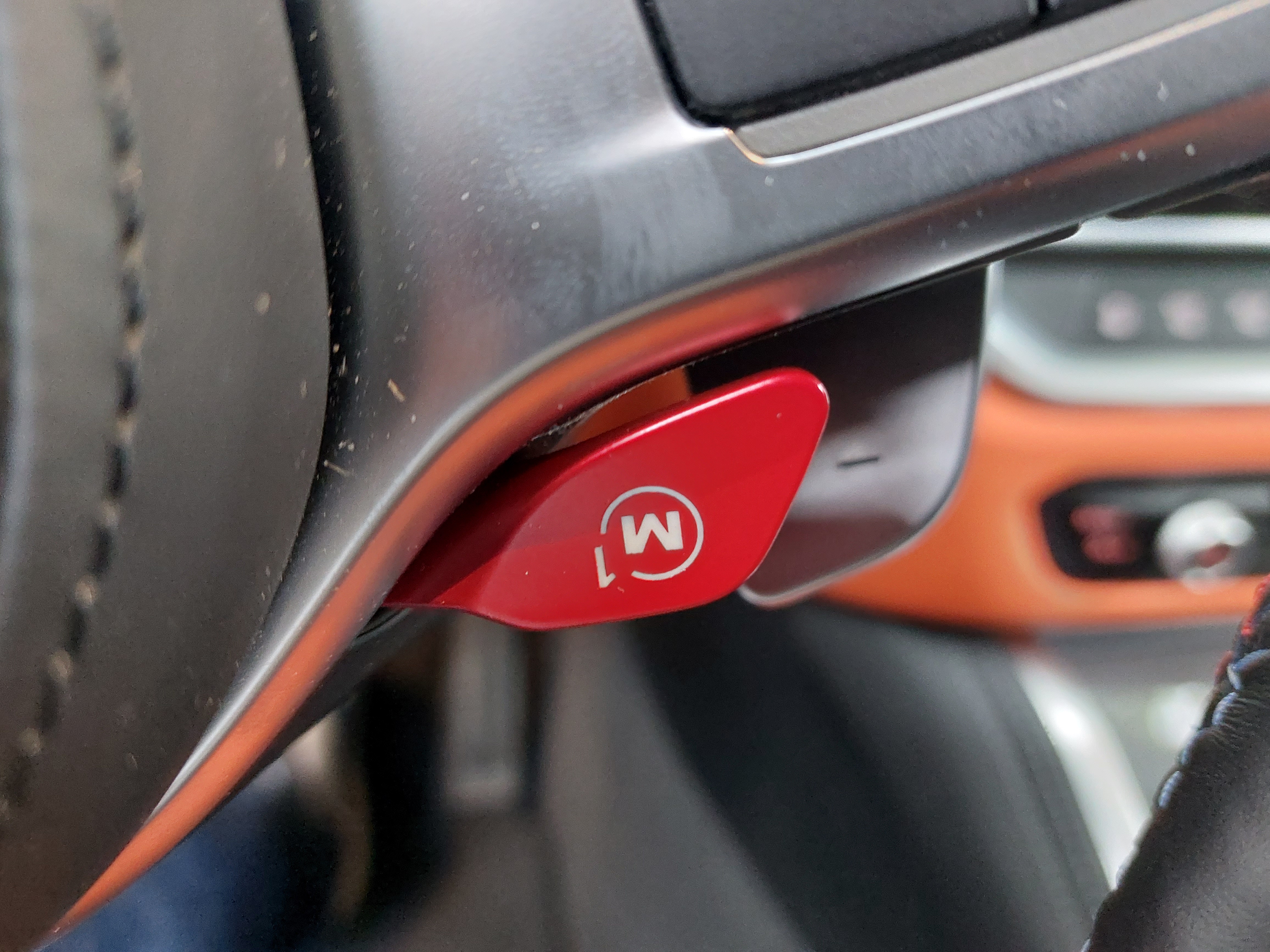 Der Inneraum unseres Testgeschosses hat uns sofort ein Lächeln ins Gesicht gezaubert. Edles oranges Leder mit Carbon-Einlagen im Cockpit und gewohntem geschäumtem Kunststoff, das ist Verarbeitung auf höchstem Niveau. Nettes Detail: Die M-Farben in die Gurte eingenäht, das schätzen Fans der Marke. Am Cockpit gibt es rein gar nichts auszusetzen.