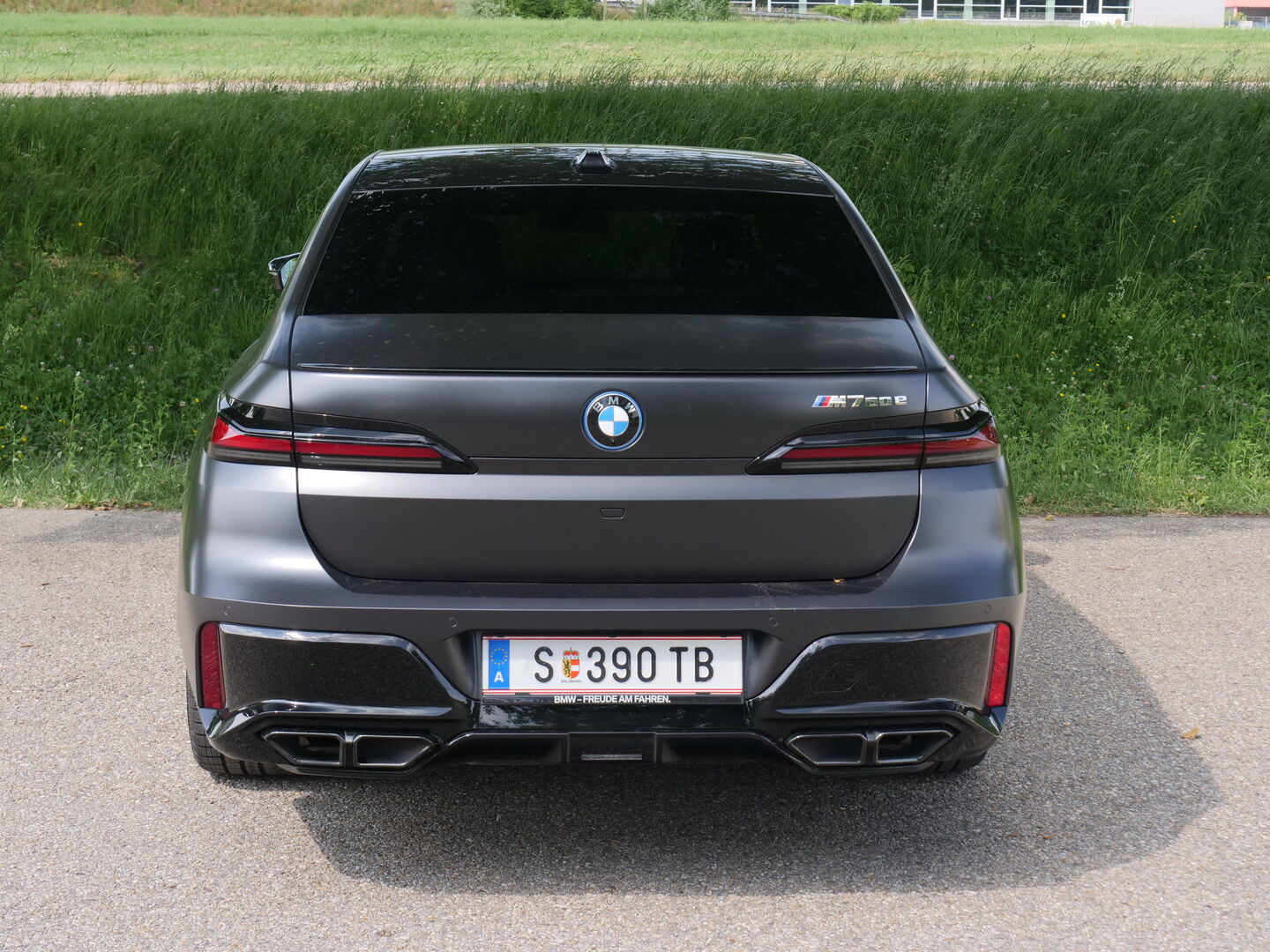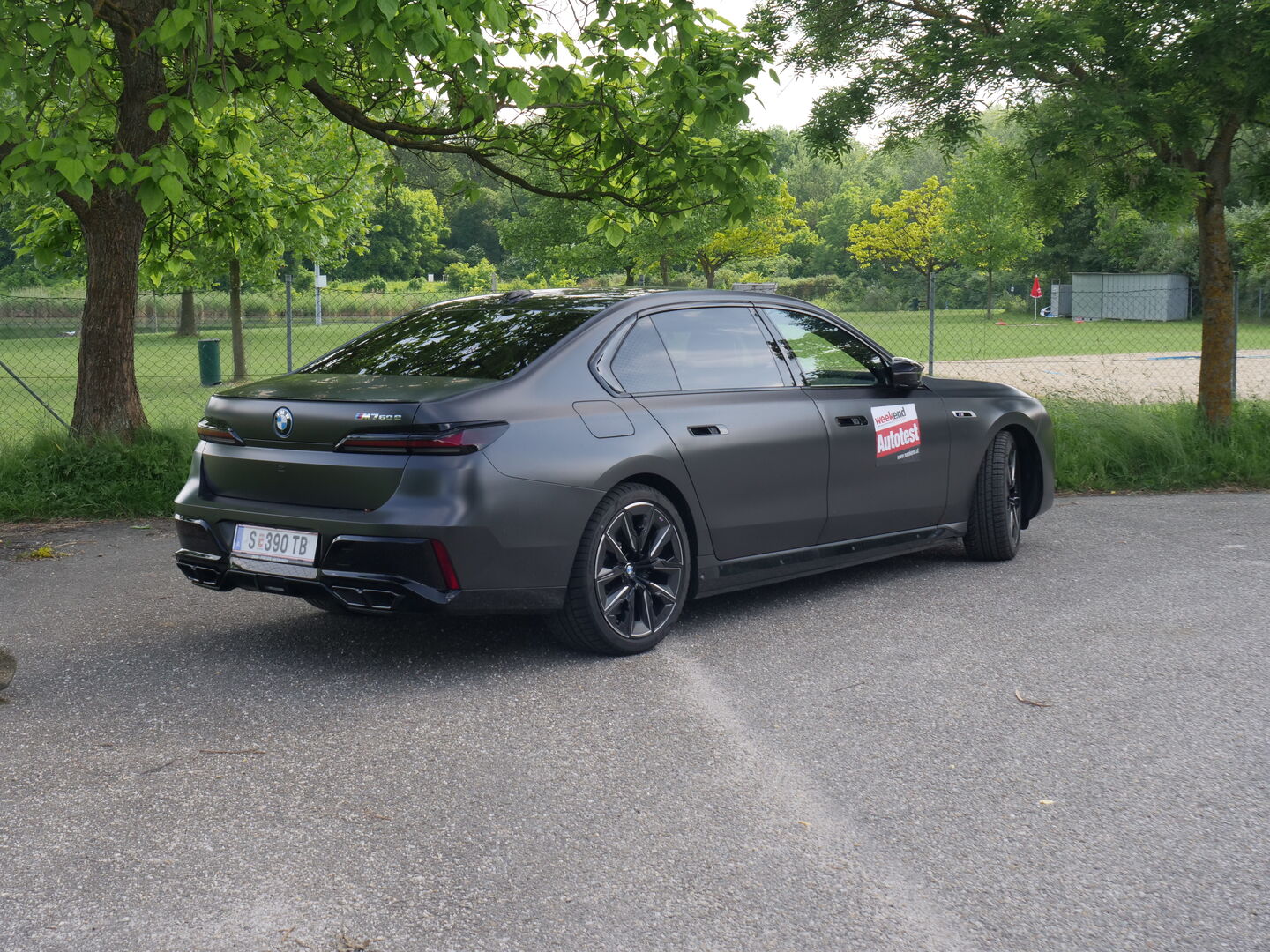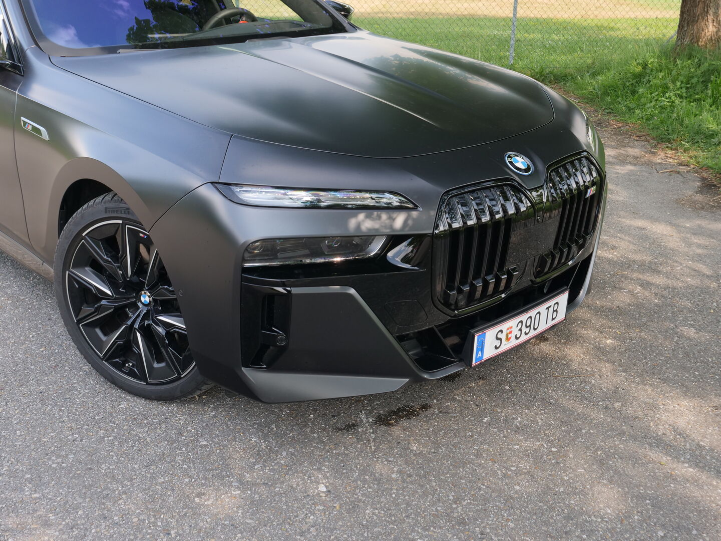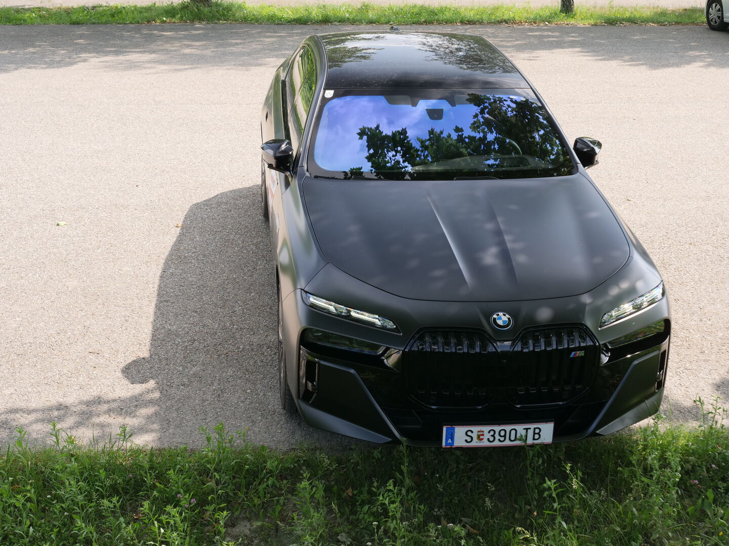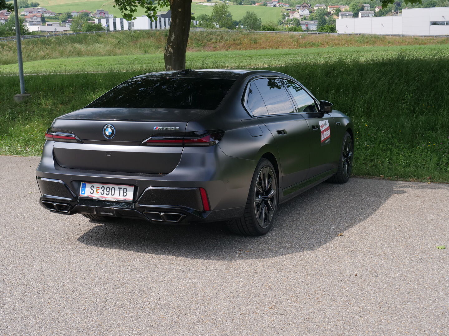 Die 420 Rennpferde sollten im Grunde in Verbindung mit zweieinhalb Tonnen Leergewicht, drei Liter Hubraum und 5,4 Metern Länge saufen wie es eben galoppierende Rösser tun würden. Hier macht der Plug In wirklich Sinn. Im Test lagen wir immer zwischen 0 und 5 Liter Benzin auf 100 Kilometer. Wer zwischendurch immer wieder daheim ansteckt, schlägt da die Dieselvariante mit links. Auch wenn man längere Strecken unterwegs ist. Insgesamt 63 Kilometer soll der M760e übrigens rein elektrisch schaffen. 50 sollten im Alltag möglich sein, ohne im Schneckentempo durch die Gegend zu kriechen. Geladen wird in drei Stunden auf 100 Prozent, wenn die Ladesäule 7,4 kWh zur Verfügung stellt. Dass diese sehr guten Verbrauchswerte nicht erreicht werden, wenn man auf das Laden der Batterie verzichtet, ist klar. Wie fährt sich der Test-7er im Vergleich zum rein elektrisch angetriebenen i7, den wir auch im Test hatten. Die Elektrovariante hat zwar mehr PS, beschleunigt aber langsamer. In den Kurven merkten wir doch das höhere Gewicht der E-Version. Der Teilzeitelektriker M760e xDrive fährt sich im Sport-Modus logischerweise sehr dynamischer als der i7. Dabei darf man nicht vergessen, dass dieses Auto generell nicht als Rennsemmel konzipiert ist, sondern als Komfortlimousine. Heißt: ein BMW M3 lässt sich schneller um die Kurve scheuchen, was aber eben klar ist. Unterm Strich sind die Fahreigenschaften aber überraschend gut.