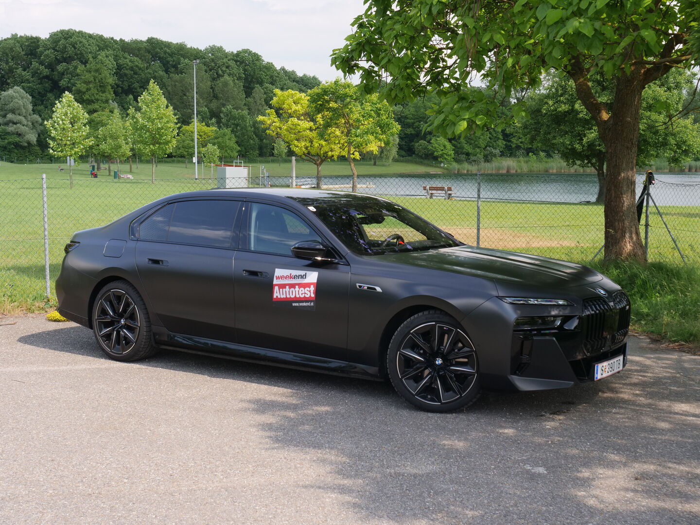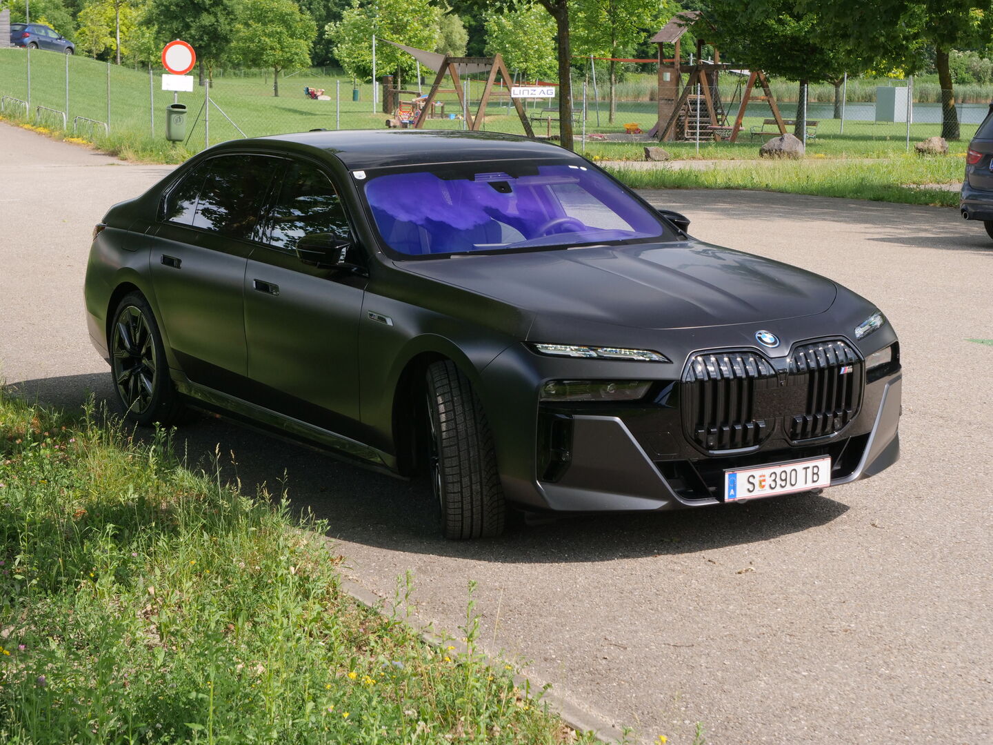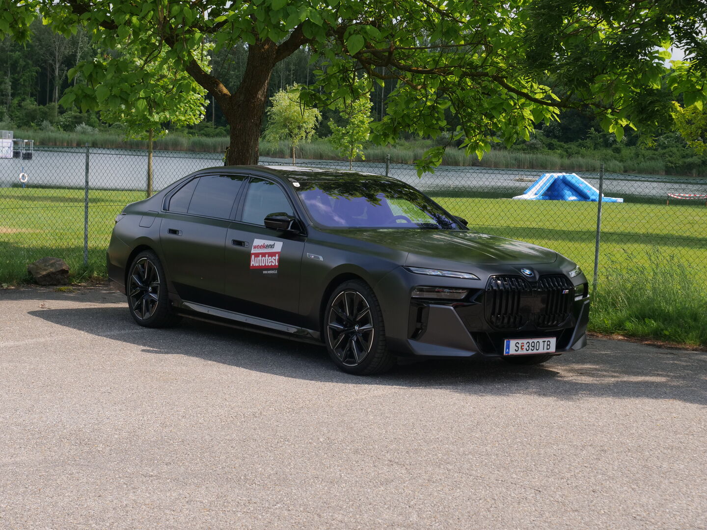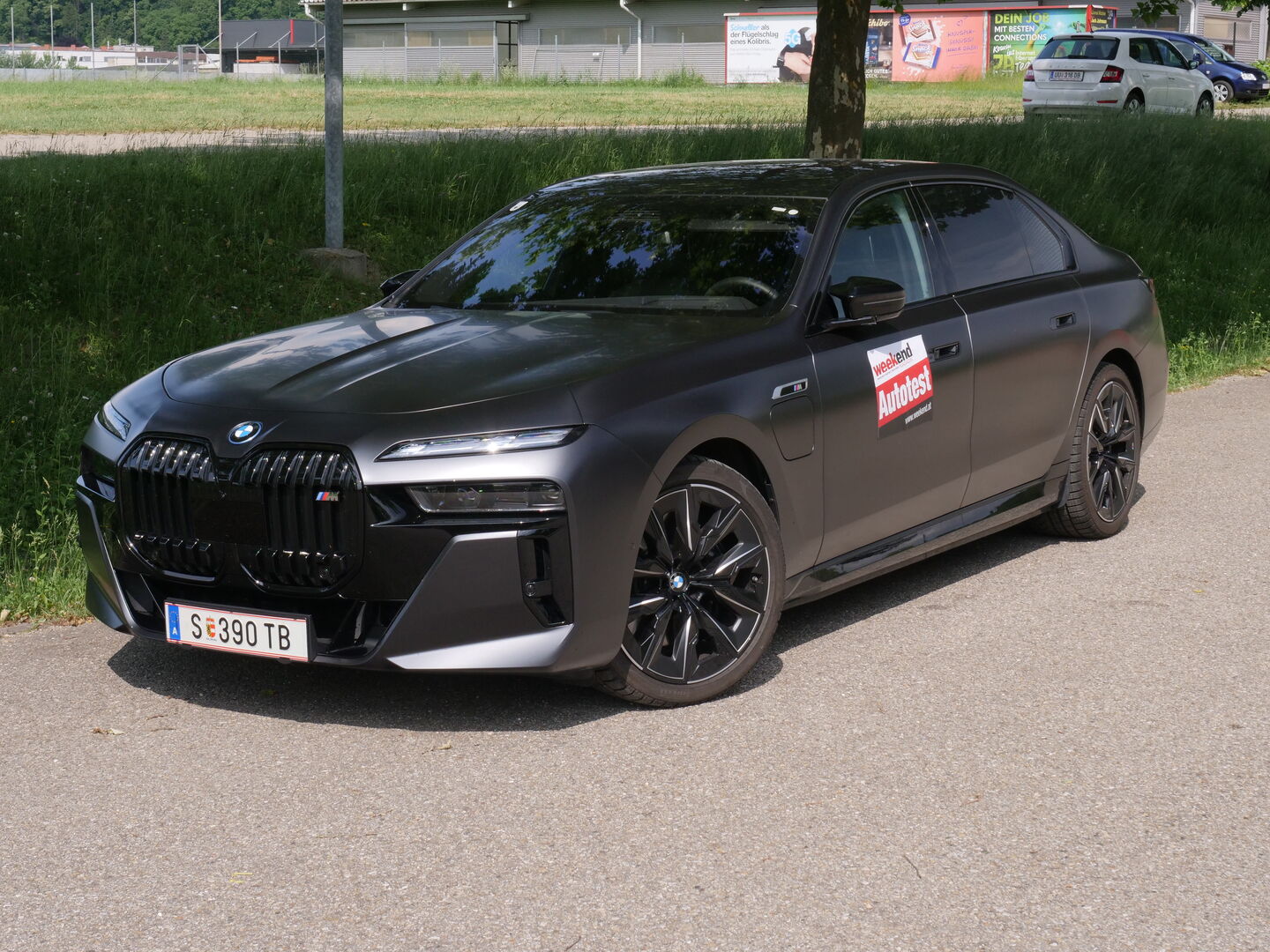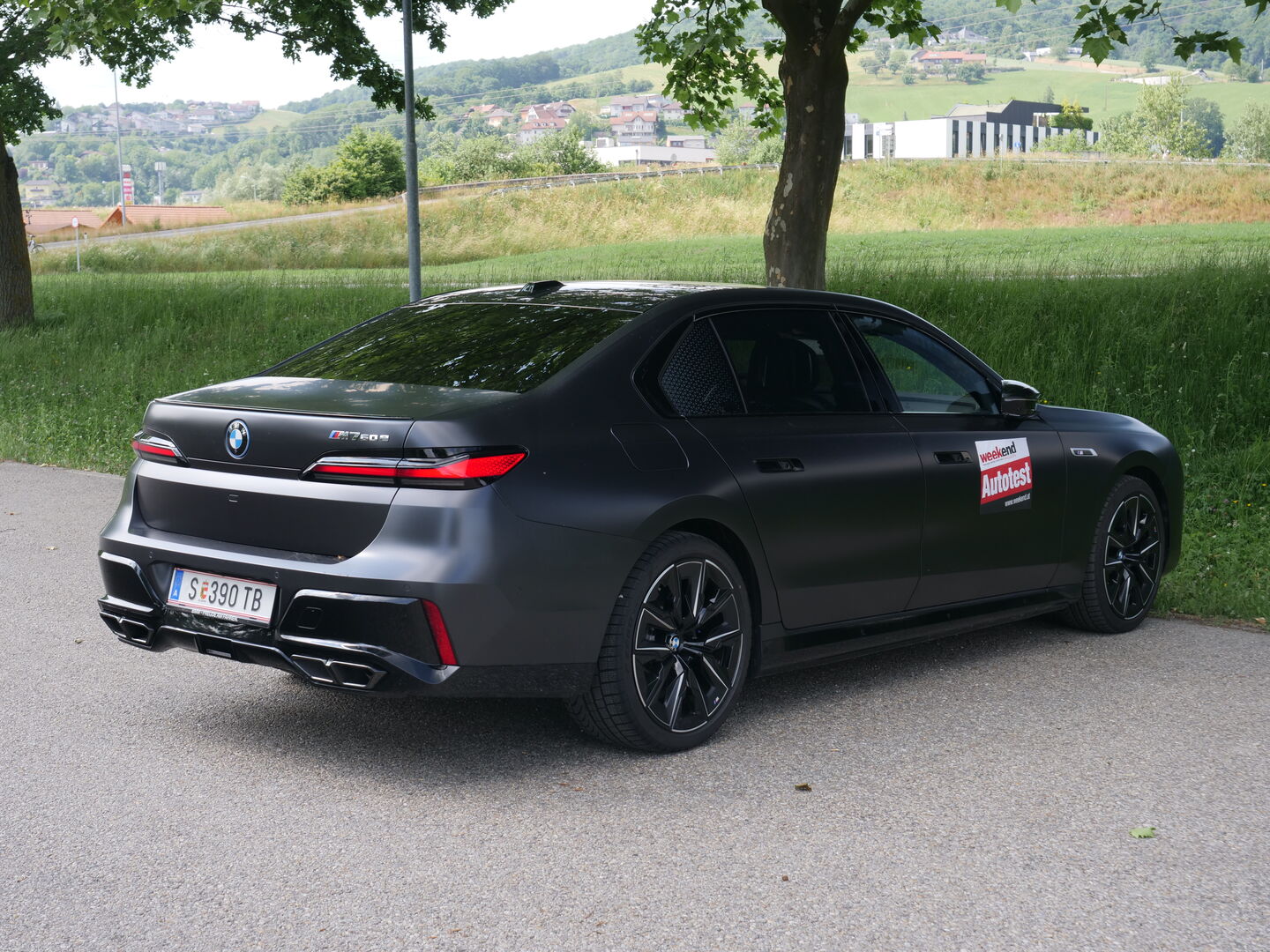 Die 420 Rennpferde sollten im Grunde in Verbindung mit zweieinhalb Tonnen Leergewicht, drei Liter Hubraum und 5,4 Metern Länge saufen wie es eben galoppierende Rösser tun würden. Hier macht der Plug In wirklich Sinn. Im Test lagen wir immer zwischen 0 und 5 Liter Benzin auf 100 Kilometer. Wer zwischendurch immer wieder daheim ansteckt, schlägt da die Dieselvariante mit links. Auch wenn man längere Strecken unterwegs ist. Insgesamt 63 Kilometer soll der M760e übrigens rein elektrisch schaffen. 50 sollten im Alltag möglich sein, ohne im Schneckentempo durch die Gegend zu kriechen. Geladen wird in drei Stunden auf 100 Prozent, wenn die Ladesäule 7,4 kWh zur Verfügung stellt. Dass diese sehr guten Verbrauchswerte nicht erreicht werden, wenn man auf das Laden der Batterie verzichtet, ist klar. Wie fährt sich der Test-7er im Vergleich zum rein elektrisch angetriebenen i7, den wir auch im Test hatten. Die Elektrovariante hat zwar mehr PS, beschleunigt aber langsamer. In den Kurven merkten wir doch das höhere Gewicht der E-Version. Der Teilzeitelektriker M760e xDrive fährt sich im Sport-Modus logischerweise sehr dynamischer als der i7. Dabei darf man nicht vergessen, dass dieses Auto generell nicht als Rennsemmel konzipiert ist, sondern als Komfortlimousine. Heißt: ein BMW M3 lässt sich schneller um die Kurve scheuchen, was aber eben klar ist. Unterm Strich sind die Fahreigenschaften aber überraschend gut.
