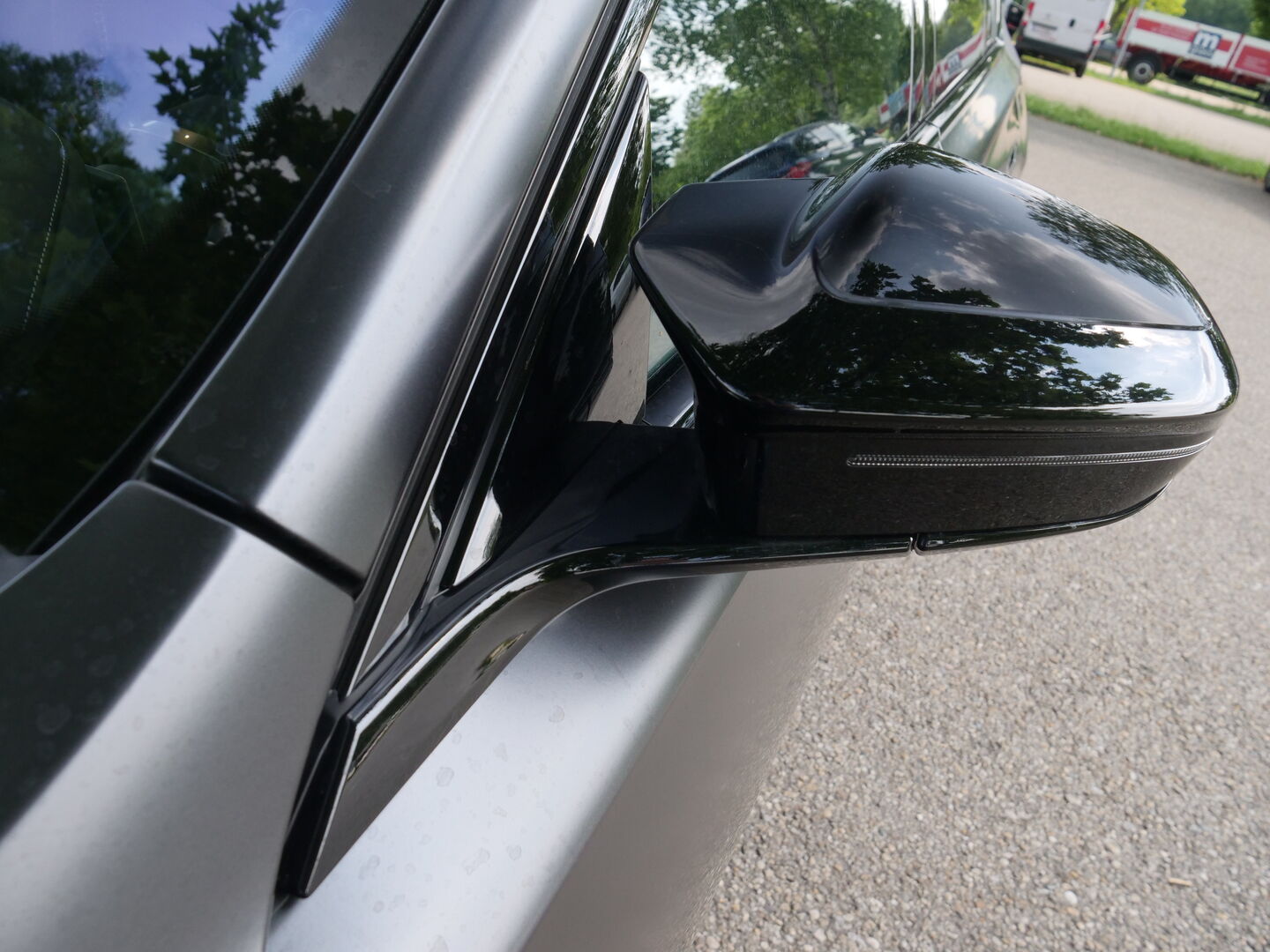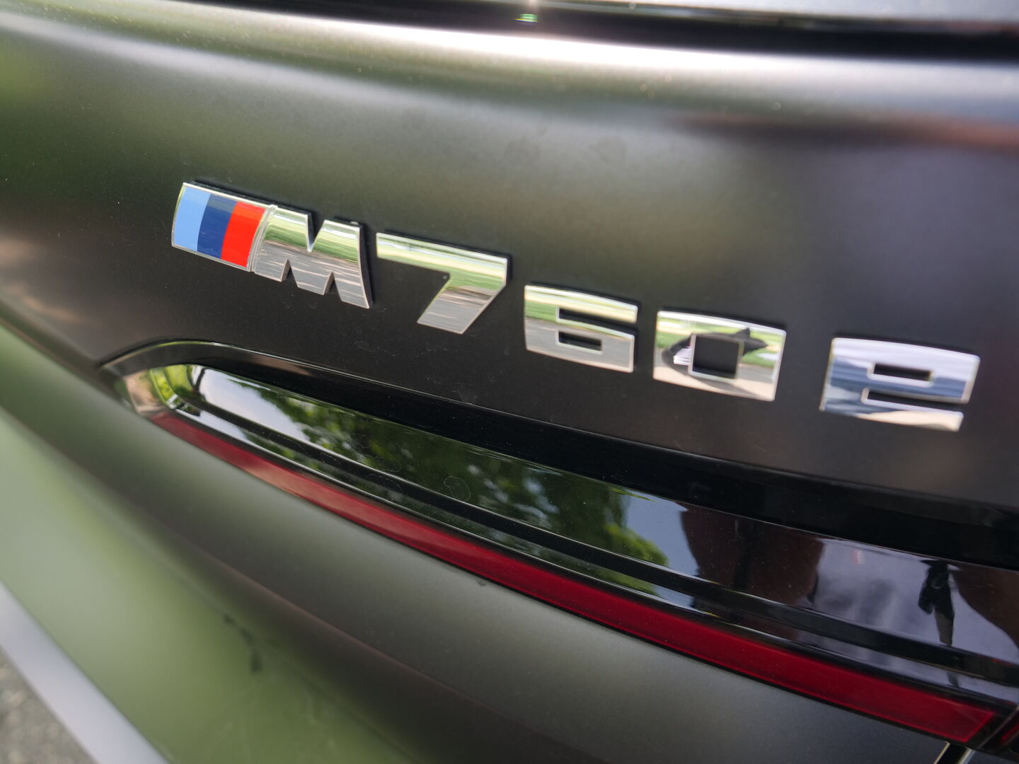 Wenn so ein BMW 760e im Rückspiegel zu sehen ist, wirkt er grimmig bis böse. Die matte, schwarze Lackierung spielt da mit eine Rolle. Ebenso die riesige BMW Doppelniere. Wie erkennt man den ersten Plug-In-M-BMW? Zum einen an der Ladeklappe und dem M-Logo. Und: Die speziell gestalteten Seitenspiegel sind ein Merkmal des Sport- 7ers.