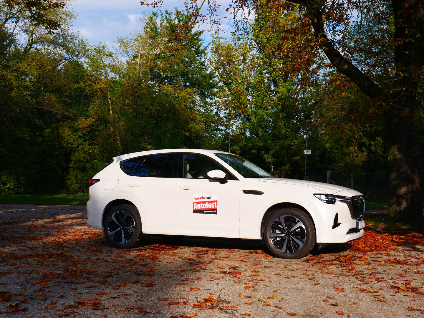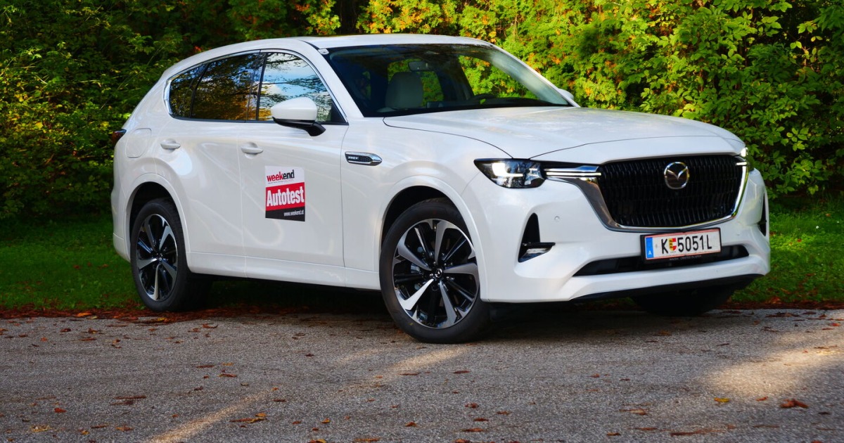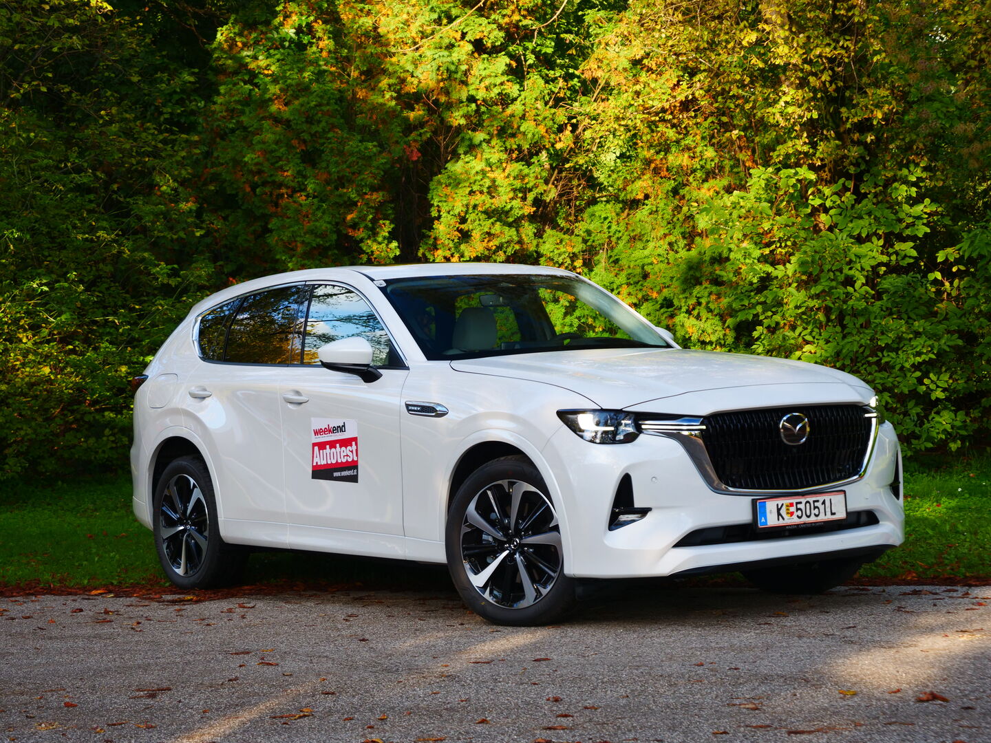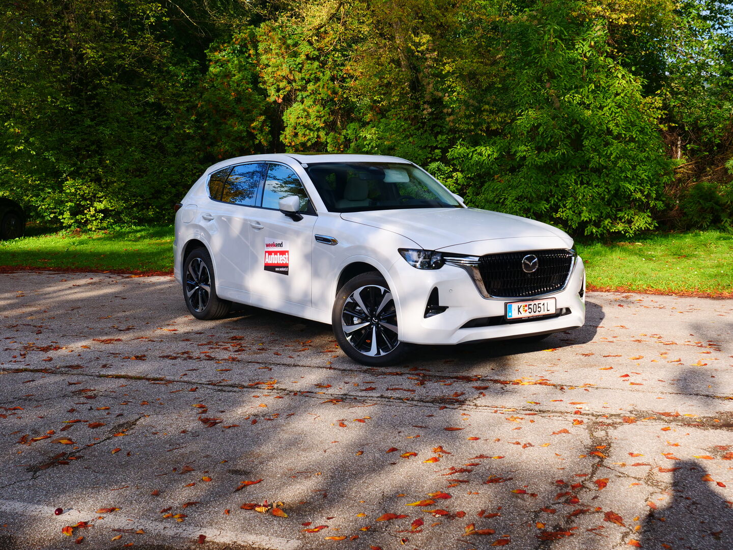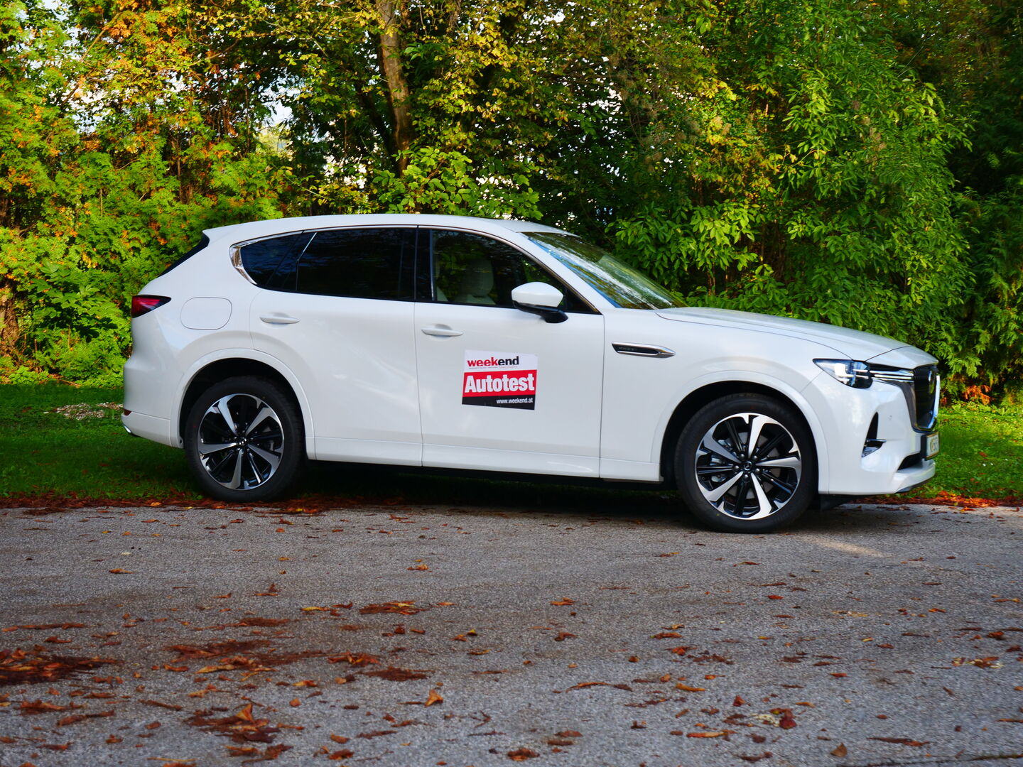 Was fällt uns beim ersten Blick ins Gesicht des Big-SUV ein? „Friss mich nicht!“ … Ja, der Kühlergrill ist schon ziemlich mächtig. Mächtig sind aber auch die Eckdaten. 327 PS Systemleistung, 2,5-Liter Hubraum und eine Beschleunigung von 0-100 km/h in 5,8 Sekunden. Mit 4,75 Metern Länge ist der CX-60 ein ziemliches Bröckerl. Das merkt man bei der Parkplatzsuche. Und trotzdem ist der CX-60 kein Säufer, denn wir sprechen hier von einem Plug-In, der eine ziemlich stolze rein elektrische Reichweite bietet. Auch in Sachen KFZ-Steuer steht einem kein Schweiß auf der Stirn, denn die Systemleistung setzt sich aus 191 PS vom Benziner und den 175 PS aus dem E-Motor zusammen. Im Test schafften wir zwar die angegeben 63 Kilometer rein elektrische Reichweite nicht, aber gut 55 Kilometer, was im Vergleich zu anderen Plug-In Hybriden ein stolzer Wert ist. Möglich wird dies durch eine 17,8 kWh-Batterie, die mittig im Fahrzeugboden verbaut wurde. Das Laden dauert aber schon eine Weile, da die Ladeleistung bei 7,2 kWh liegt. Heißt: es dauert ca. zweieinhalb Stunden, bis man die gesamte elektrische Reichweite zur Verfügung hat. So wird aber auch gleichzeitig die Batterie geschont – Batterien werden ja durch diverse Schnellladungen nicht wirklich besser. Zudem macht der Plug-In ohnehin nur Sinn, wenn der Besitzer daheim über Nacht laden kann. Und hier ist es egal, ob eine oder zwei Stunden geladen wird.