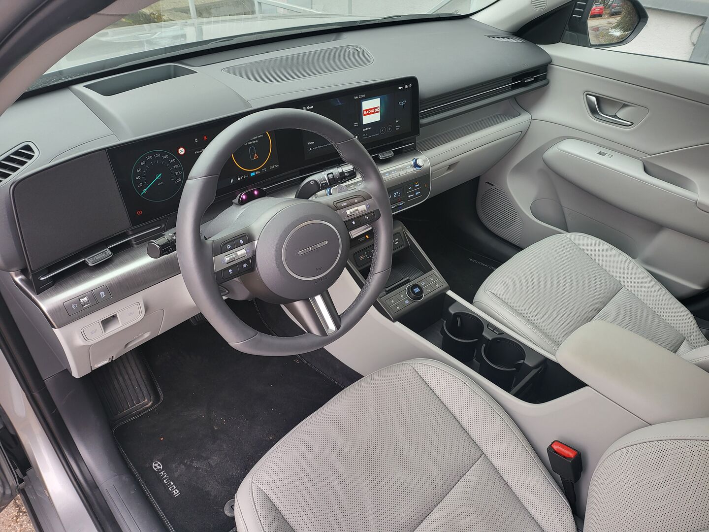 Wer in den neuen Kona einsteigt und schon im alten gesessen ist, wird eines bemerken: Das Ding ist ordentlich gewachsen. Um ganze 20 Zentimeter! Heißt: Die Platzfrage brauchen wir uns nicht zu stellen. Da passt alles – sogar die Kopffreiheit. Auch optisch bleibt kein Blech auf dem anderen. Die Koreaner gehen da ganz klar einen mutigen Weg. Uns haben die starken Akzentuierungen am Blechkleid gut gefallen. Auch die Front wirkt sehr gelungen. Ob einem die Heckleuchten gefallen, ist wohl Ansichtssache. Im Innenraum gibt es zwei 12,3-Zoll-Bildschirme, deren Menüführung logisch aufgebaut ist. Es wird zwar viel ungeschäumter Kunststoff verwendet, was aber nicht stört.