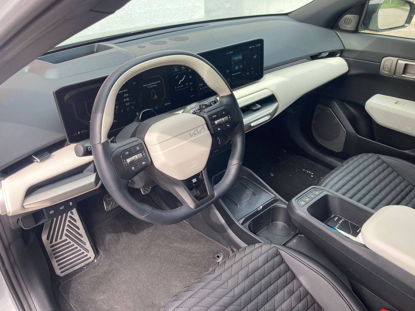 Im Innenraum ist alles ordentlich verarbeitet. Kia setzt auf einen hohen Anteil geschäumter Kunststoffe. Besonders flott wirkt die kontrastreiche, zweifarbige Cockpit-Landschaft. Die Bedienung von Infotainment und Instrumenten ist sehr einfach gestaltet – dafür gibt es Pluspunkte.Die Klimaanlage wird größtenteils über Tasten gesteuert, die Feinabstimmung erfolgt über das Display. Leider werden die Einstellungen vom Lenkrad teilweise abgedeckt – daran muss man sich gewöhnen. Auch der Startknopf, der ganz innen am Automatikhebel sitzt, ist nicht leicht zu erreichen. Ladestops werden in der Route angezeigt und können geplant werden. Bietet er genug Platz? Die Platzverhältnisse sind gut – sogar auf den Rücksitzen gibt es ordentliche Kniefreiheit, mehr als erwartet. Der Kofferraum fasst 435 Liter, was ein klassenüblicher Wert ist und damit gibt es auch hier nichts zu meckern.
